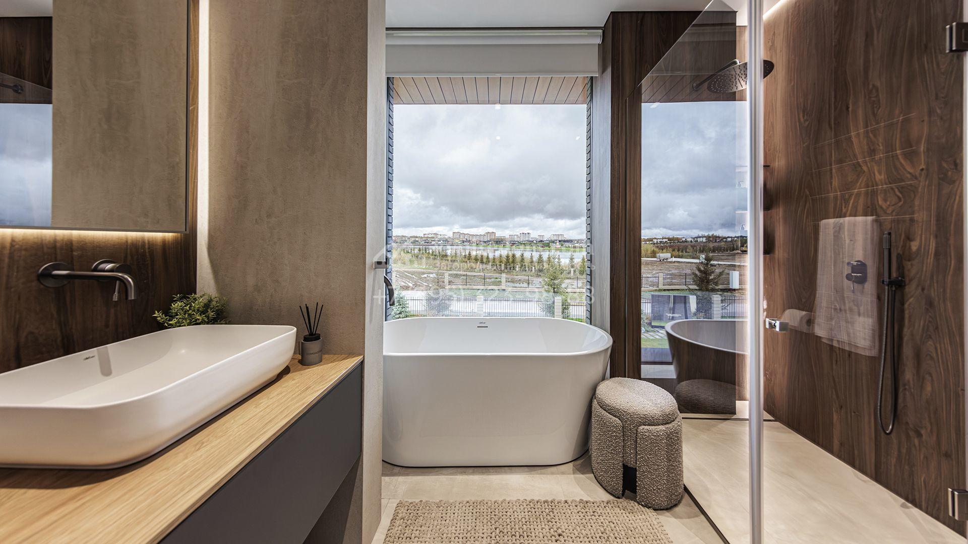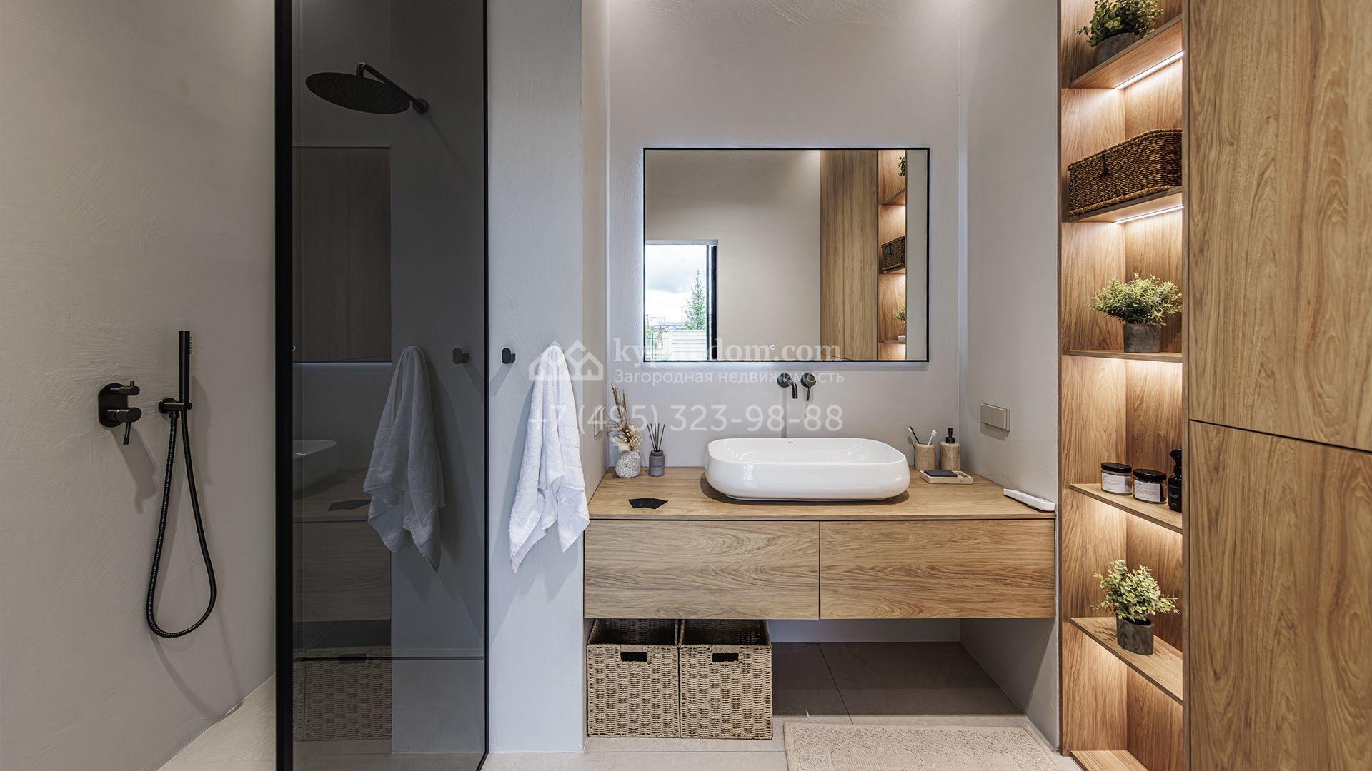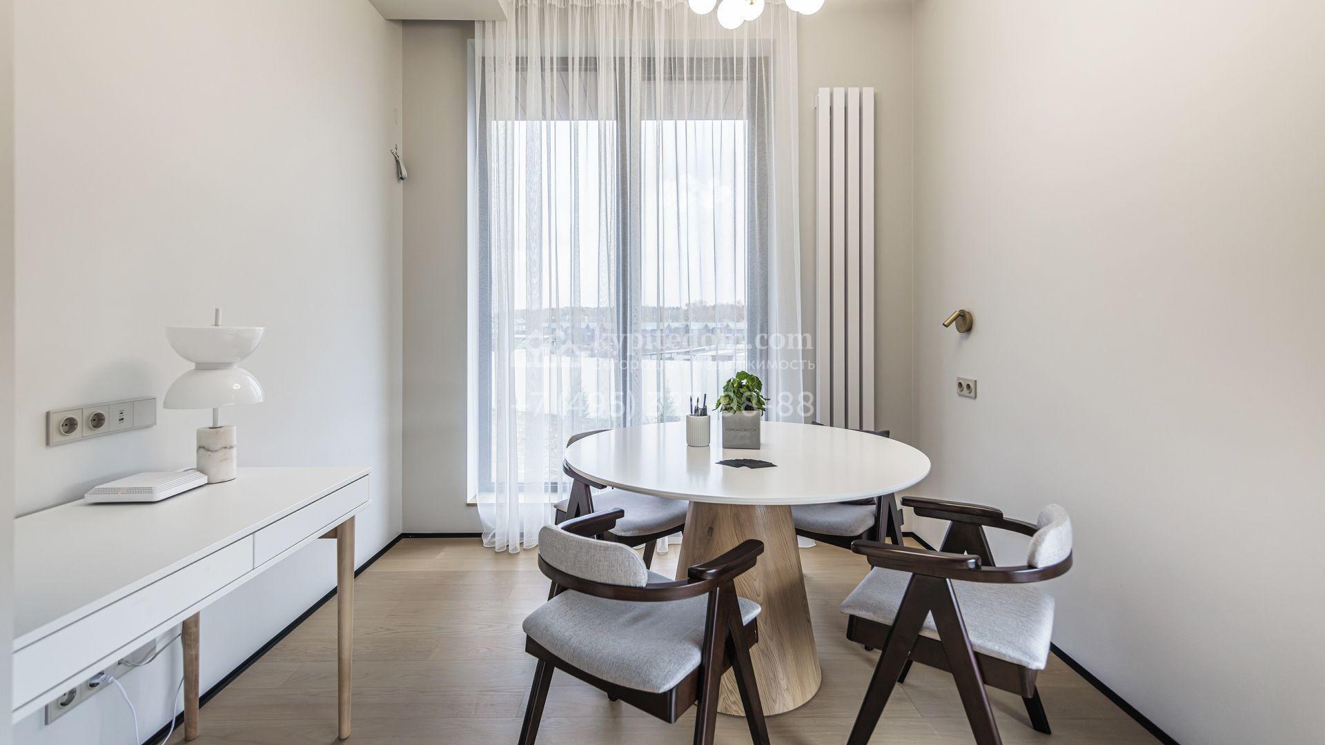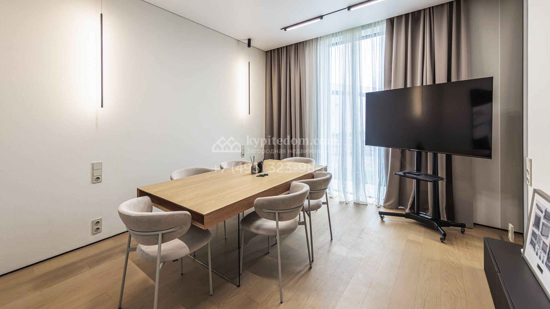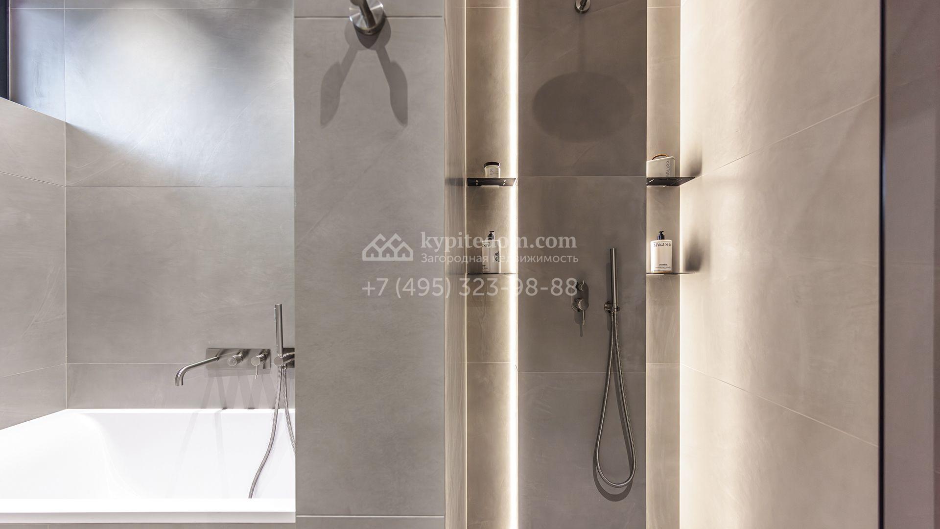 Пространство дома ощущается еще более масштабным благодаря потолкам высотой до 4,8 метров и второму свету. Интерьеры, выдержанные в светлой спокойной палитре, дополнены акцентами в виде изящных светильников, люстр и тщательно подобранных предметов декора. Готовая меблировка и встроенная бытовая техника позволяют сразу начать здесь новую жизнь. Продуманные инженерные системы — приточно-вытяжная вентиляция с рекуперацией, скрытое канальное кондиционирование, подогрев полов и стен — формируют современную комфортную среду.