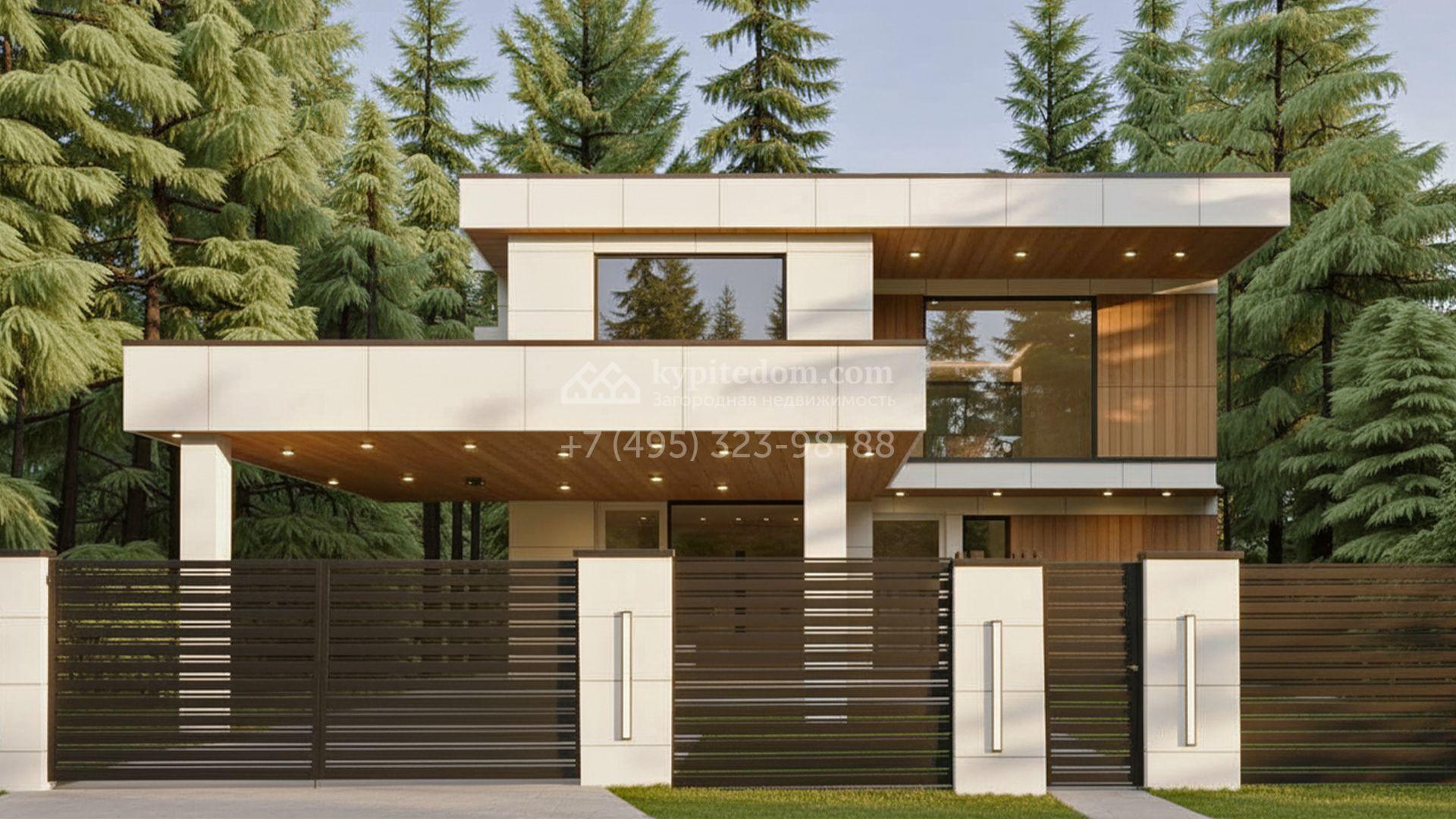 Загородный коттедж площадью 277 м² расположен на полевом участке 9 соток. Современный фасад облицован светлой плиткой и дополнен элементами с фактурой дерева, а подсветка элегантно подчёркивает строгие линии здания в вечернее время. Большие панорамные окна наполняют внутренние пространства солнцем и визуально расширяют их. Отсутствие отделки позволяет будущим владельцам реализовать собственный дизайн-проект, выбрав стиль интерьера, финишные покрытия и мебель на свой вкус.