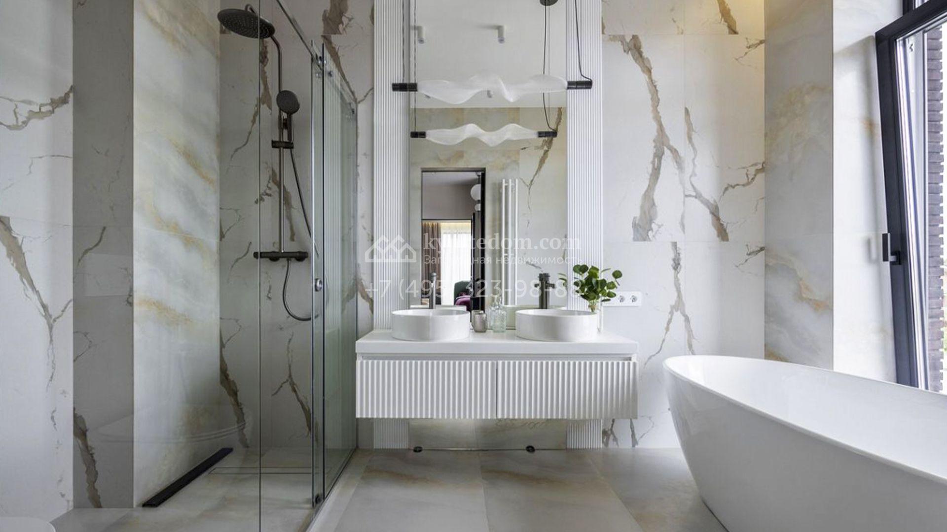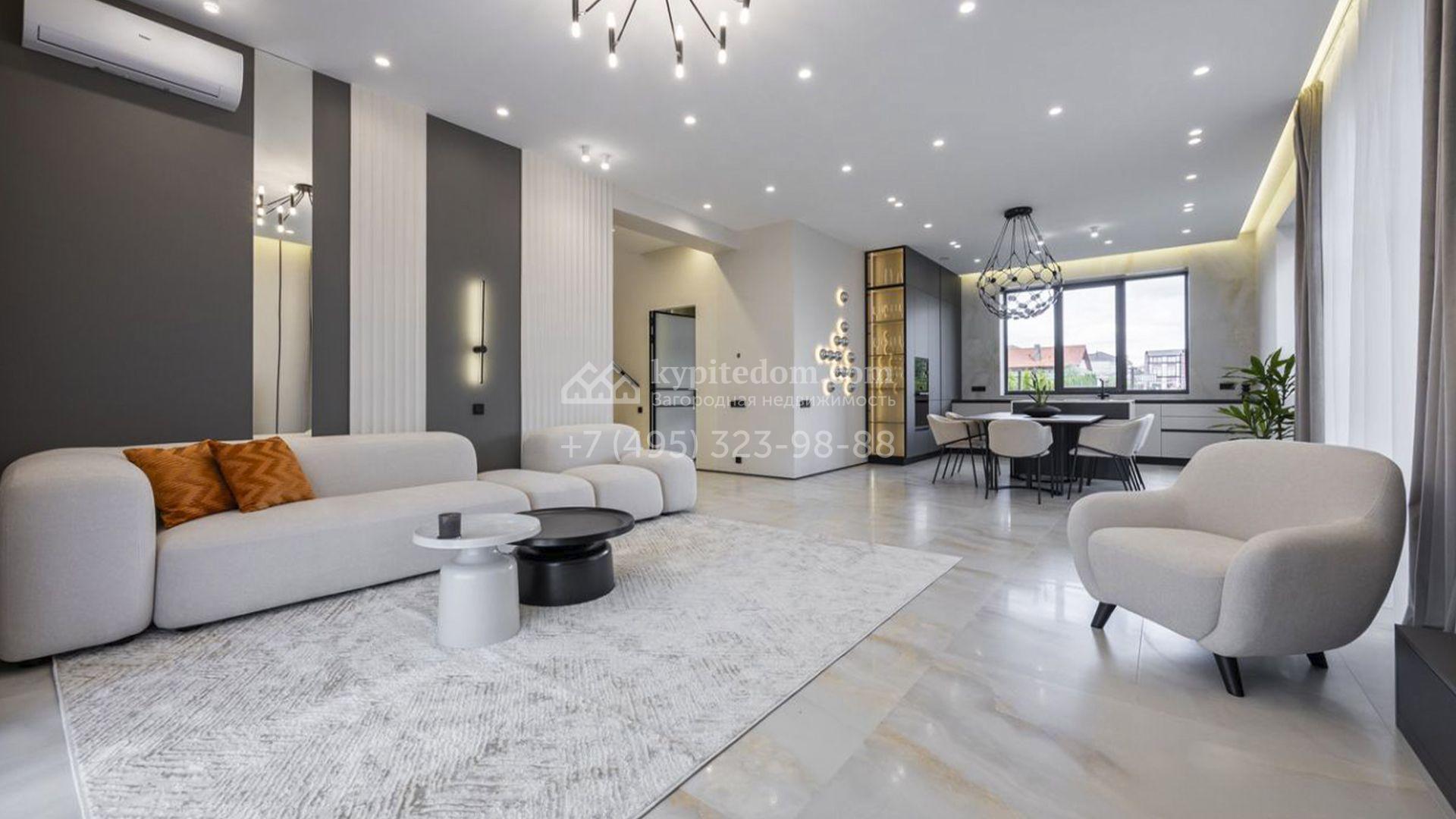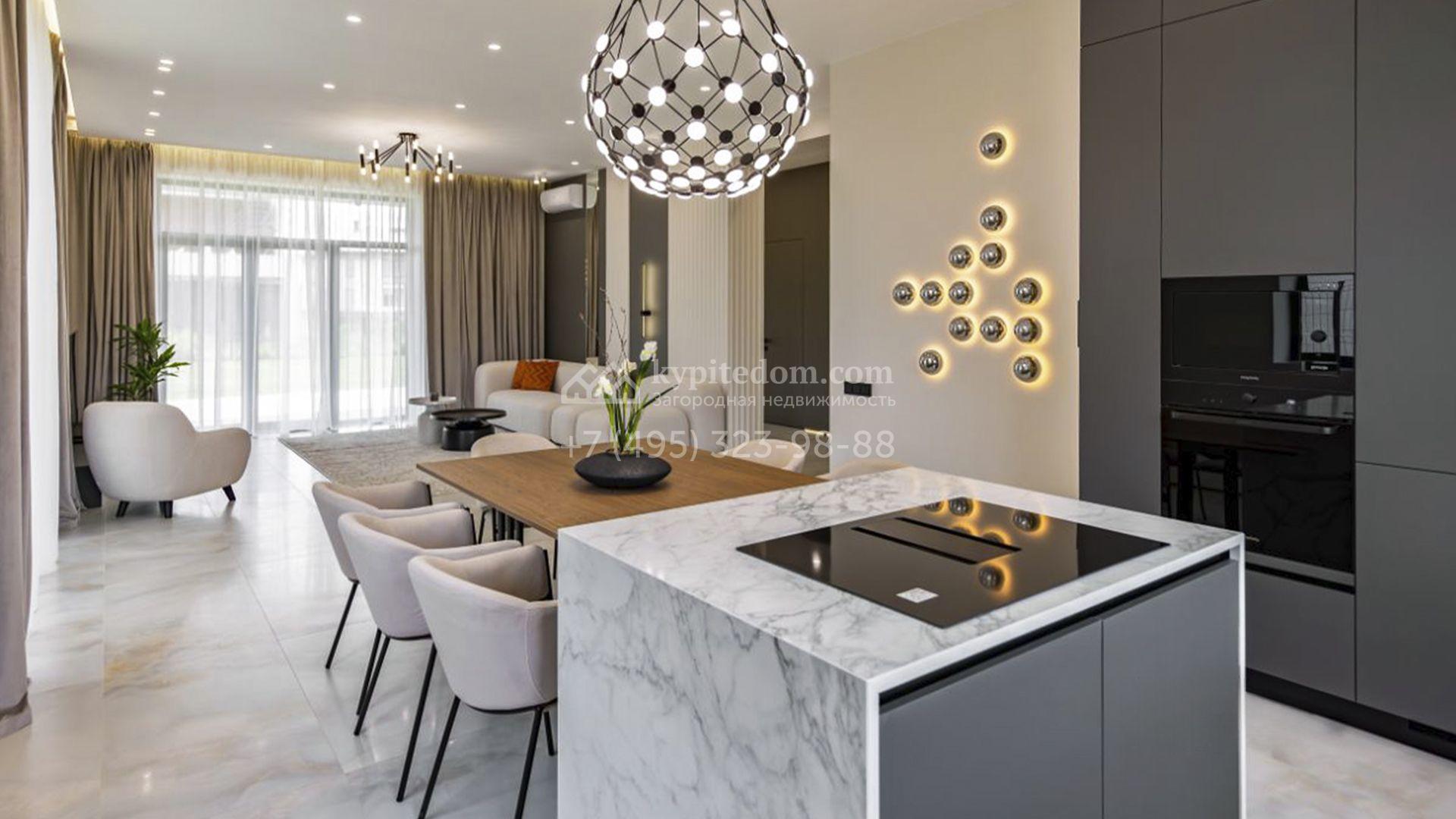 Дизайнерские интерьеры, выдержанные в светлых тонах, укомплектованы комфортной мебелью и бытовой техникой премиум-класса. Уютную атмосферу создают изящные люстры и светильники, а фактурное оформление стен и стильные детали декора добавляют дому динамики. Приятный микроклимат в любое время года поддерживает система кондиционирования.