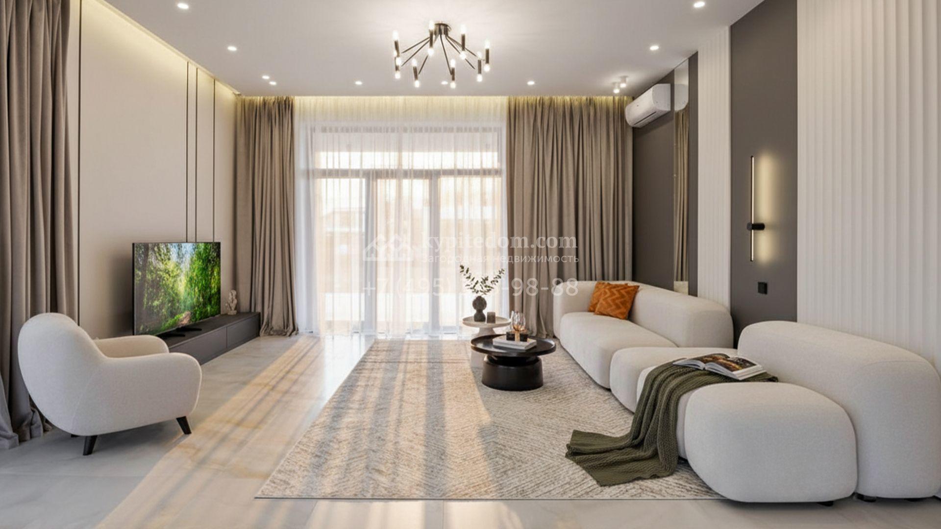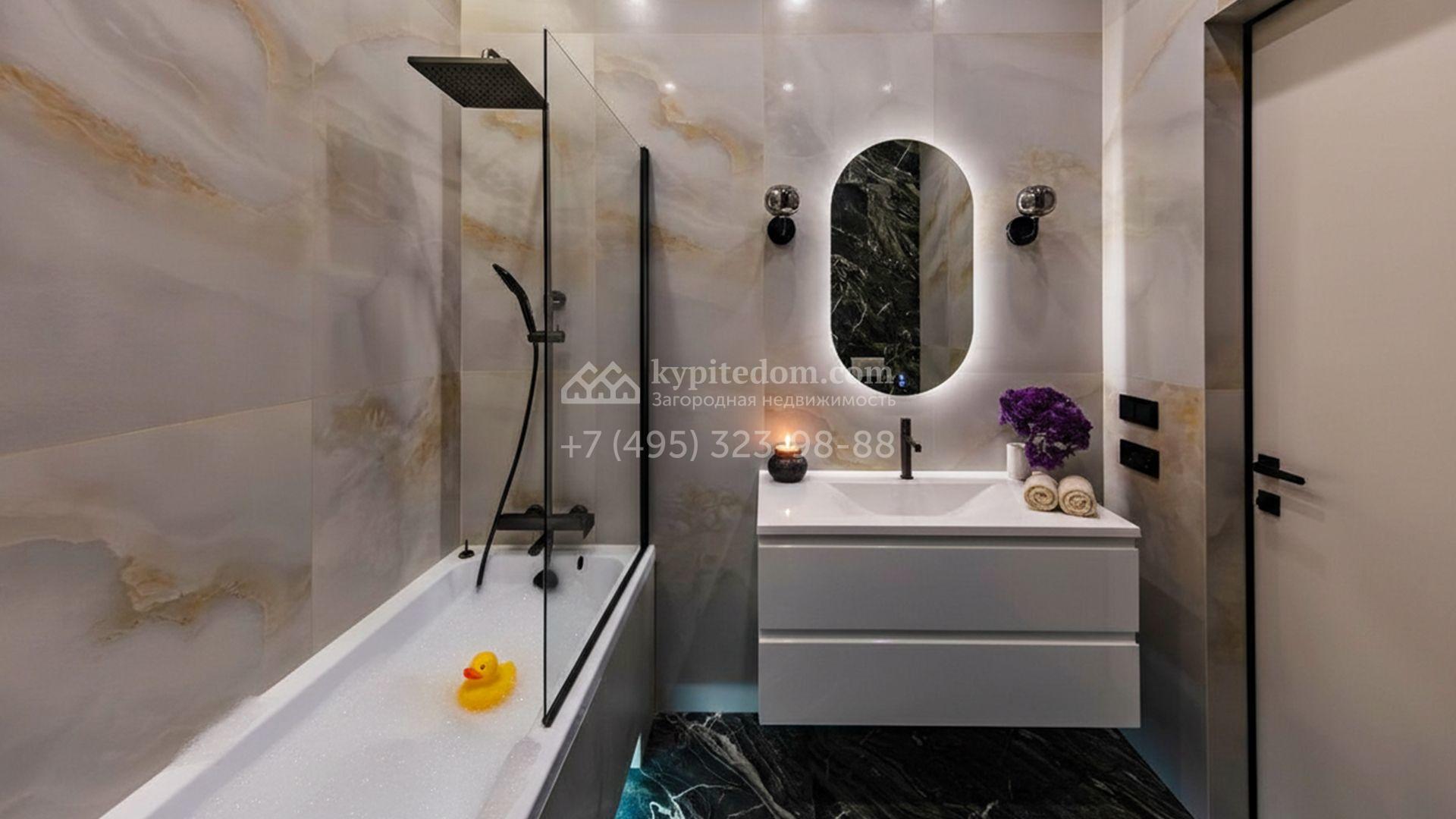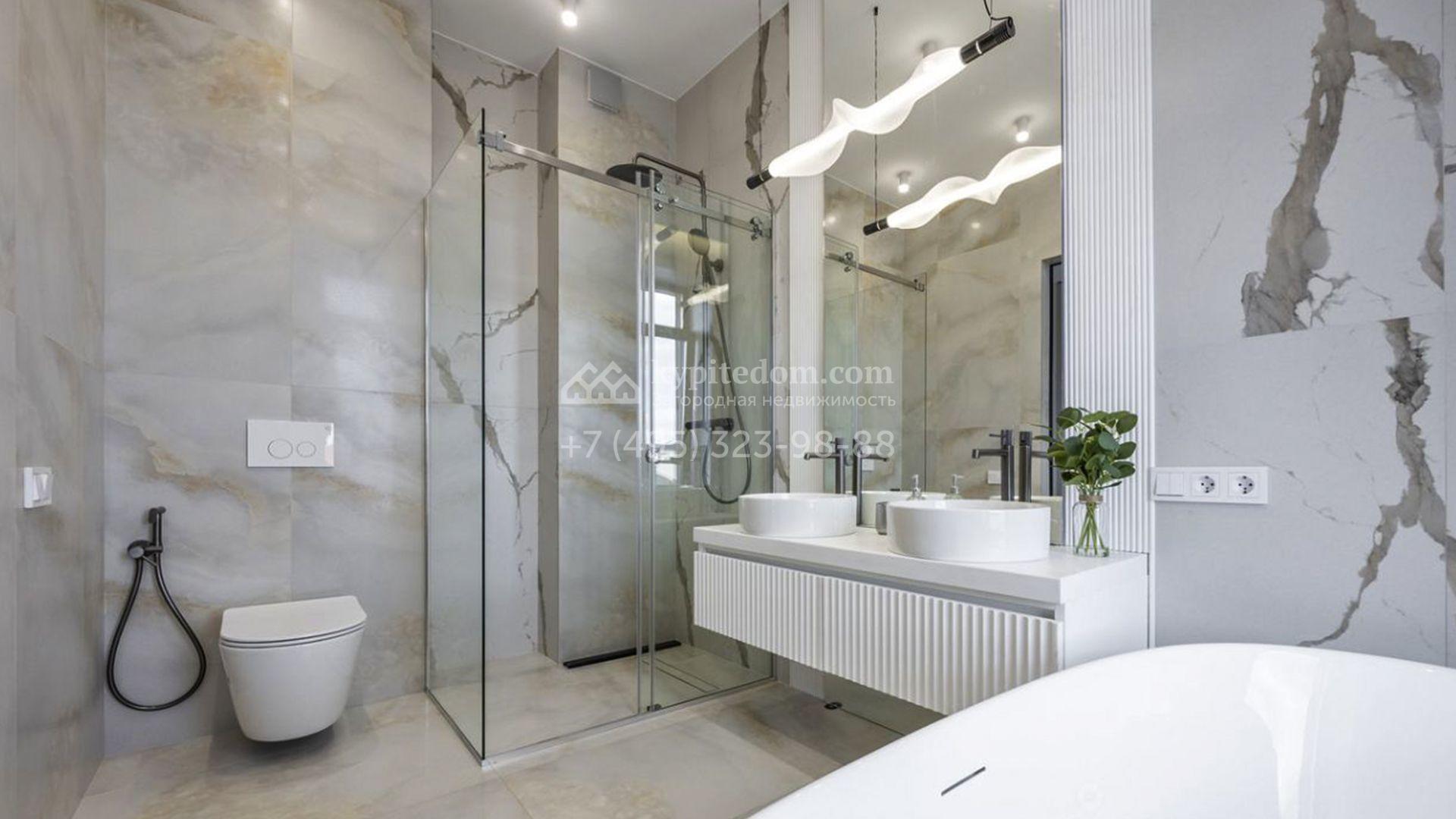 Дизайнерские интерьеры, выдержанные в светлых тонах, укомплектованы комфортной мебелью и бытовой техникой премиум-класса. Уютную атмосферу создают изящные люстры и светильники, а фактурное оформление стен и стильные детали декора добавляют дому динамики. Приятный микроклимат в любое время года поддерживает система кондиционирования.