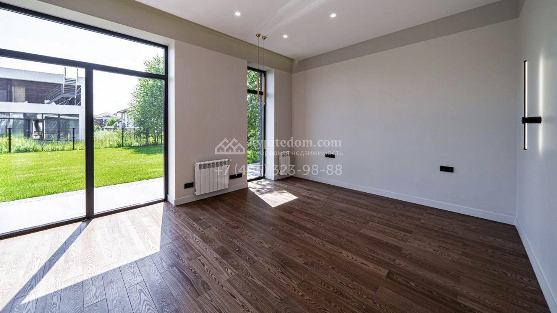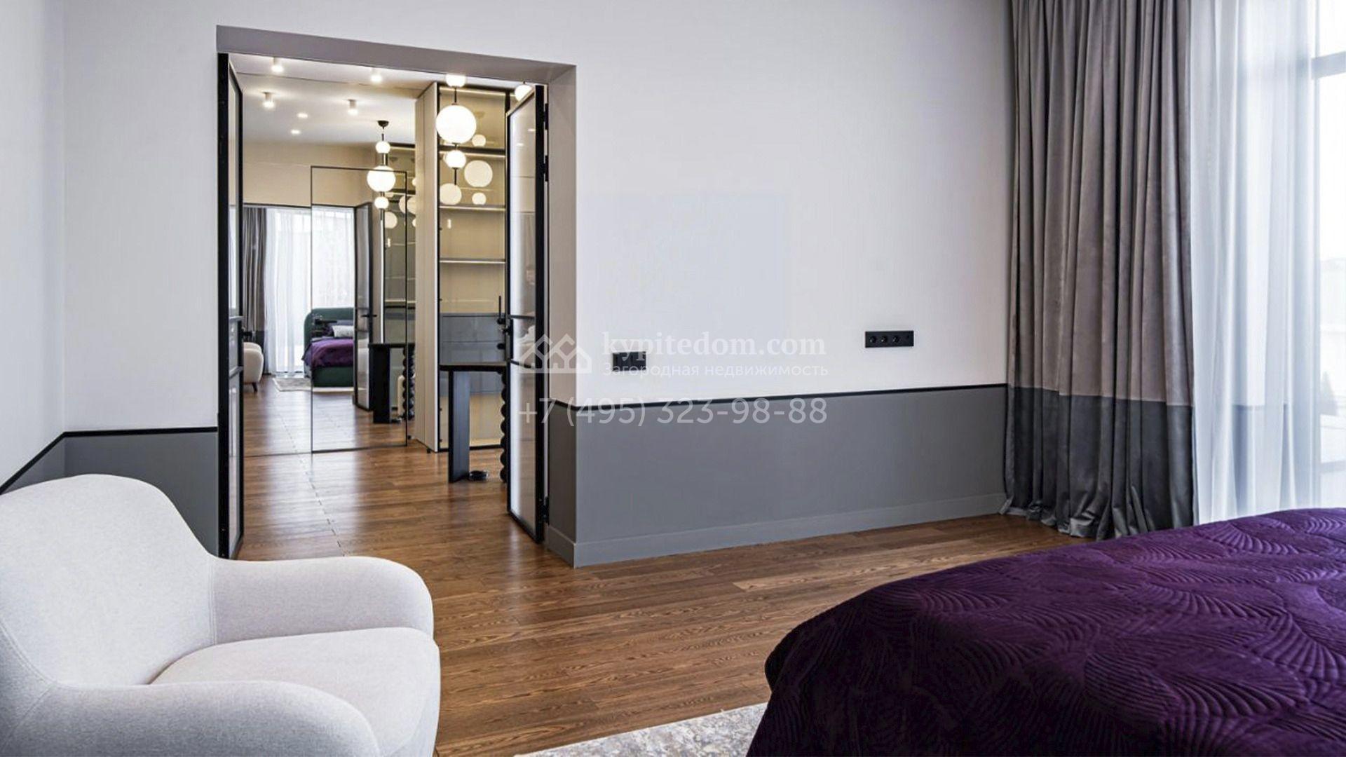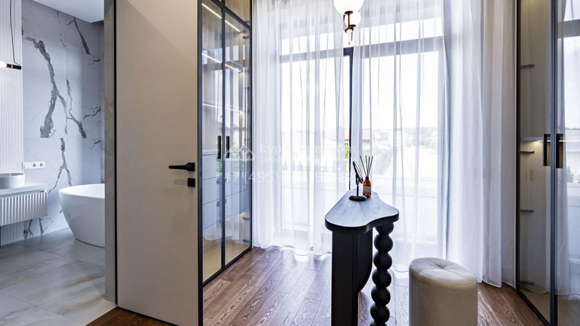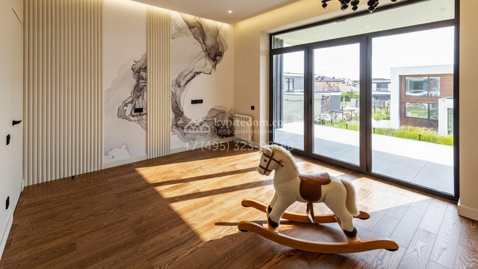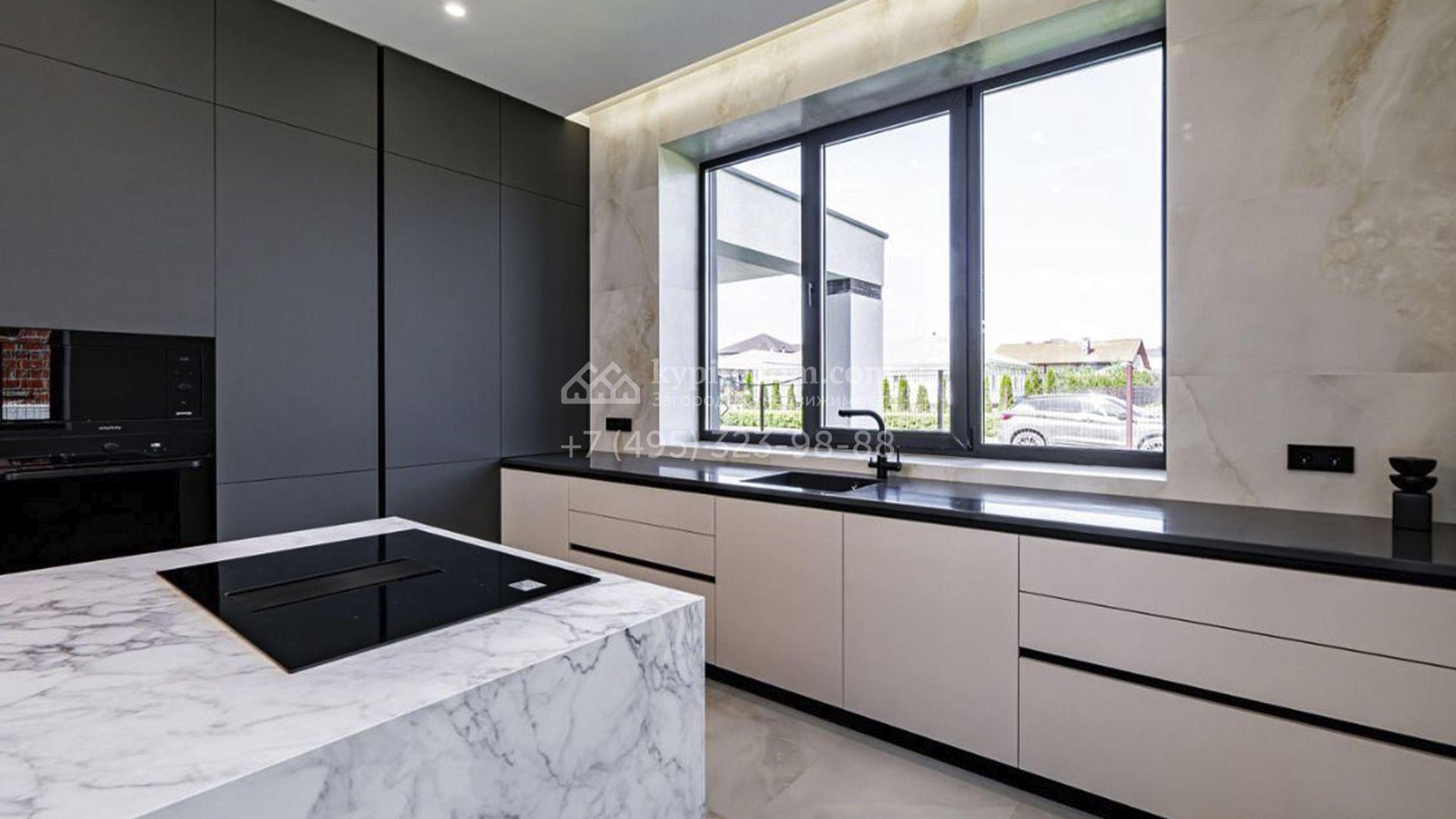 Планировка включает просторную гостиную, объединённую с кухней-столовой, приватный кабинет для работы и три спальни с вместительными гардеробными. С открытых террас открываются живописные виды на посёлок — идеальные места для отдыха с чашкой кофе в лучах заката и отдыха на свежем воздухе. Благоустроенный участок со свежескошенным газоном и вымощенной брусчаткой въездной группой можно дополнить стройными туями и яркими цветниками.