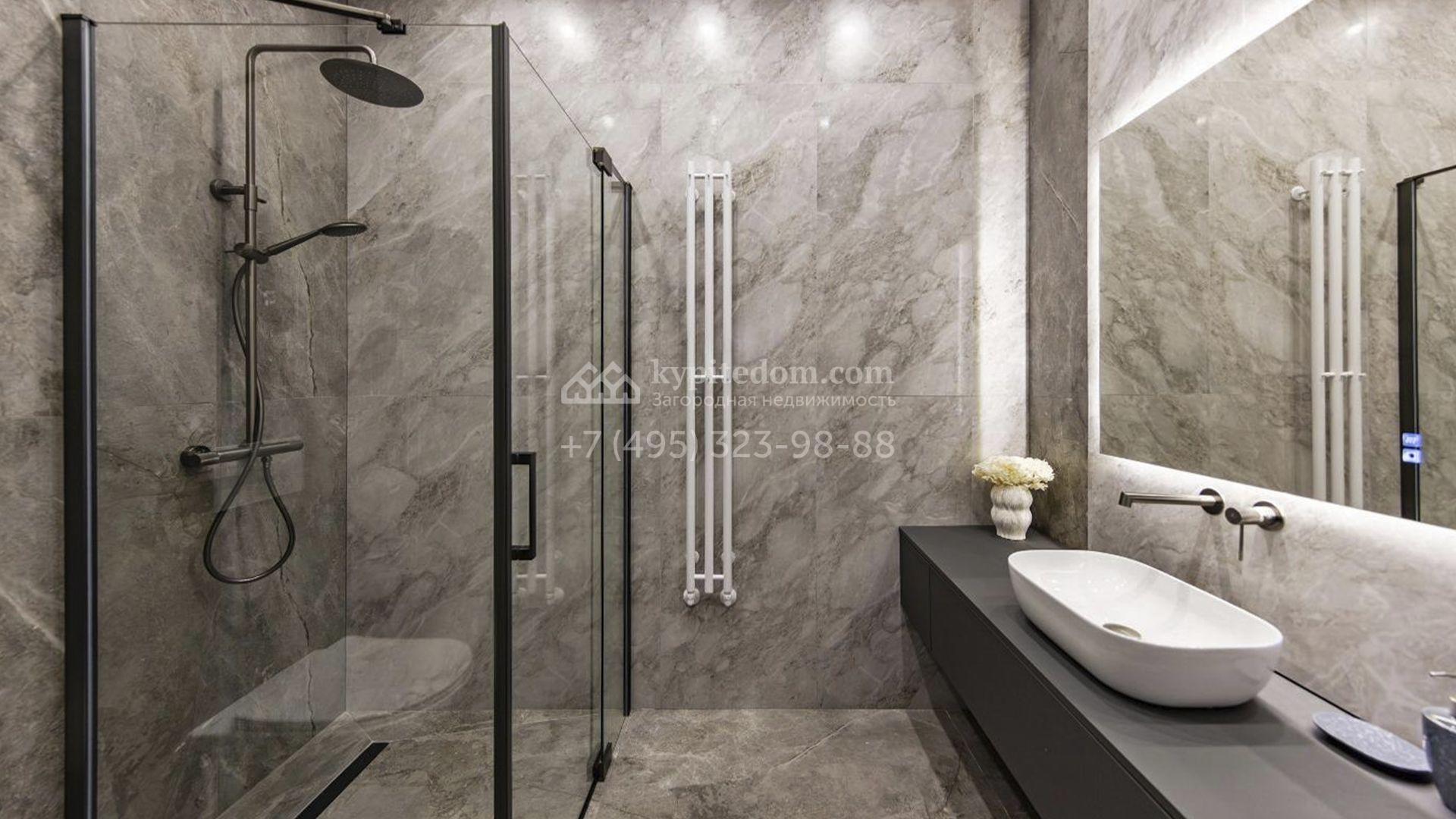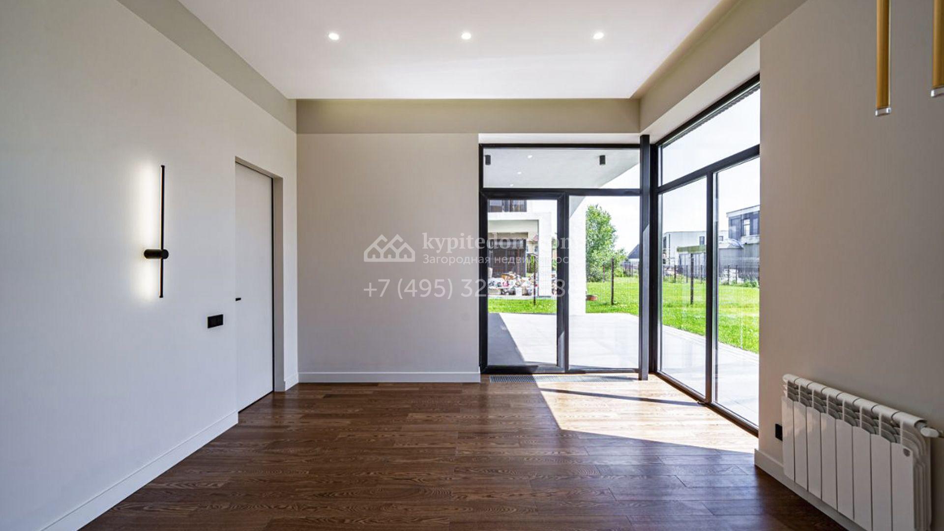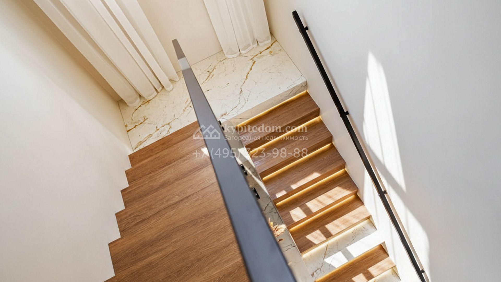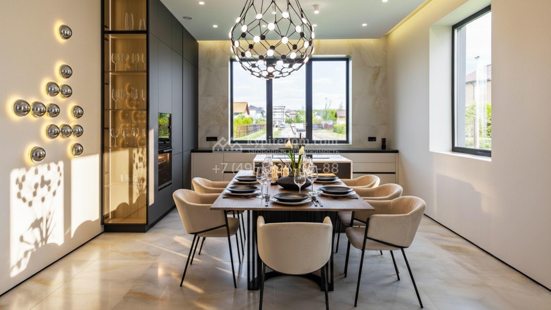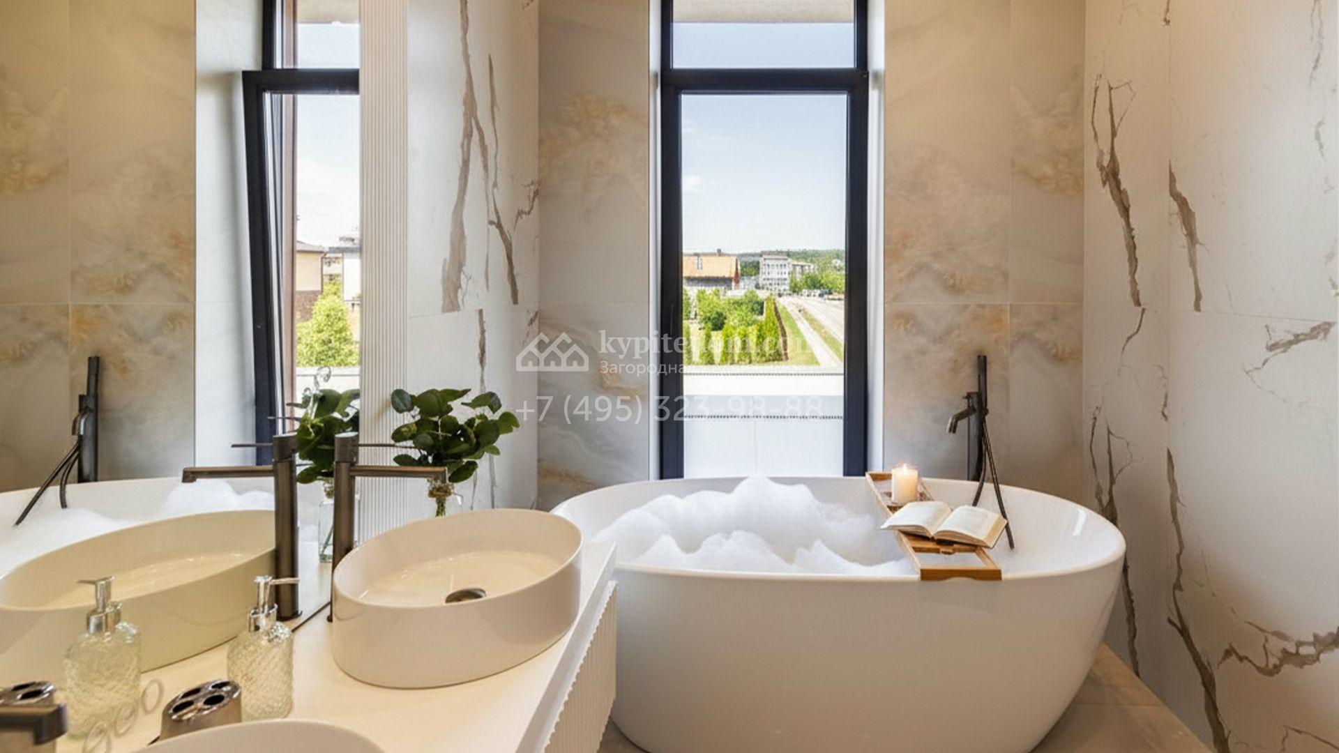 Планировка включает просторную гостиную, объединённую с кухней-столовой, приватный кабинет для работы и три спальни с вместительными гардеробными. С открытых террас открываются живописные виды на посёлок — идеальные места для отдыха с чашкой кофе в лучах заката и отдыха на свежем воздухе. Благоустроенный участок со свежескошенным газоном и вымощенной брусчаткой въездной группой можно дополнить стройными туями и яркими цветниками.