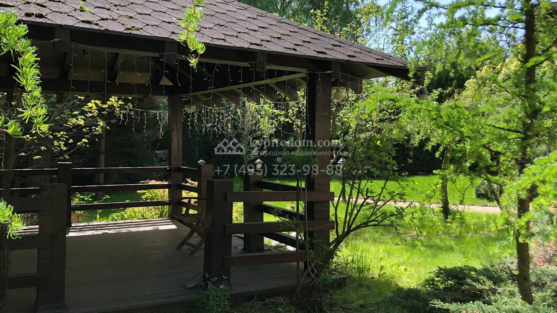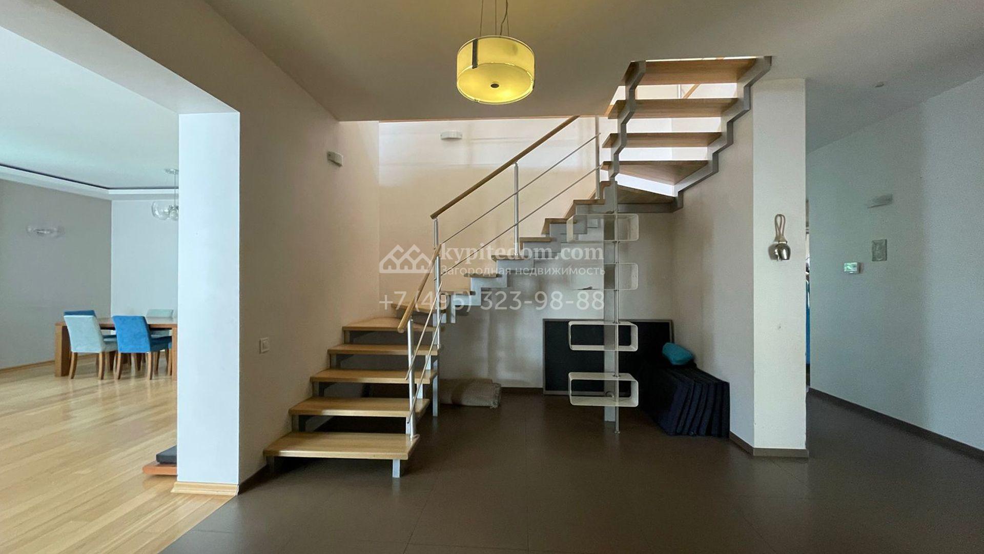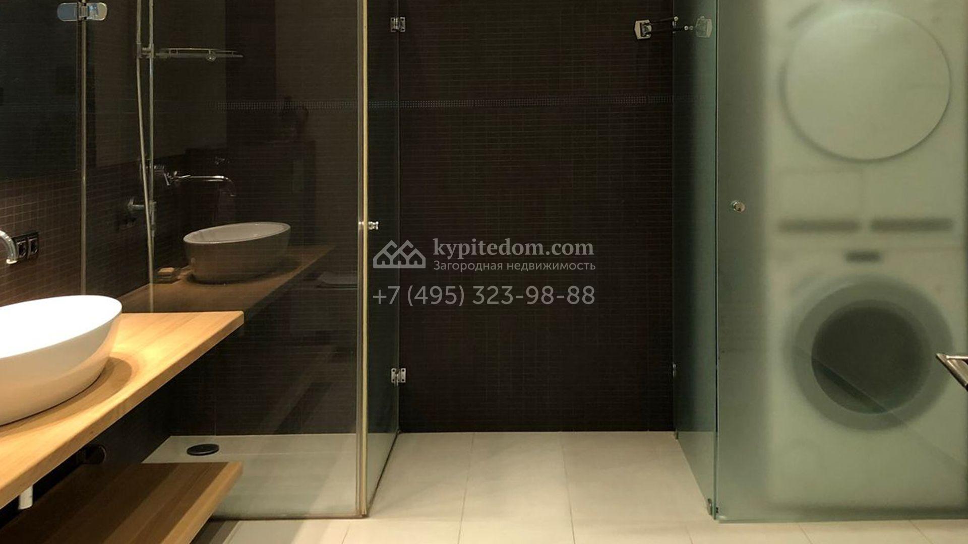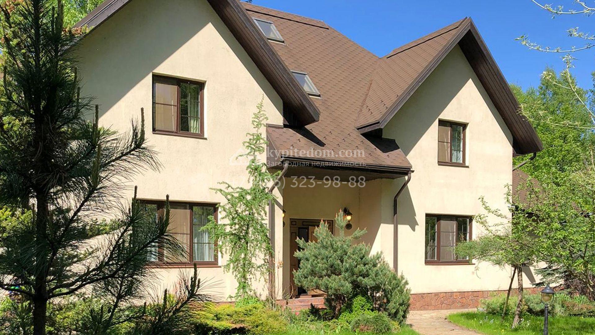 Загородный дом площадью 362 м² построен на участке 10,3 сотки с лесными деревьями. Фасад здания с коричневой крышей облицован бежевой штукатуркой. В отделке интерьера использованы светлые теплые оттенки. В резиденции разместили 4 спальни, просторную гостиную с камином и зоной столовой, кухню и кабинет. В контуре дома предусмотрен гараж. Провести время на свежем воздухе можно в беседке. На участке выполнен ландшафтный дизайн, вымощены дорожки, установлено уличное освещение.