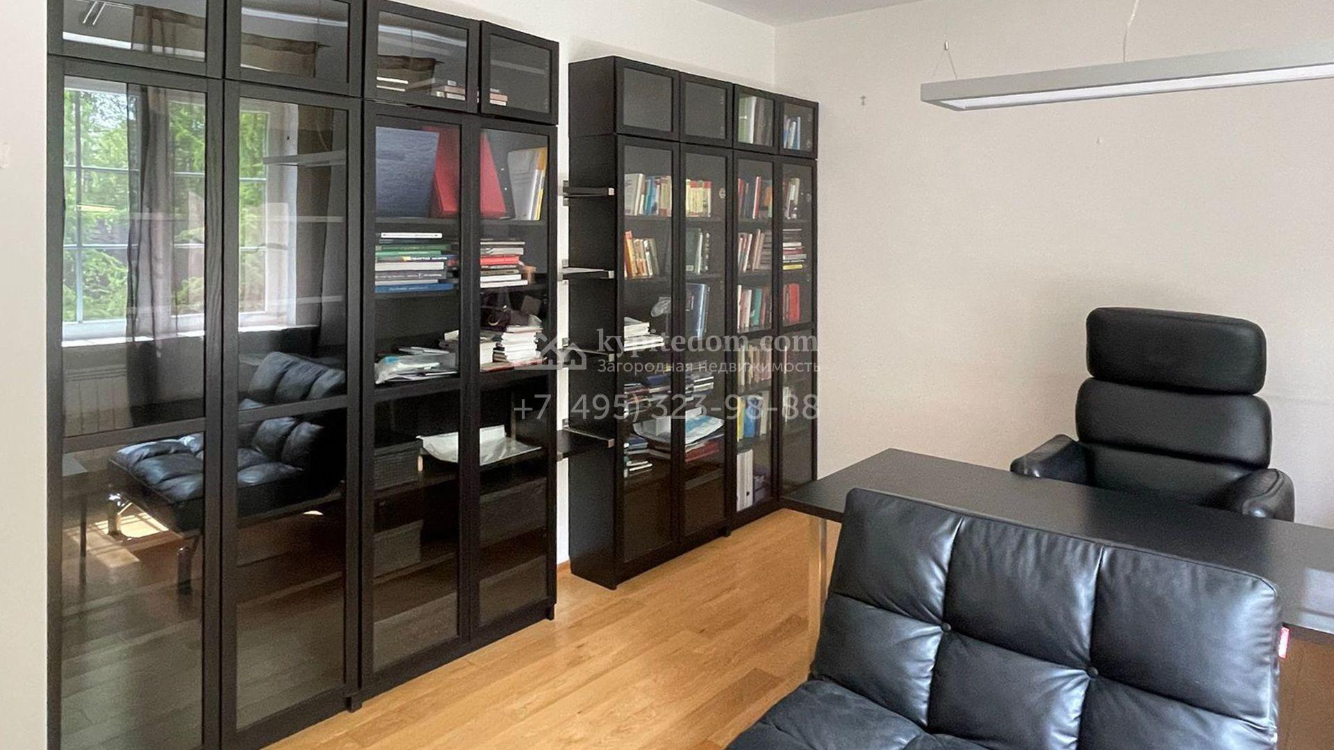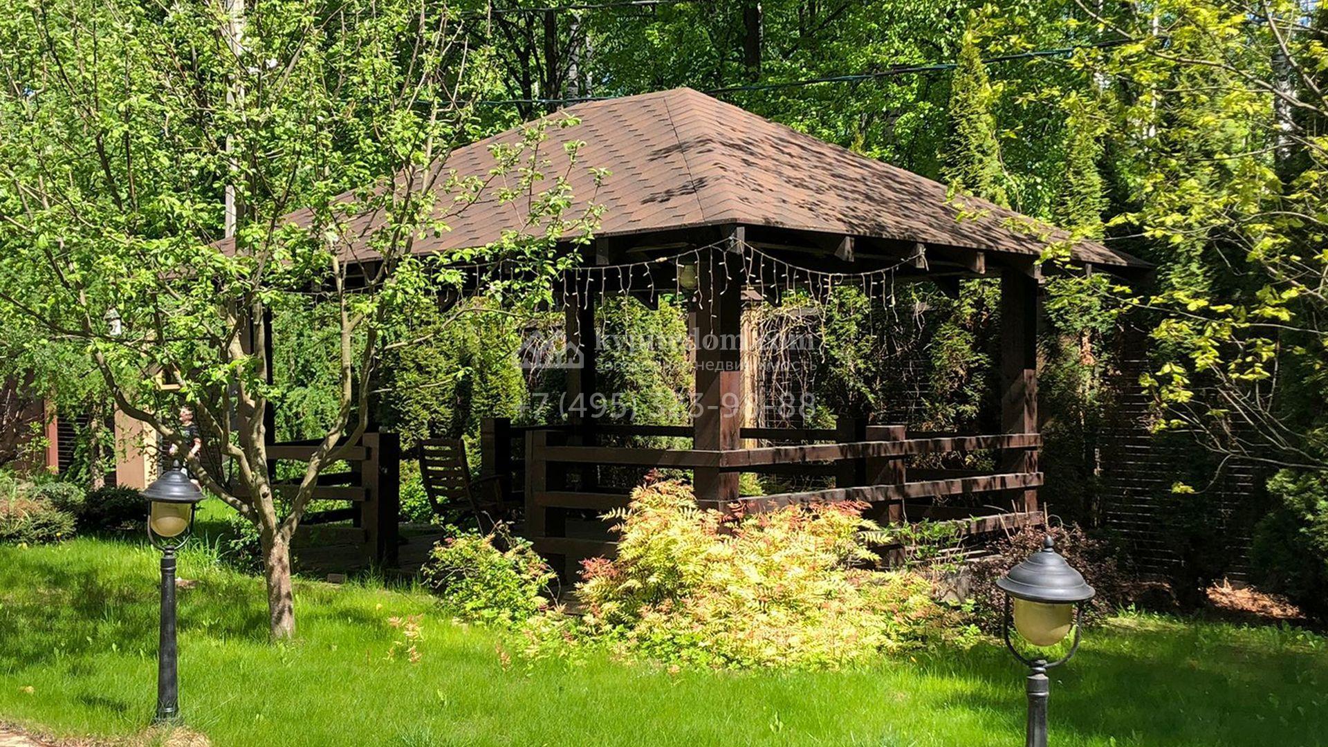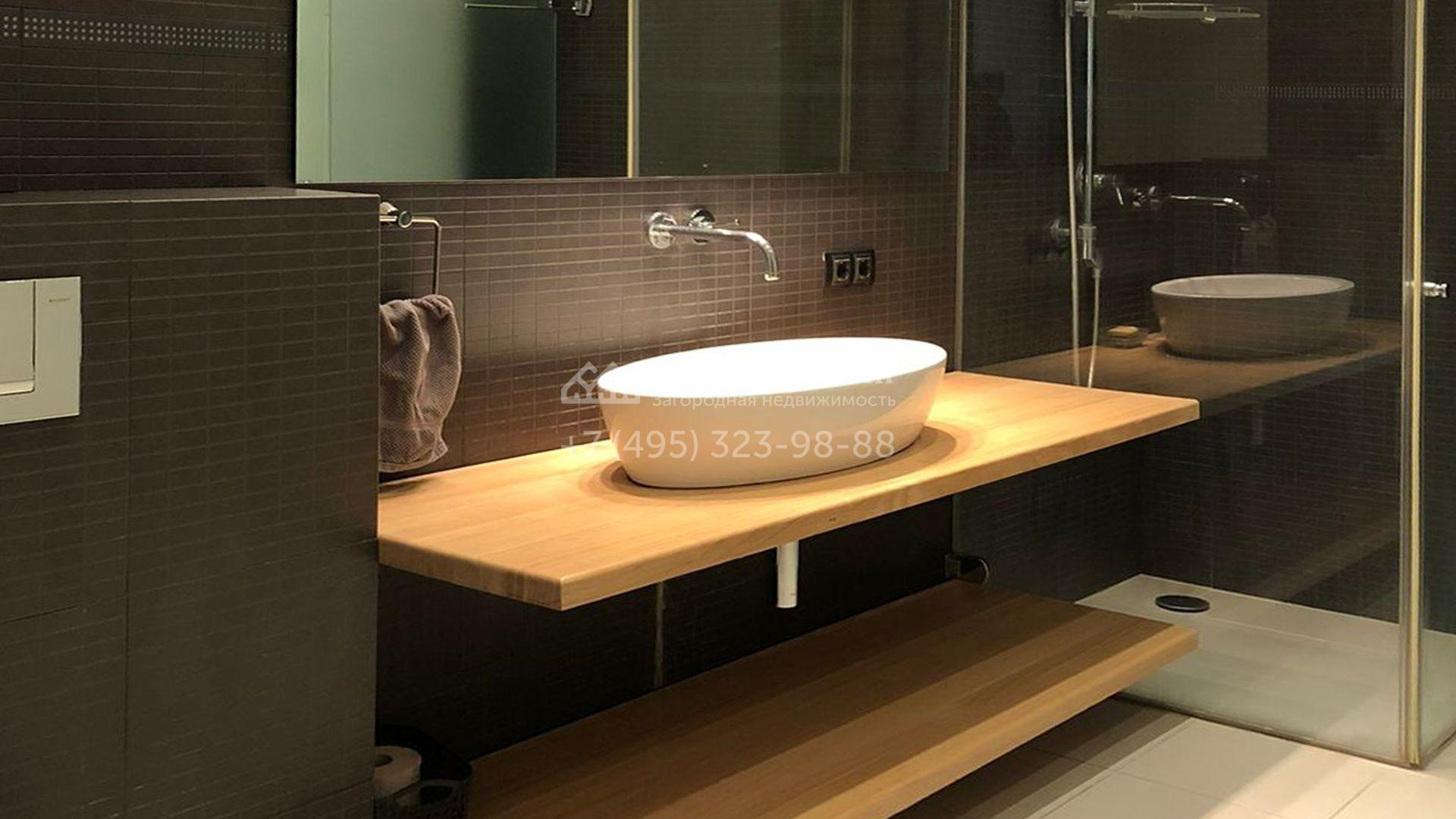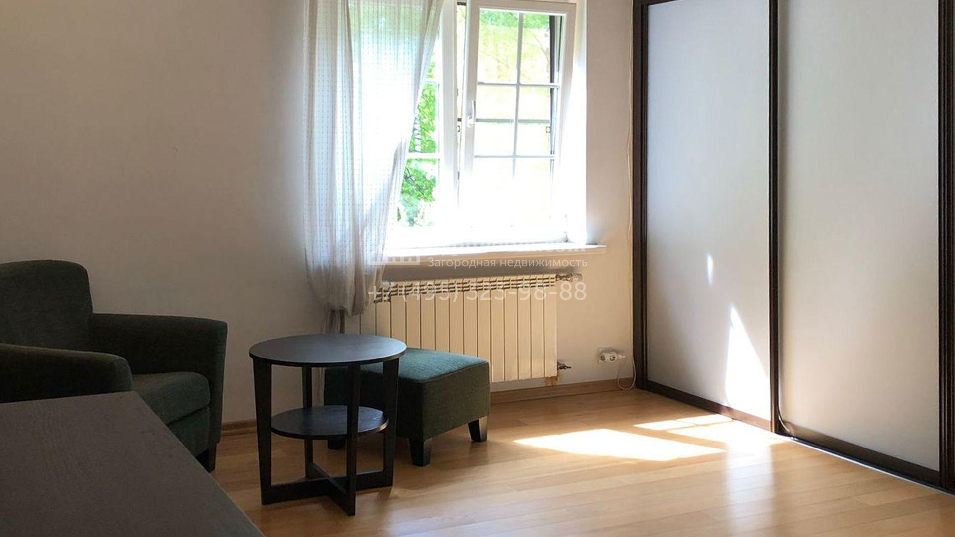 Загородный дом площадью 362 м² построен на участке 10,3 сотки с лесными деревьями. Фасад здания с коричневой крышей облицован бежевой штукатуркой. В отделке интерьера использованы светлые теплые оттенки. В резиденции разместили 4 спальни, просторную гостиную с камином и зоной столовой, кухню и кабинет. В контуре дома предусмотрен гараж. Провести время на свежем воздухе можно в беседке. На участке выполнен ландшафтный дизайн, вымощены дорожки, установлено уличное освещение.