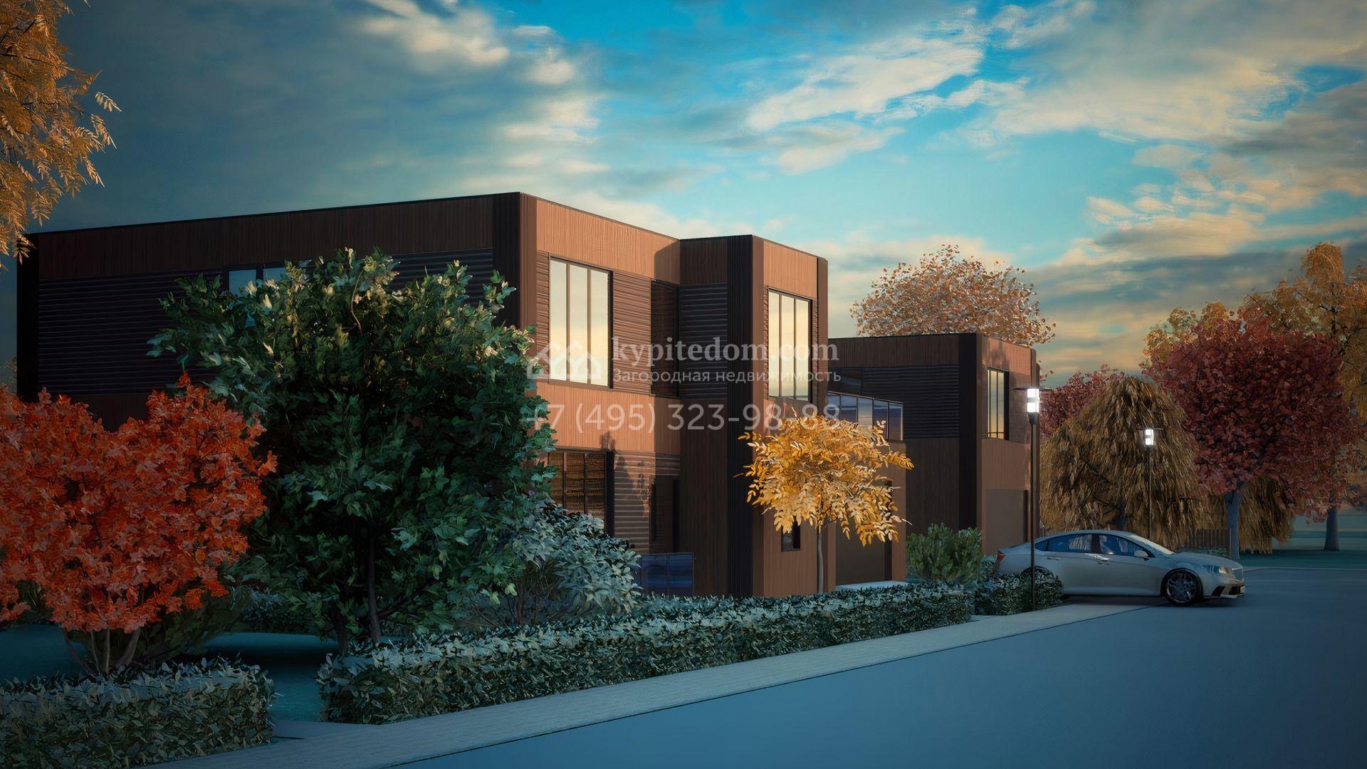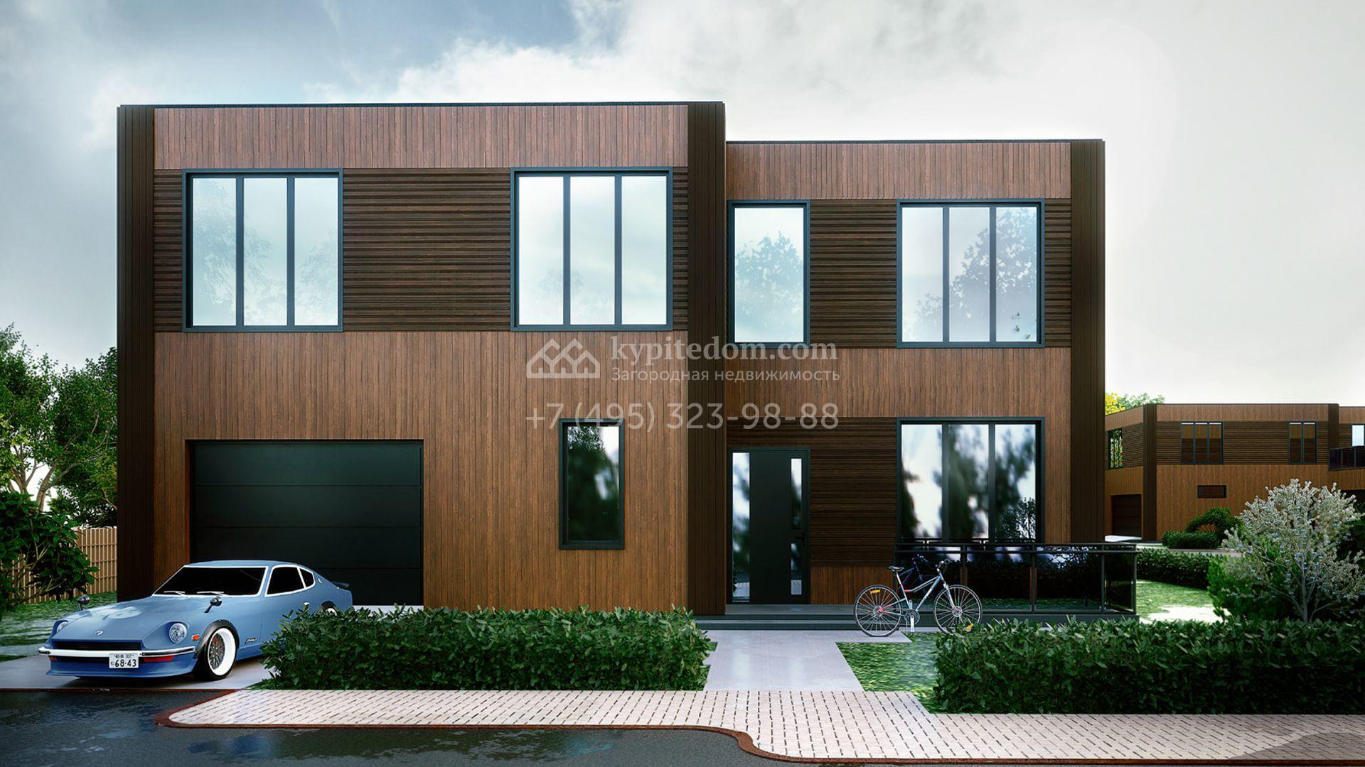 Загородный дом площадью 266 м² расположен на полевом участке 6,7 сотки. Фасад в современном стиле облицован планкеном из натурального дерева и декорирован подсветкой. В коттедже без отделки. Планировка позволяет обустроить несколько спален с санузлами, гостиную, кухню, столовую, кабинет. Предусмотрен гараж на 2 машины. На участке можно выполнить ландшафтный дизайн и обустроить зону барбекю на террасе.