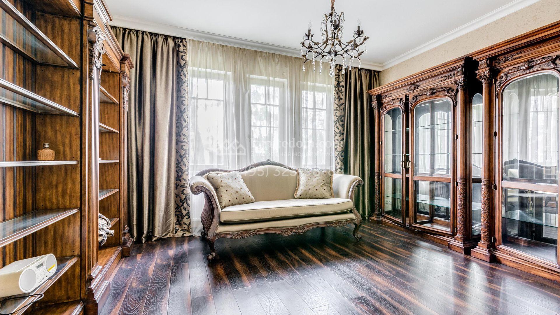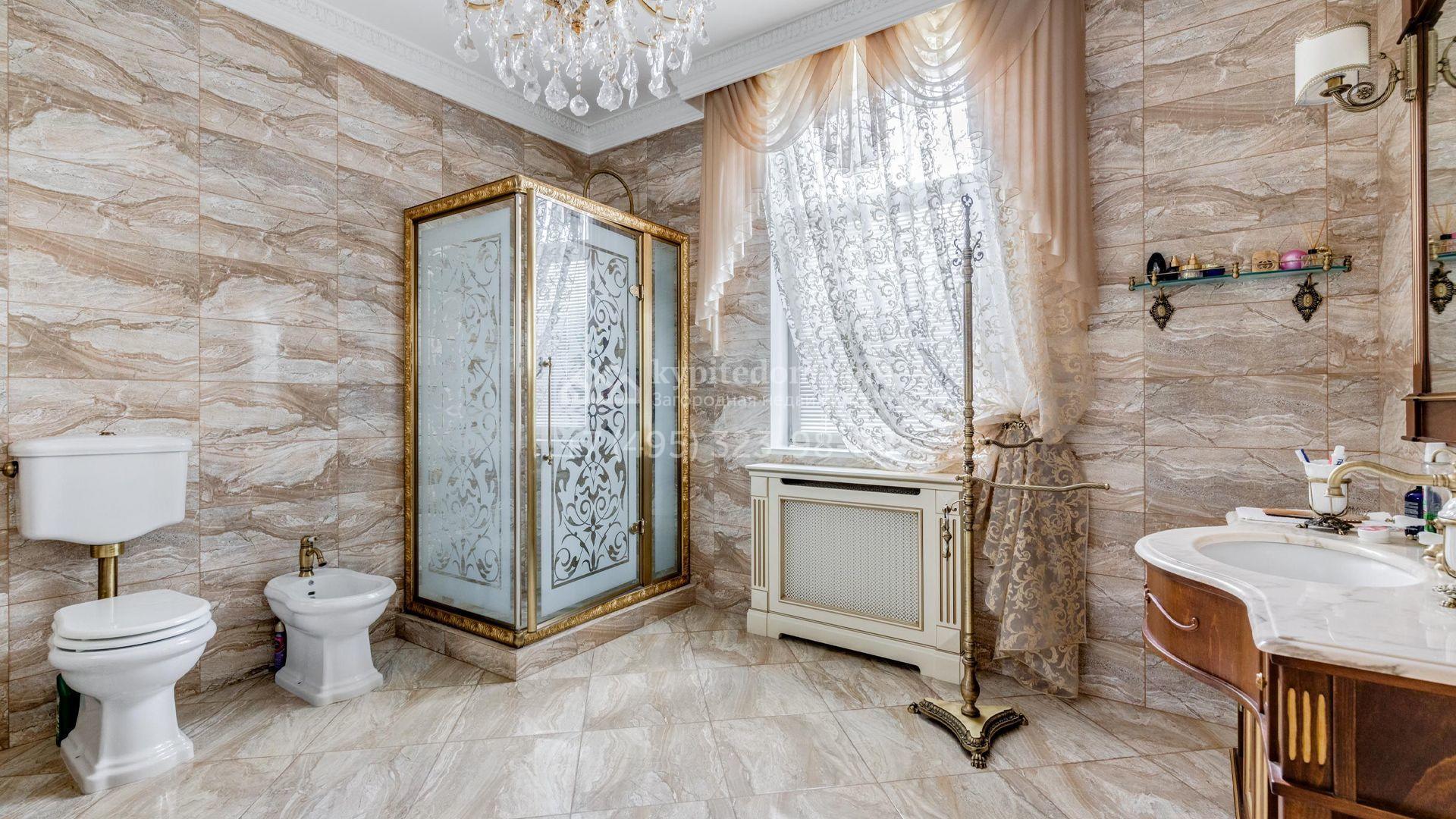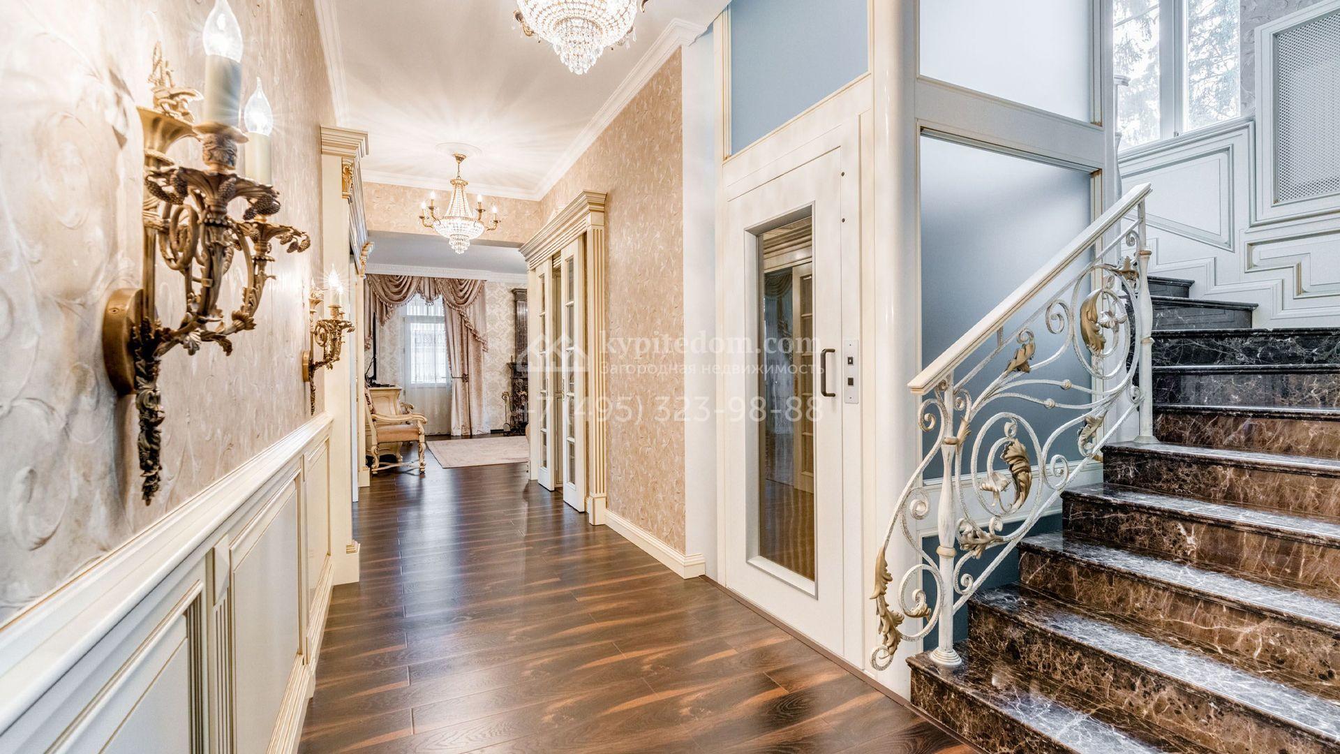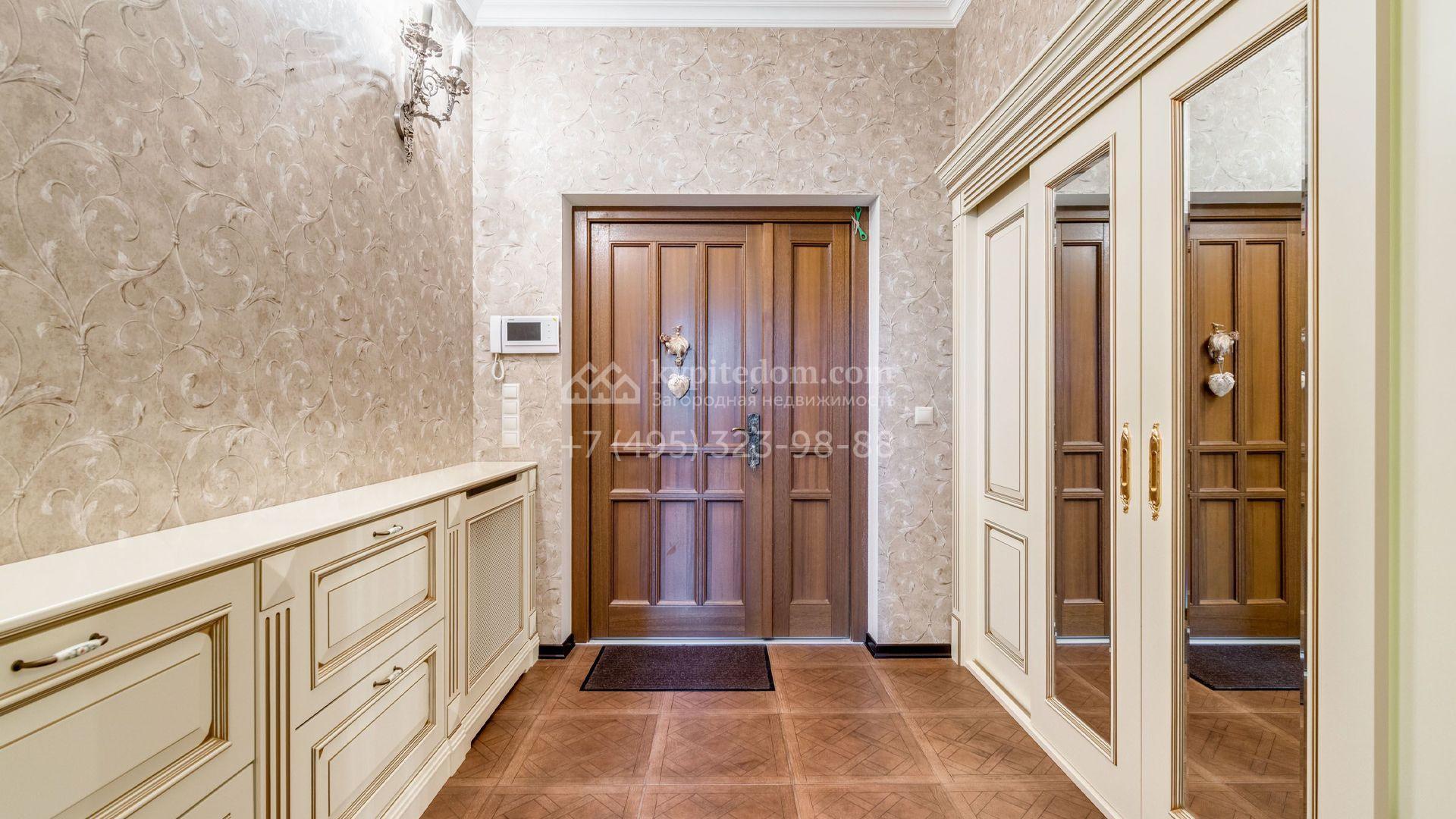 Резиденция во фламандском стиле площадью 370 м² расположена на уютном лесном участке 14,8 сотки с соснами. Фасад главного дома выполнен по старинным образцам с большим вниманием к деталям — облицовка из красного клинкера дополнена рустовкой, резным карнизом, балюстрадой и шпилем на крыше. Интерьер резиденции выполнен в классическом стиле в светлых тонах. Парадная лестница дополнена лифтом. Кухня и санузлы оборудованы встроенной техникой. На участке расположен дом для персонала с гаражом в едином стиле с главной резиденцией. Лесной участок засеян газоном, дорожки вымощены плиткой, установлен фонтан.