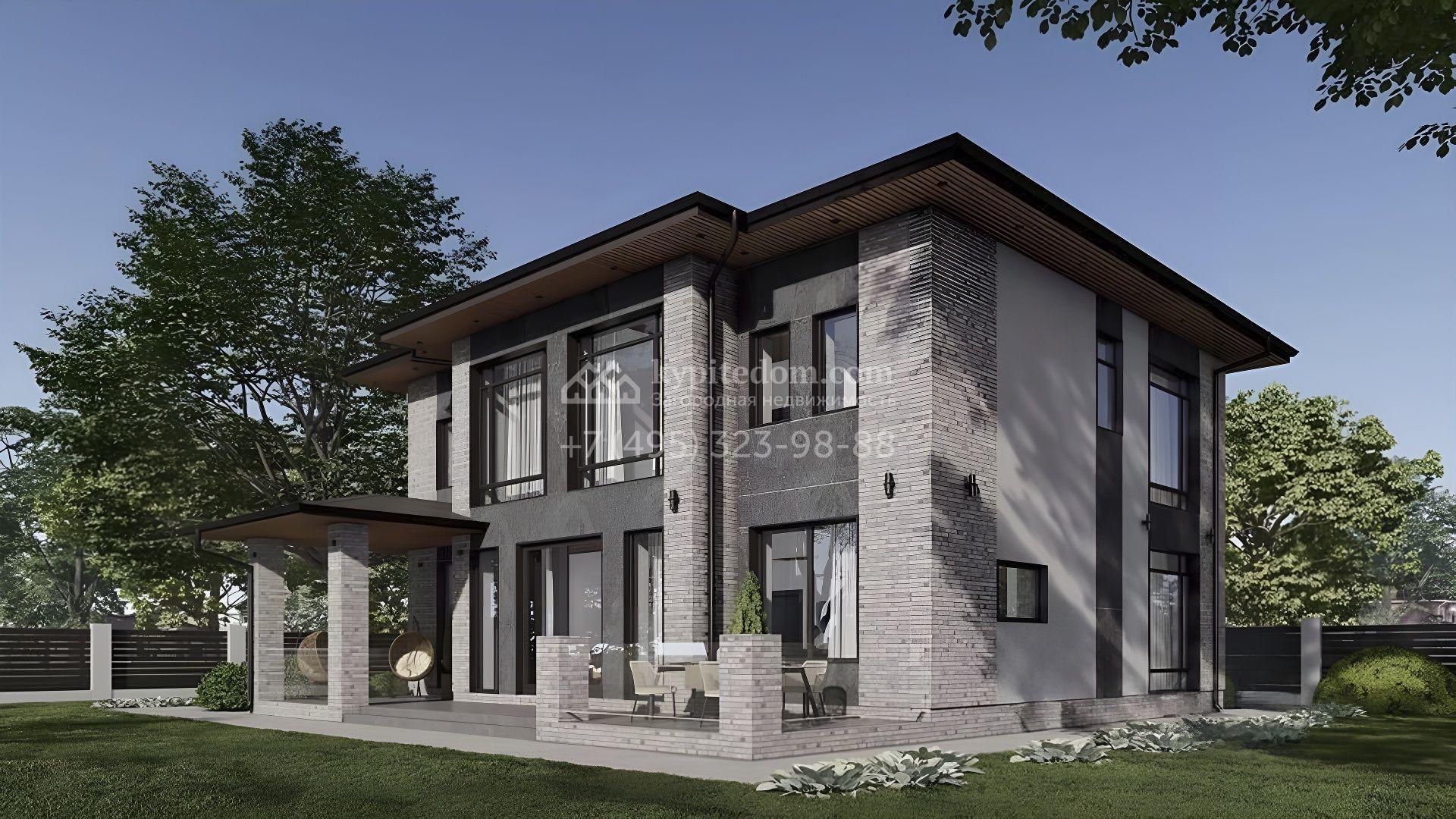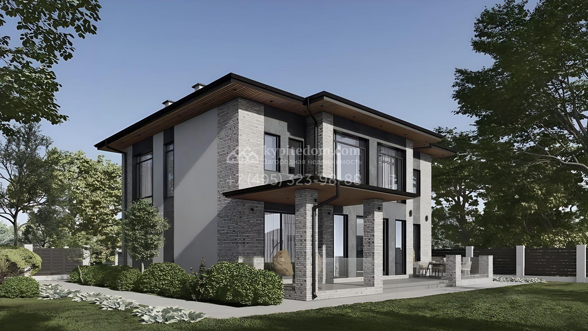 Загородный дом площадью 280 м² построен на участке 10 соток. Фасад здания выполнен в современном стиле с гармоничной комбинацией материалов и архитектурных акцентов. В отделке использованы крупноформатная керамика Laminam, фактурная силиконовая штукатурка и клинкерная плитка под кирпич ручной формовки. Панорамные окна, изготовленные из ПВХ профиля VEKA с двойным мультифункциональным стеклопакетом и зеркальным эффектом, создают ощущение простора и пропускают максимум света, обеспечивая теплоизоляцию и комфорт.