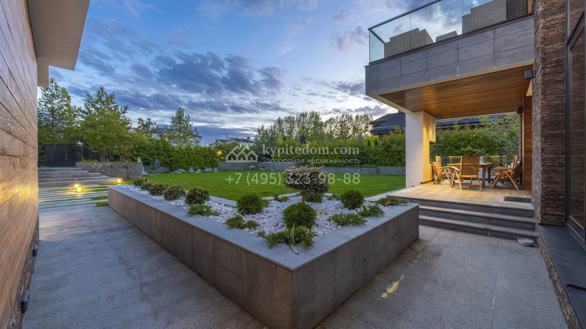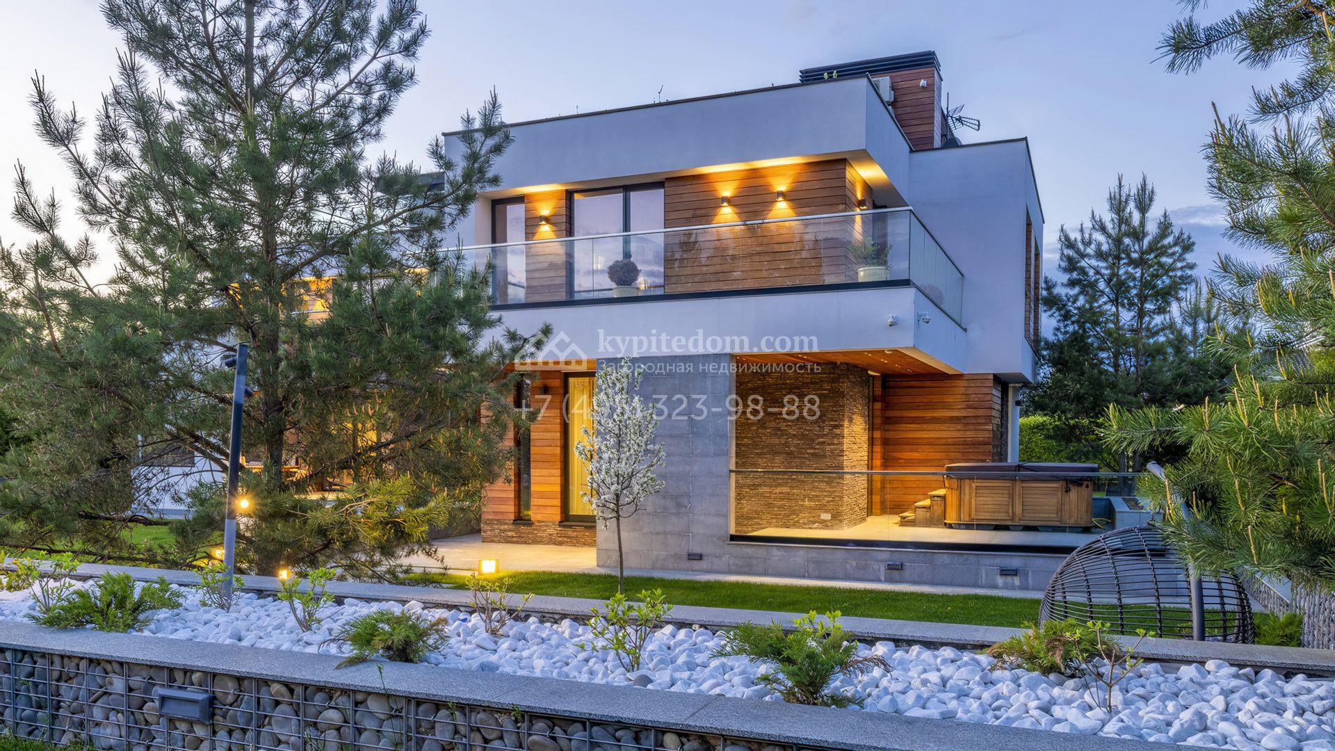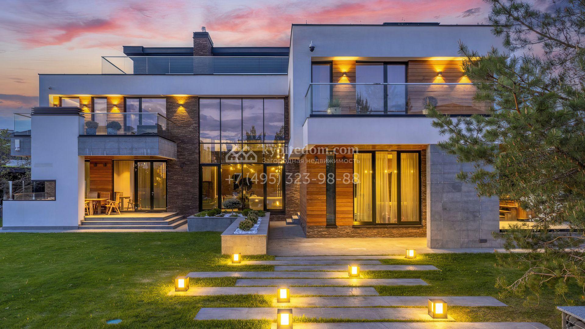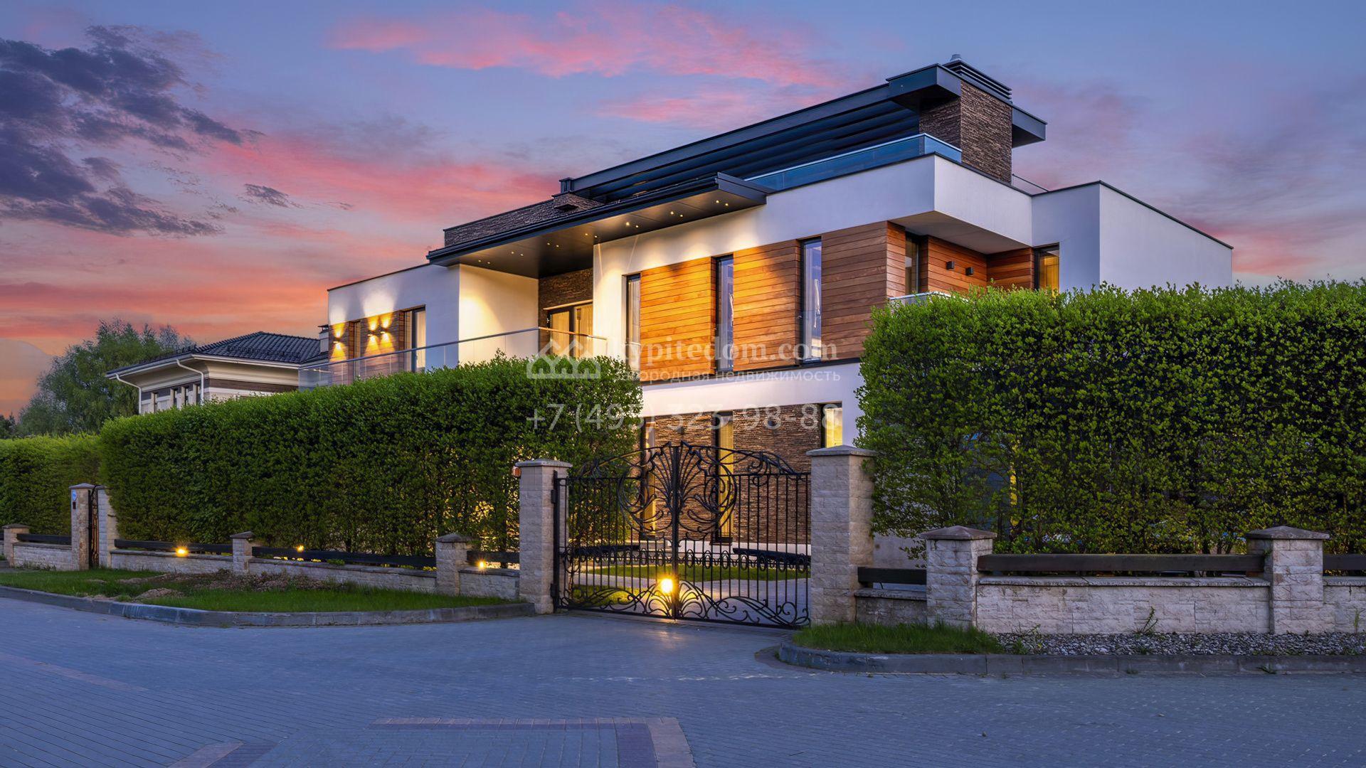 Современный дом площадью 550 м² расположен на благоустроенном участке 18,5 соток. Архитектура сочетает чистые линии, объёмную геометрию и панорамное остекление, формируя выразительный и цельный облик. Дом построен по индивидуальному проекту с высоким уровнем инженерных решений и полным оснащением.
