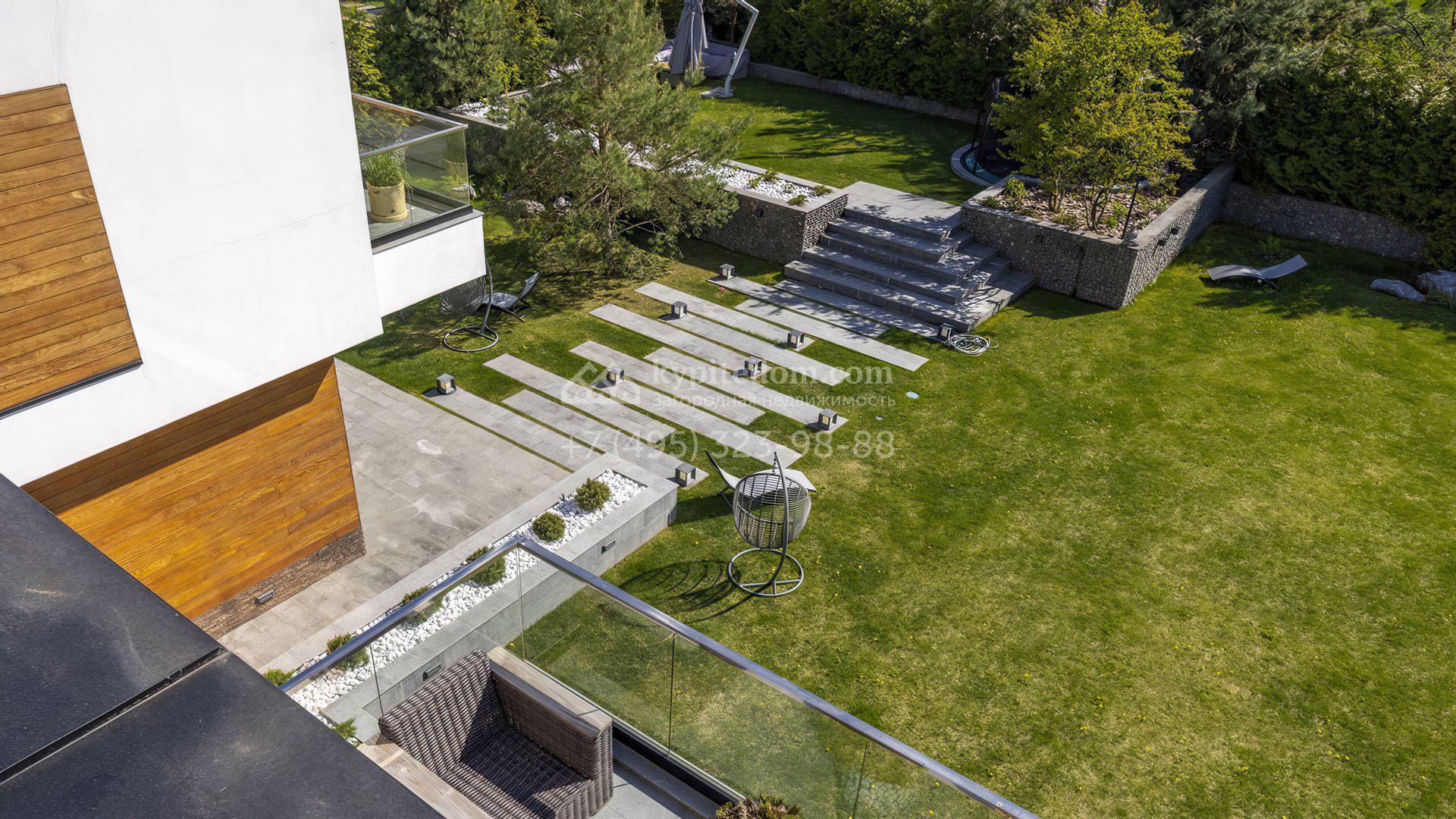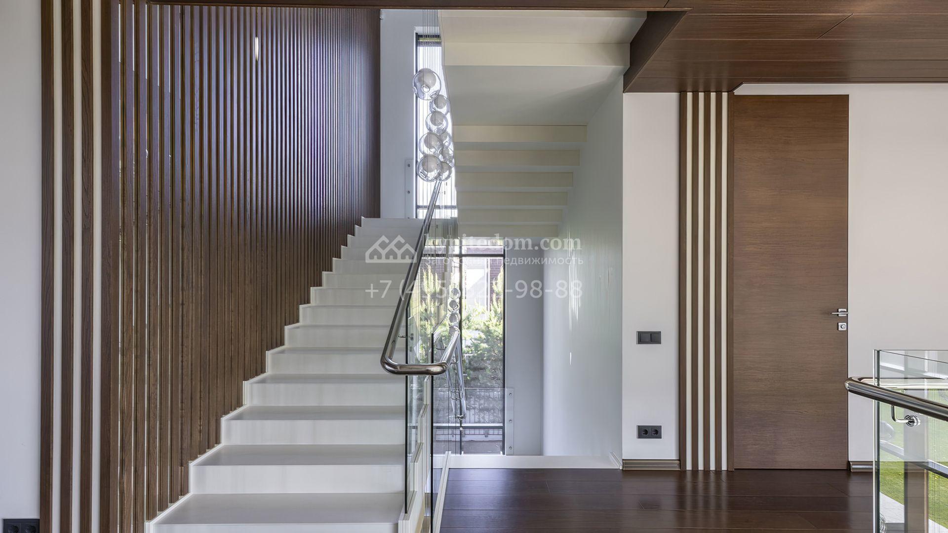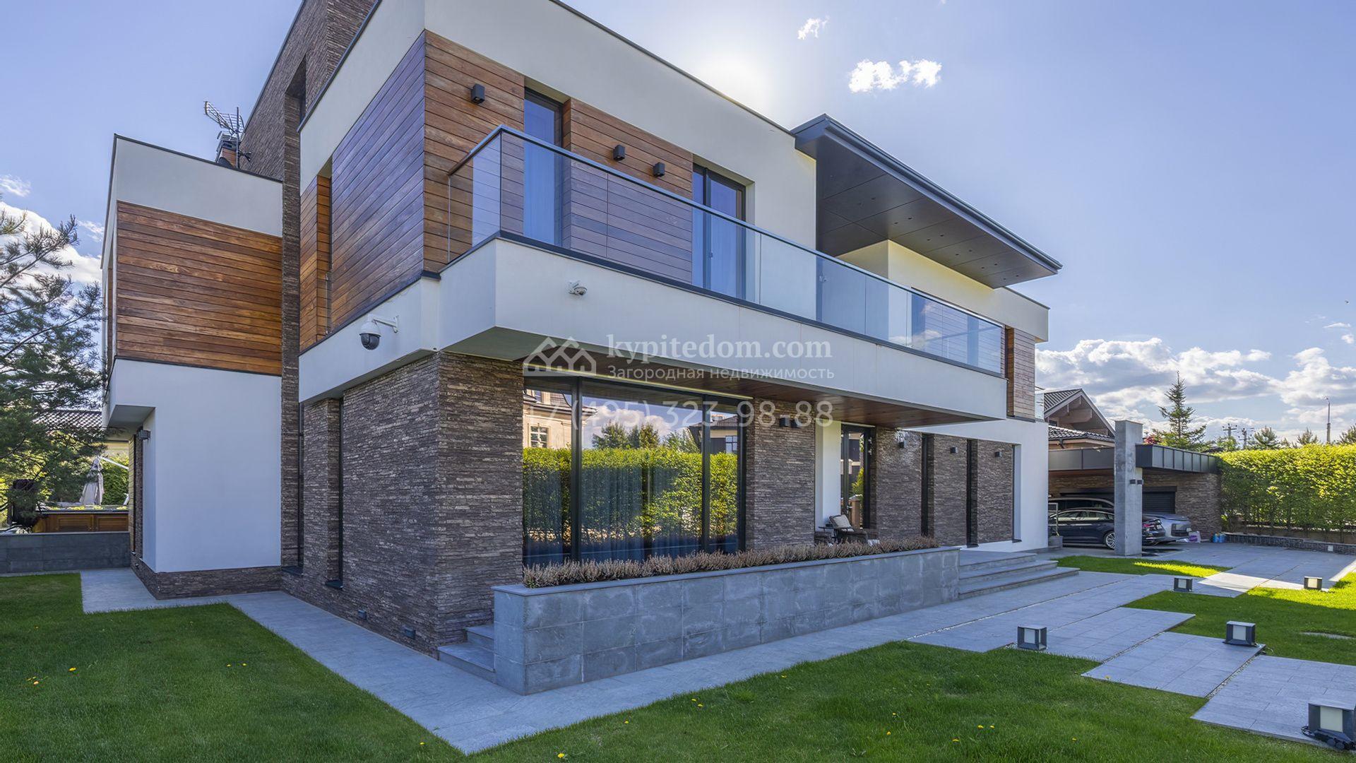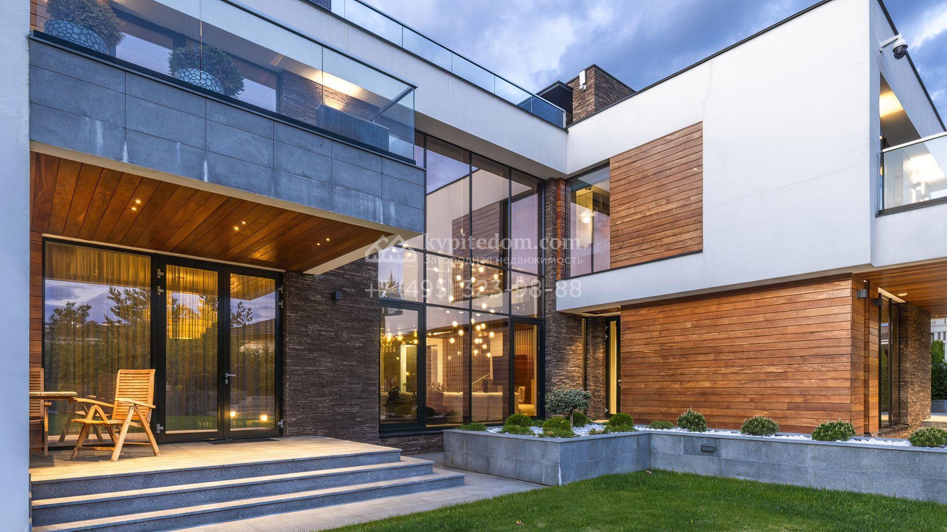 Современный дом площадью 550 м² расположен на благоустроенном участке 18,5 соток. Архитектура сочетает чистые линии, объёмную геометрию и панорамное остекление, формируя выразительный и цельный облик. Дом построен по индивидуальному проекту с высоким уровнем инженерных решений и полным оснащением.