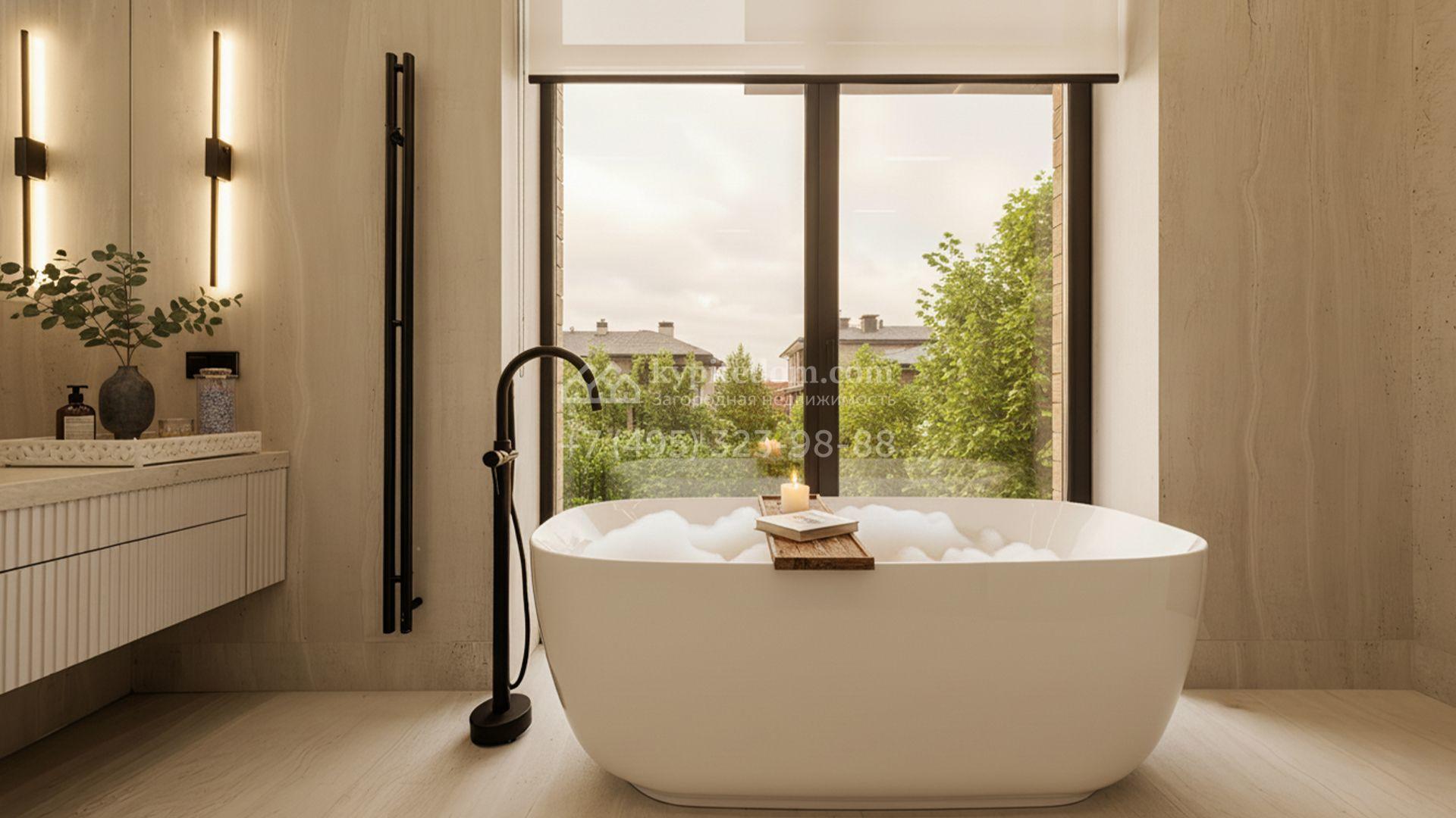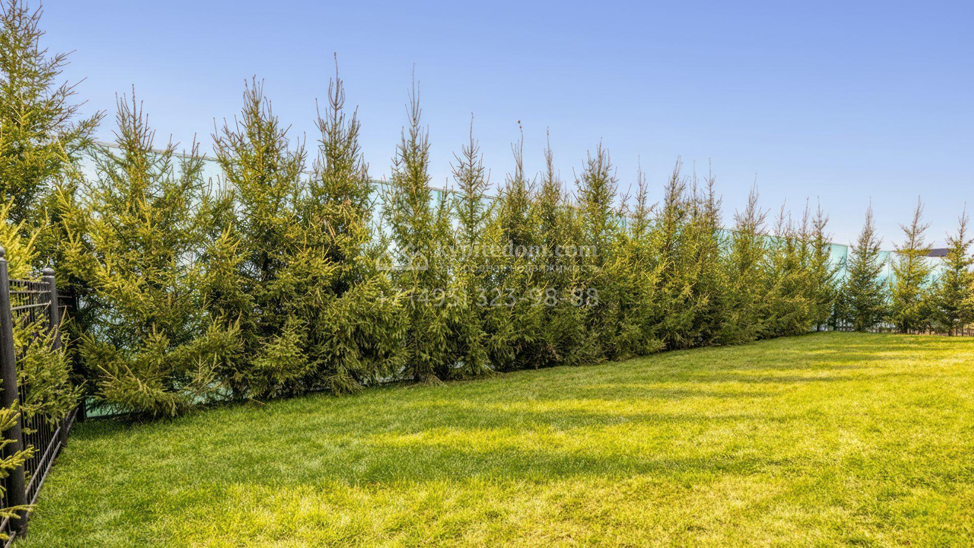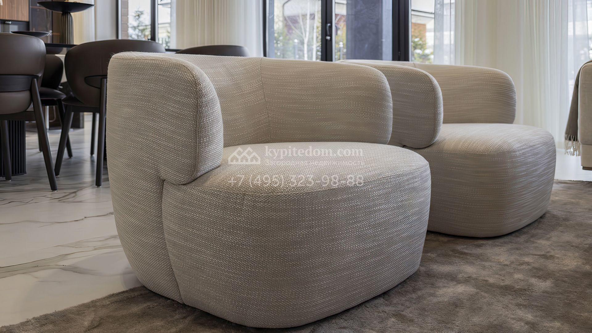 Интерьеры оформлены в современном стиле, где преобладают мягкие нейтральные оттенки. Натуральные древесные текстуры вносят акценты, добавляя пространству теплоту и сложность. Панорамные окна и многоуровневые потолки с тщательно продуманным освещением создают игру света и тени, создавая атмосферу уюта и гармонии. Дом полностью меблирован и укомплектован техникой от ведущих производителей.