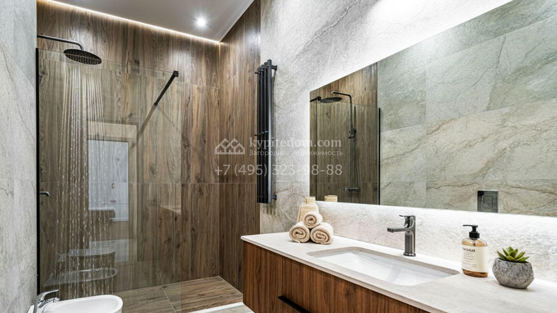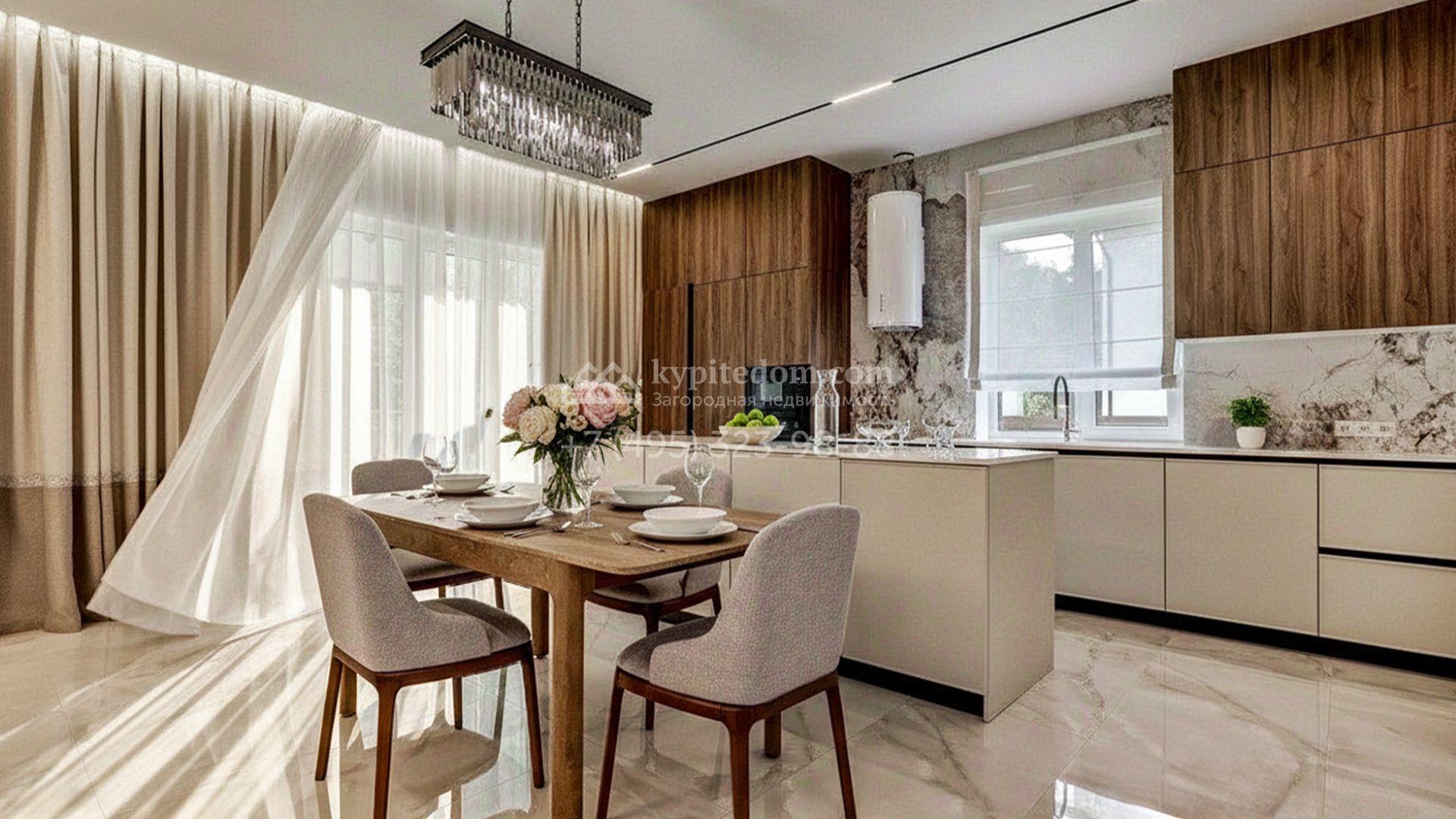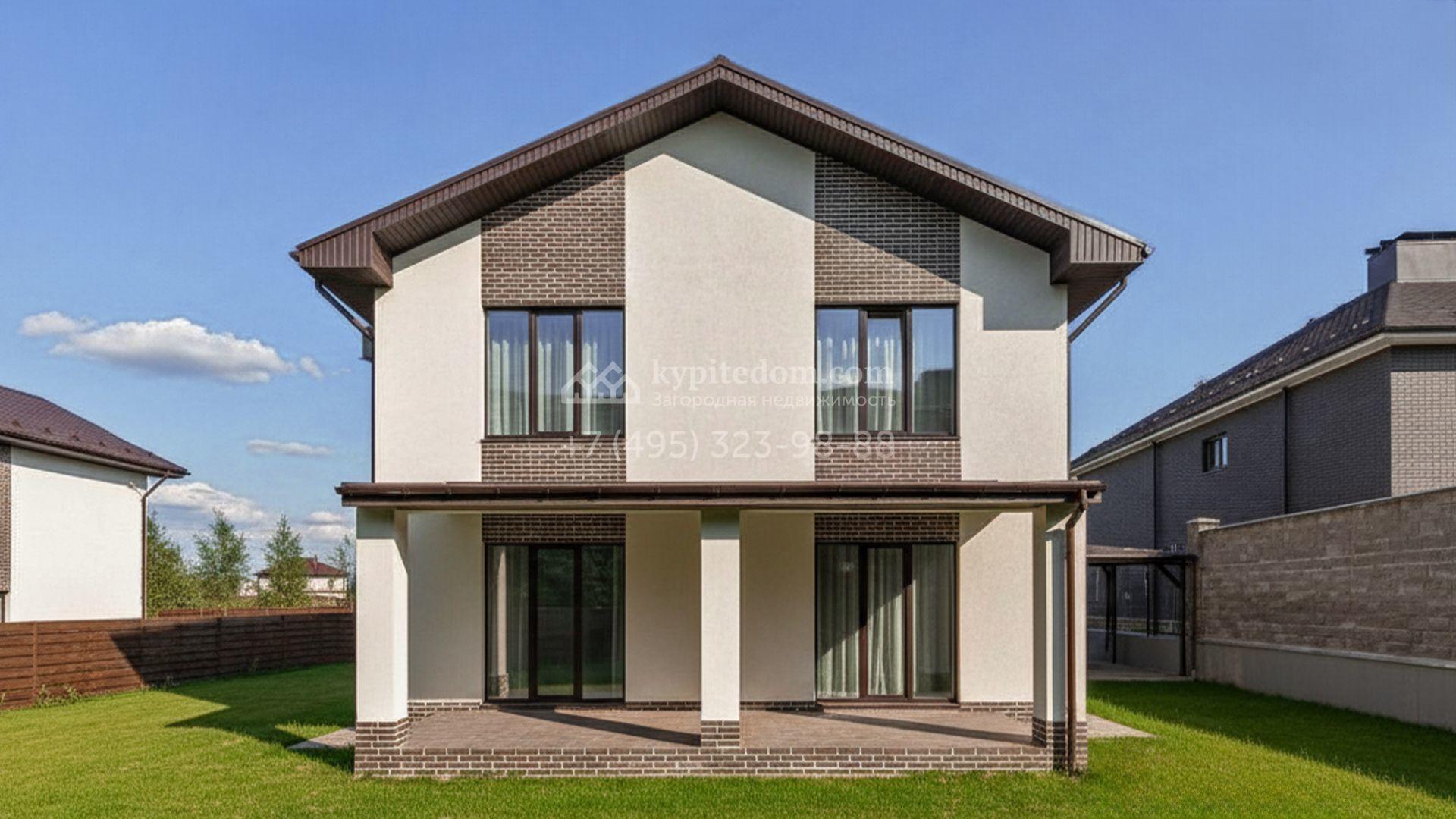 Загородный коттедж площадью 250 м² расположен на участке 8,4 сотки рядом с живописным лесом. Элегантный фасад, сочетающий белоснежную штукатурку и благородный коричневый кирпич, формирует современный и гармоничный облик. Панорамные окна наполняют внутренние пространства солнцем, а высокие потолки дарят ощущение свободы.