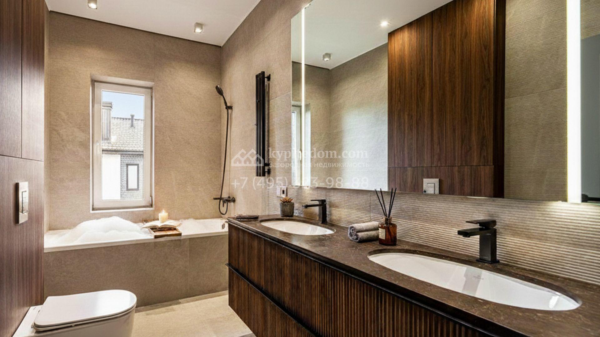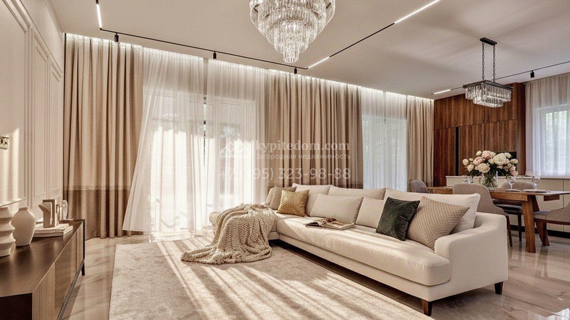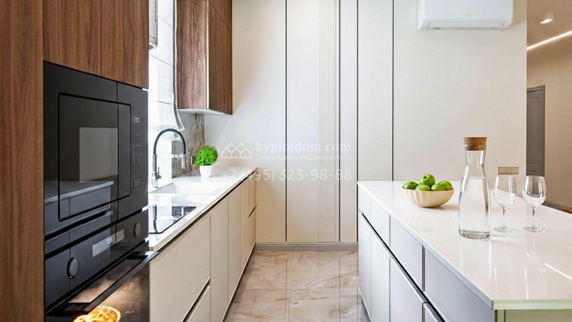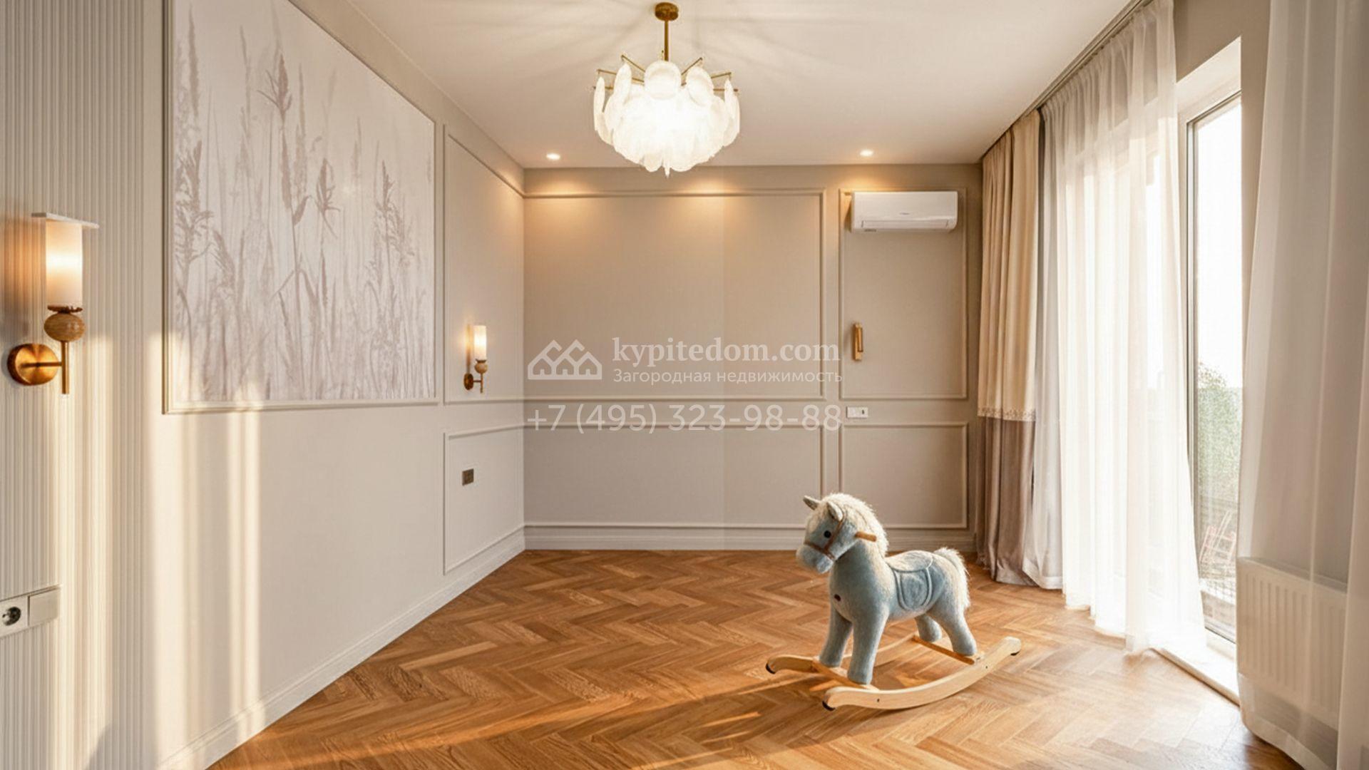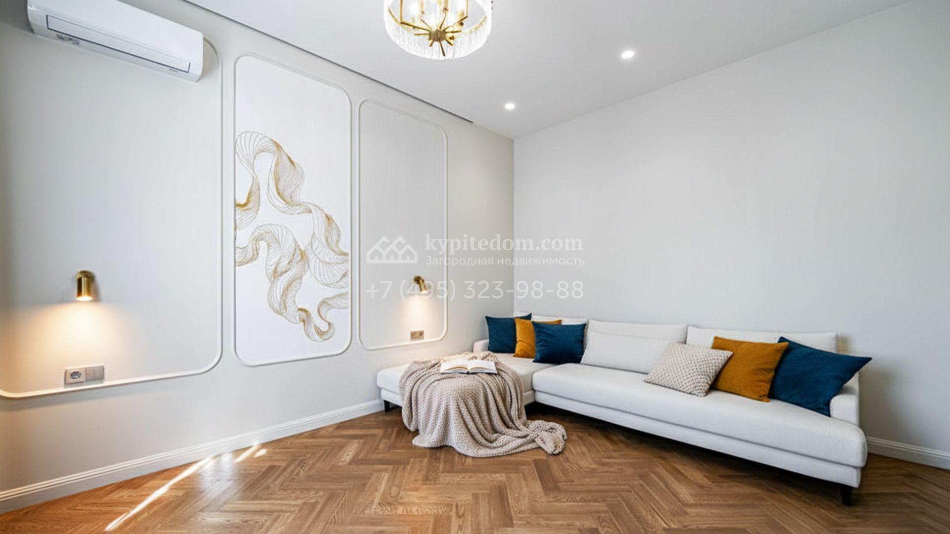 Интерьеры оформлены в изысканном неоклассическом стиле, выдержаны в светлых тонах и украшены изящными молдингами. Дом полностью готов к жизни — он укомплектован комфортной мебелью и встроенной бытовой техникой. Приятный микроклимат в любое время года обеспечивает система кондиционирования.