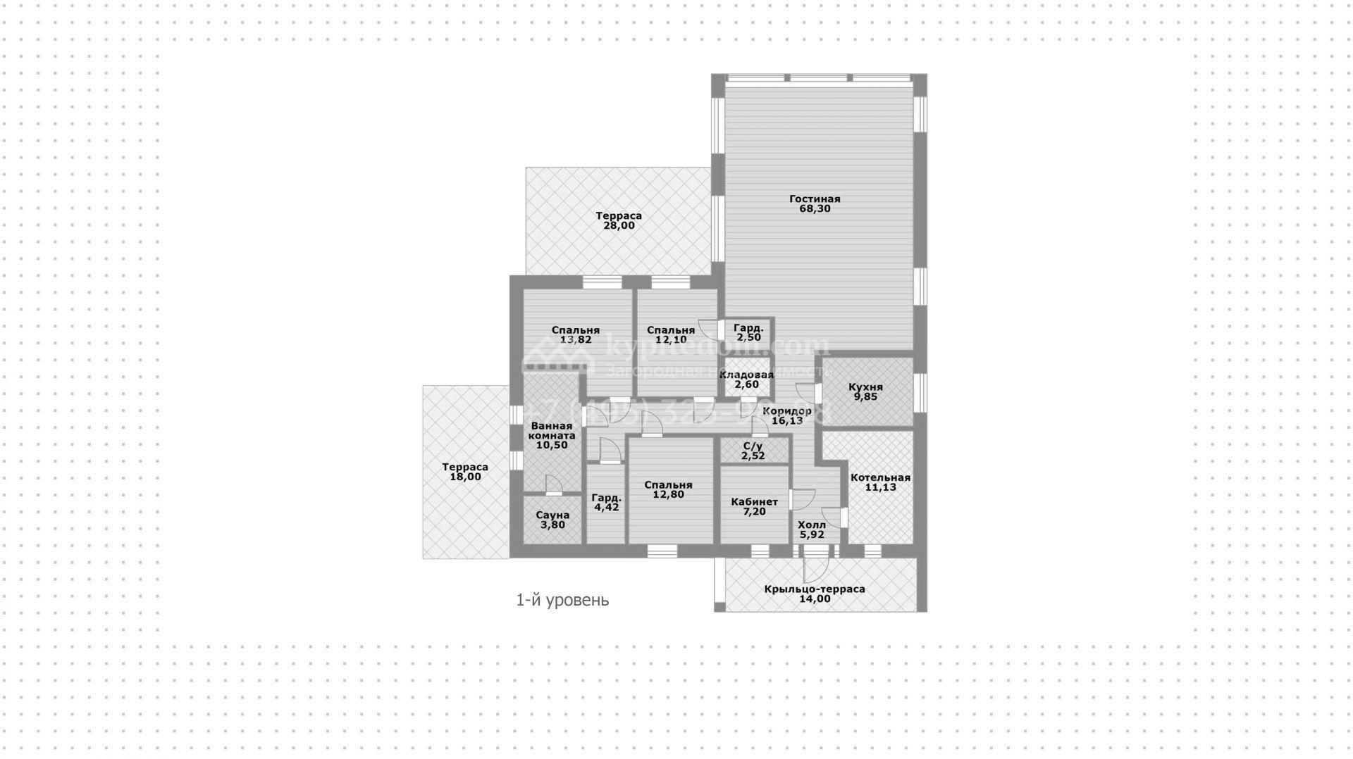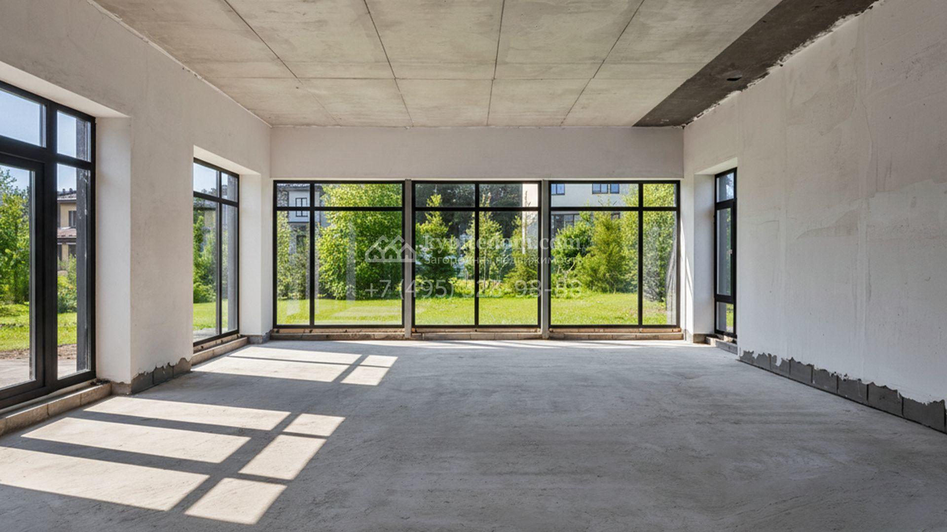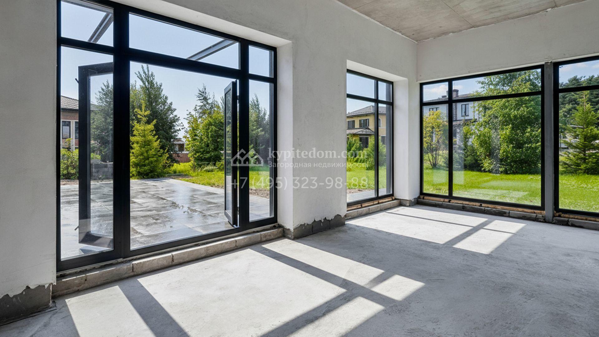 В коттедже с отделкой white box осталось лишь выбрать финишные покрытия. Планировкой предусмотрены три спальни, гостиная с возможностью установки камина, парадная и рабочая кухни, кабинет, сауна и две террасы. На ровном участке правильной формы выполнен ландшафтный дизайн, высажены ягодные кустарники, хвойные и лиственные деревья, установлена система полива.