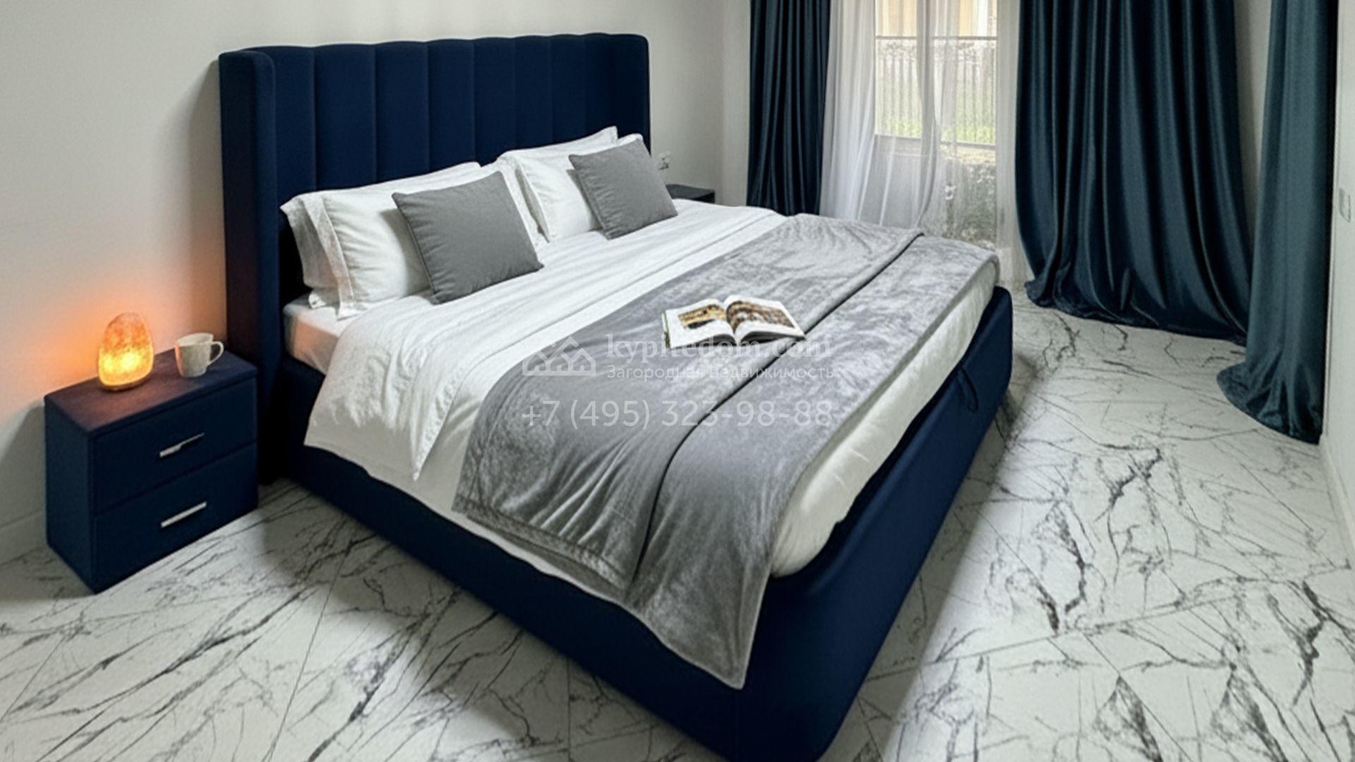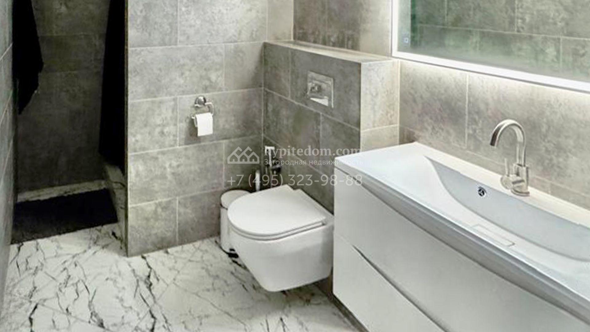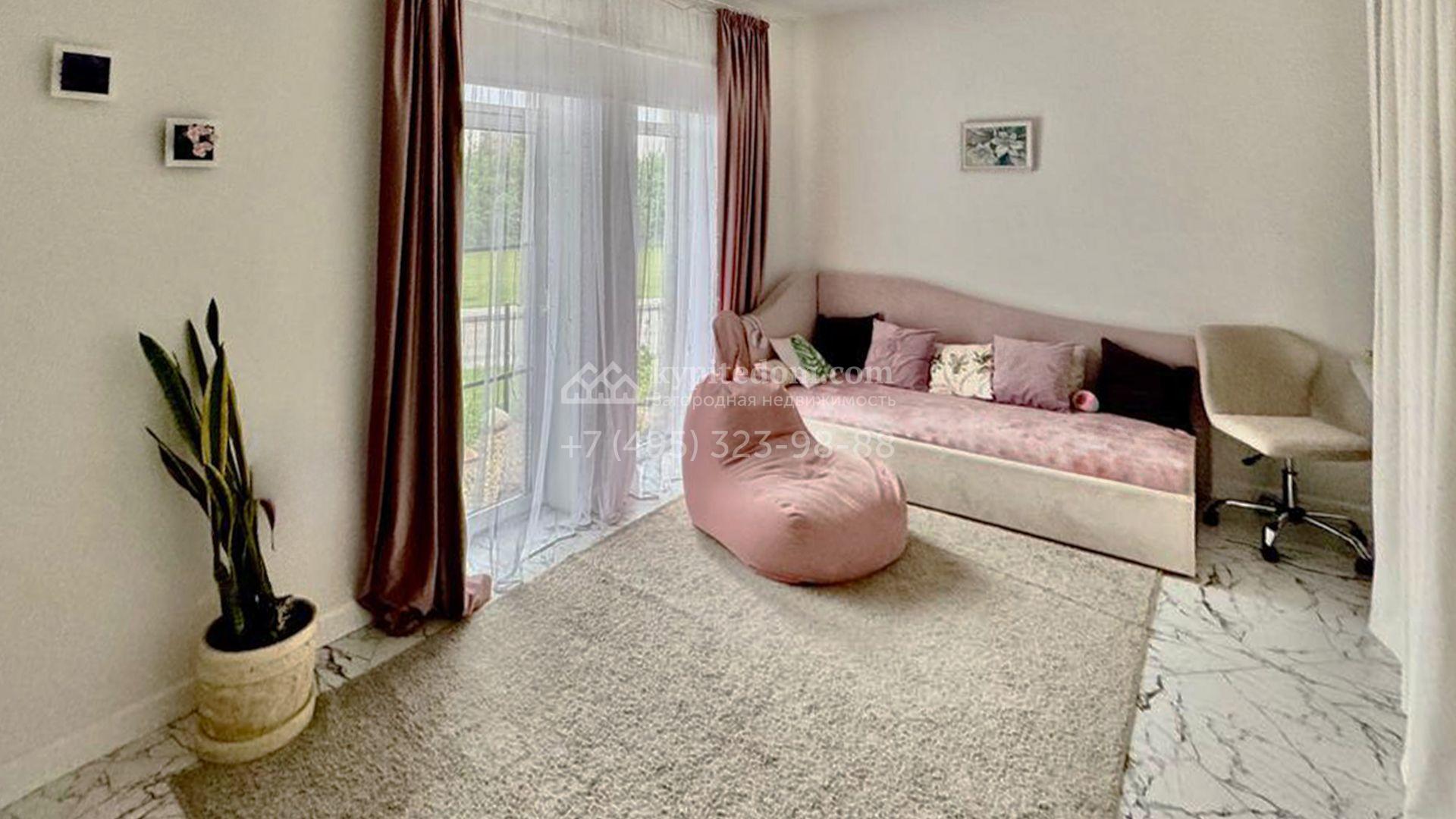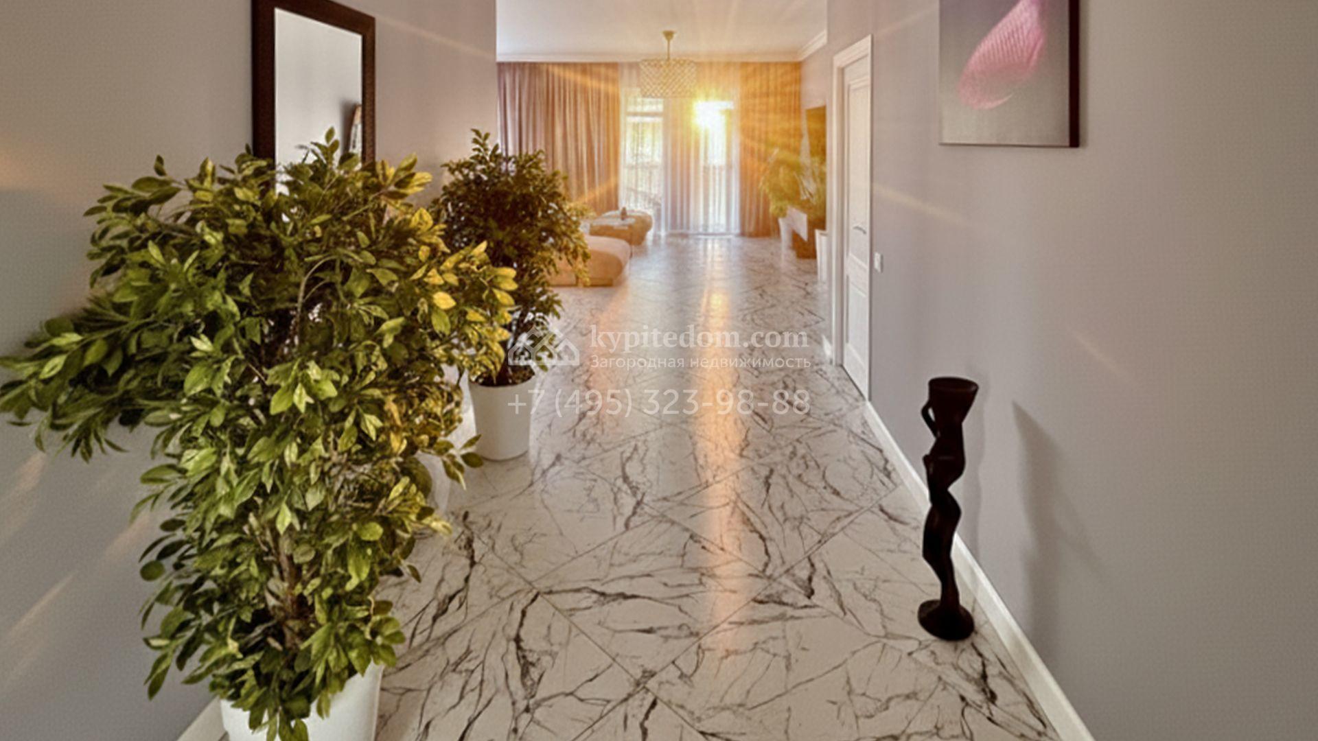 Загородный коттедж площадью 187 м² расположен на полевом участке 10 соток в тихой части посёлка. Современный одноэтажный фасад с окнами в пол облицован белоснежной штукатуркой. Интерьеры выдержаны в светлых, спокойных тонах, а также укомплектованы комфортной мебелью и встроенной бытовой техникой Siemens и Bosch. Тёплые водяные полы обеспечивают приятный микроклимат.
