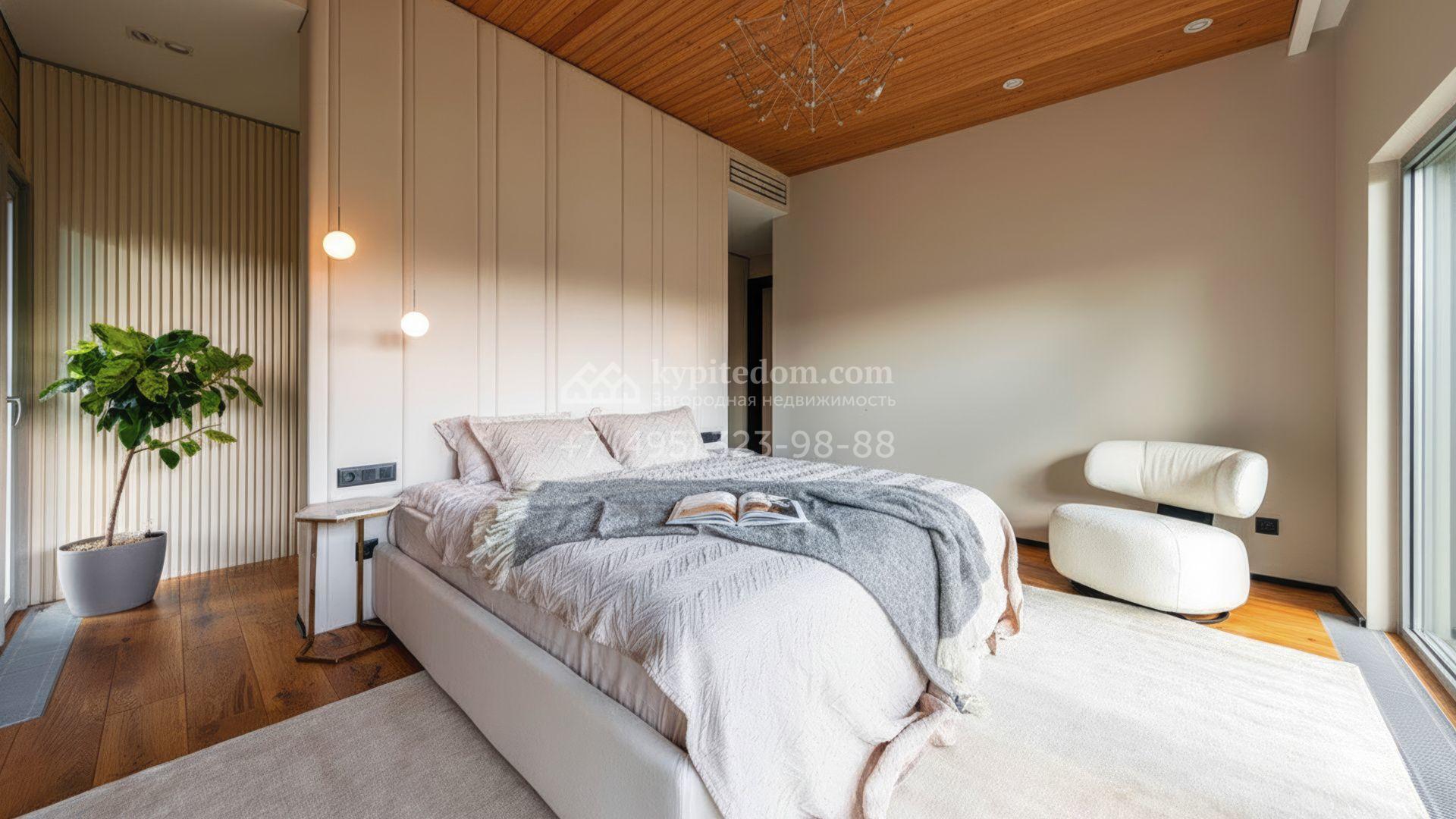 2-й уровень: спалья с санузлом, гардеробной и выходом на террасу, 2 спальни с санузлами, гардеробная, балкон.