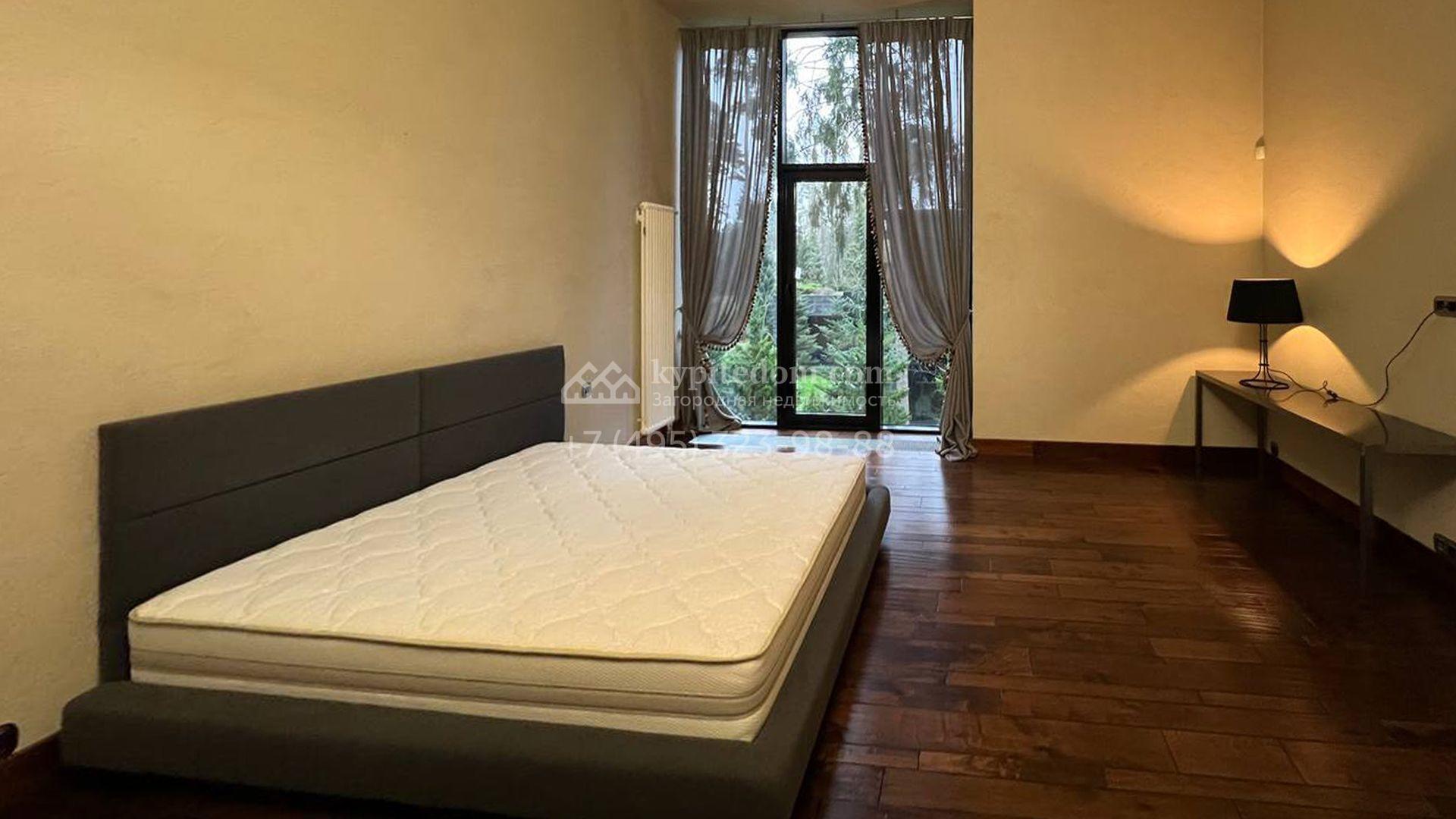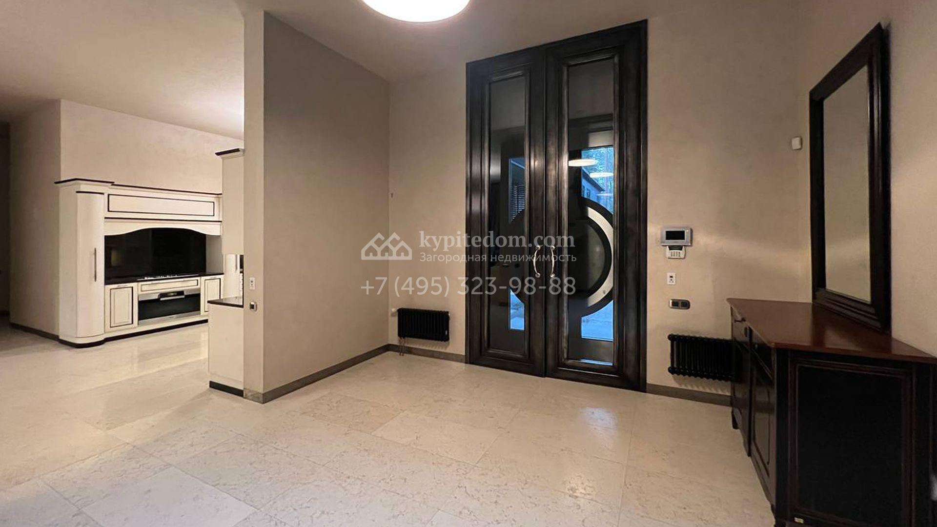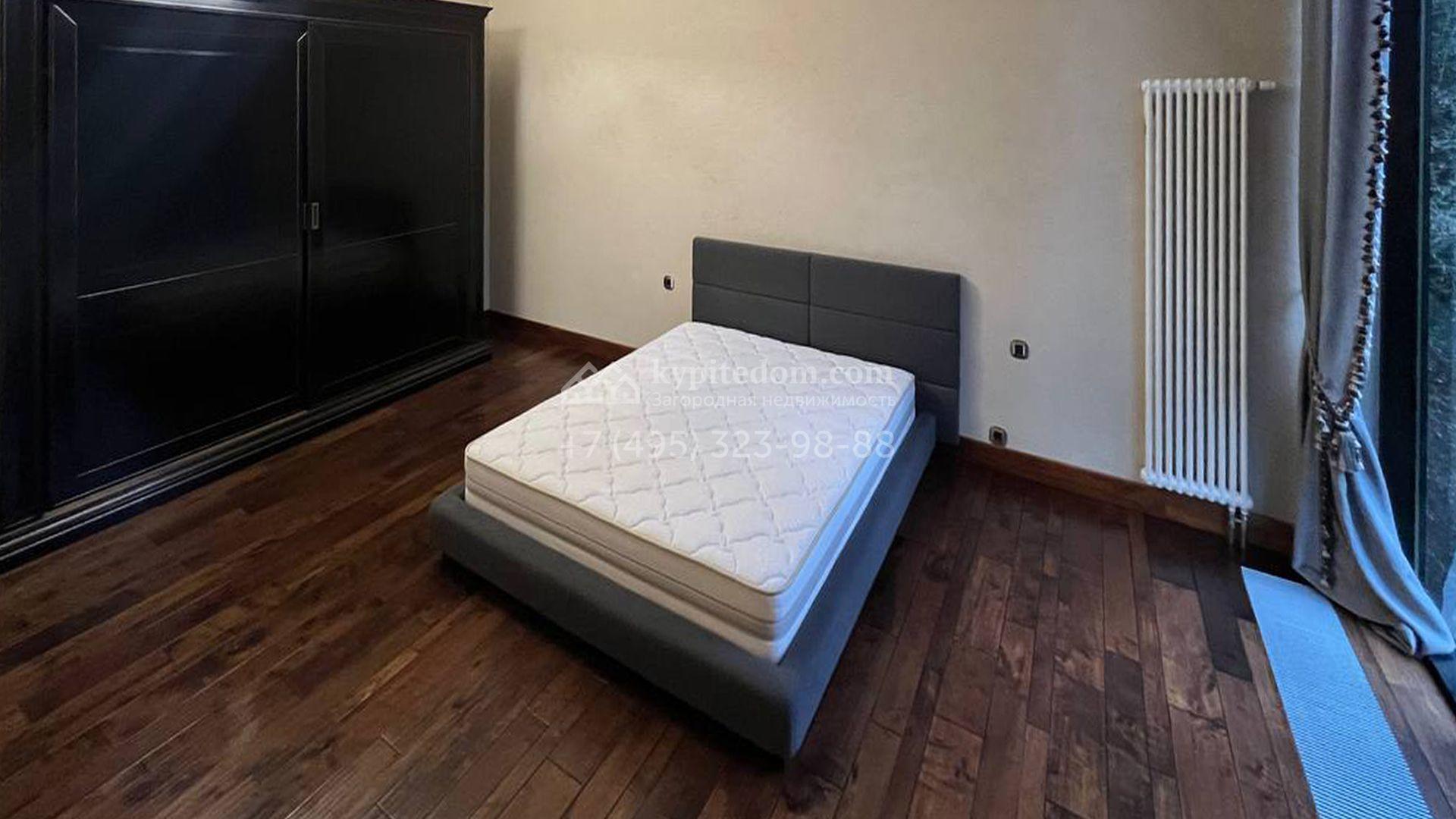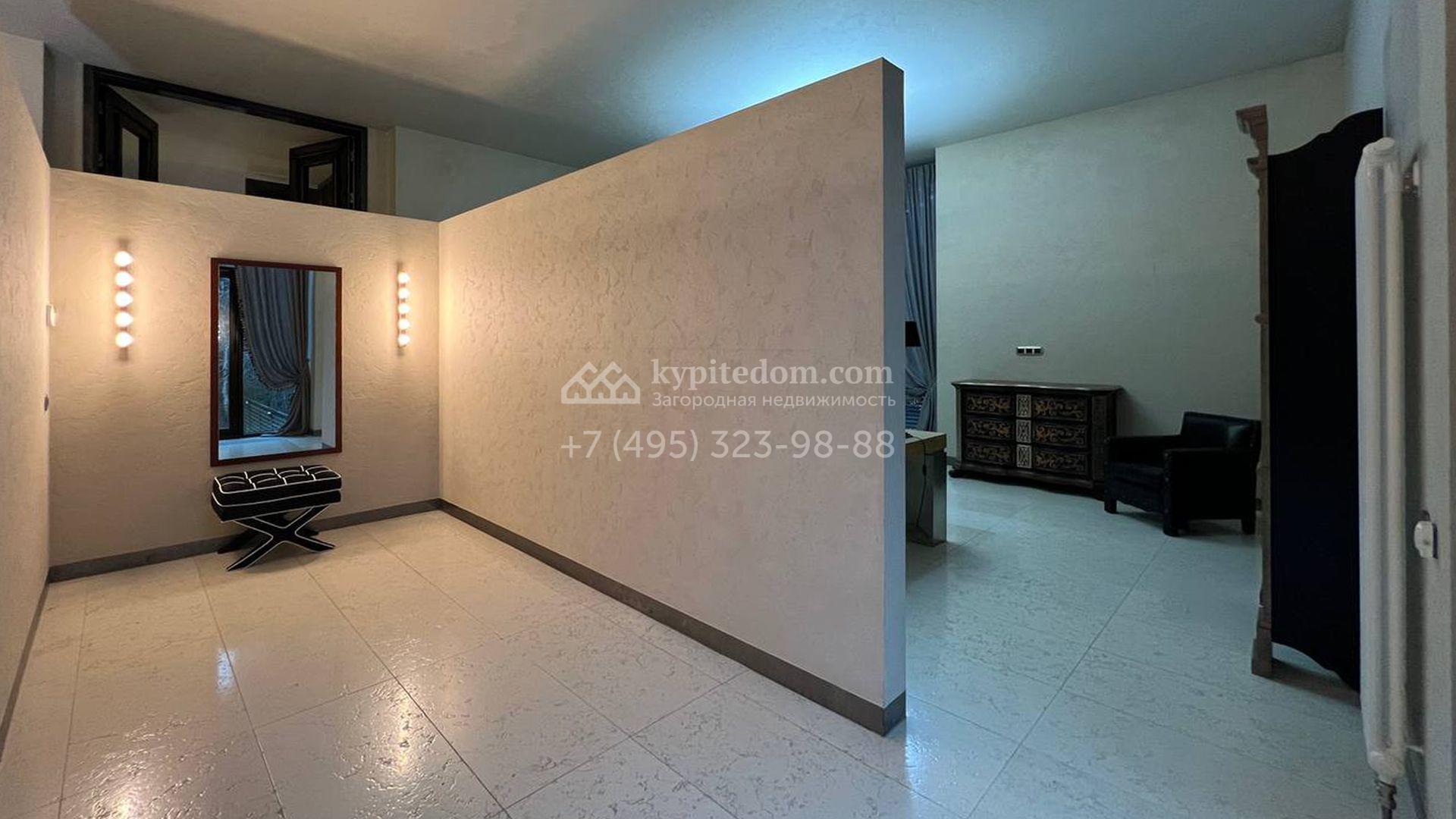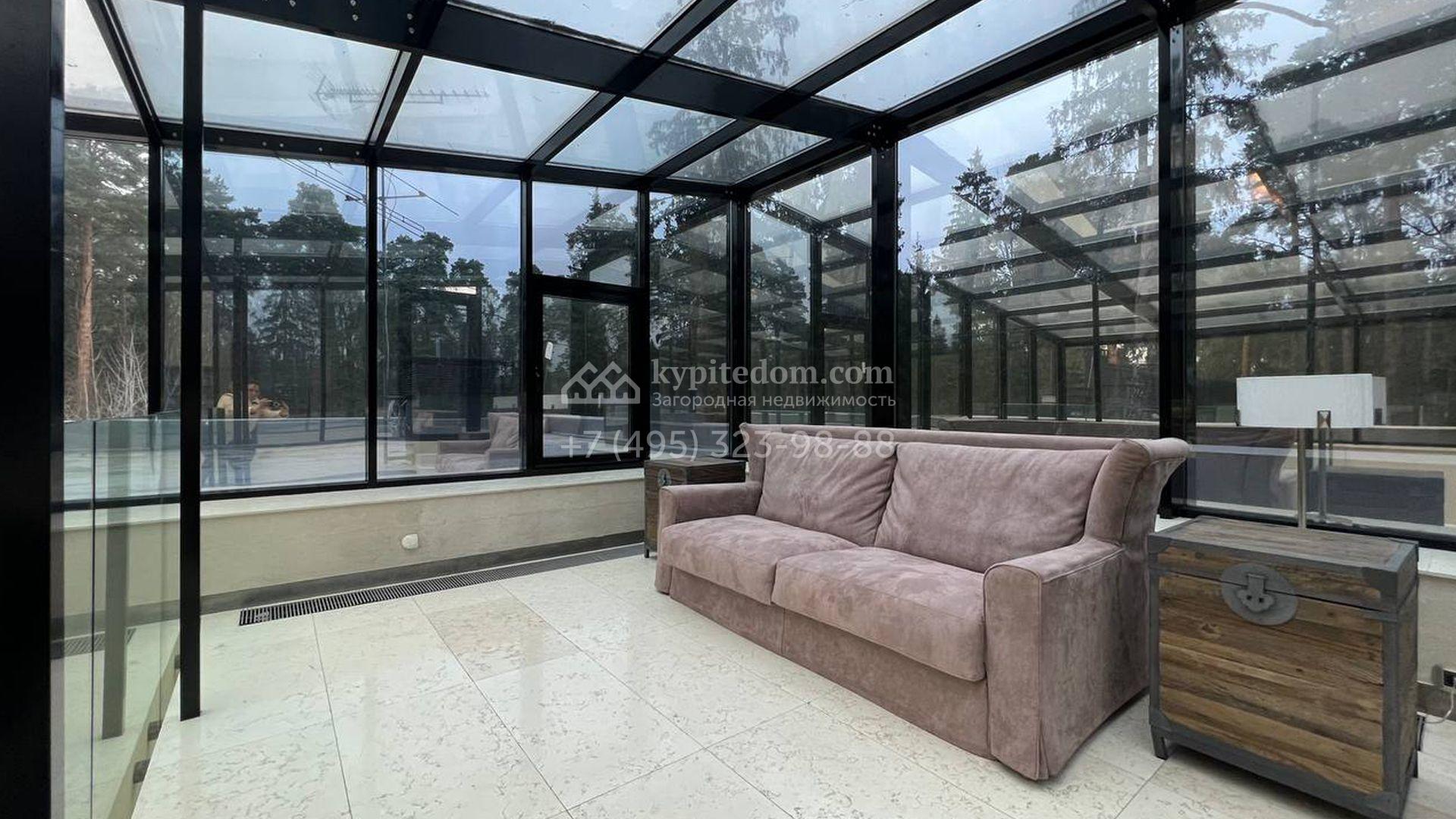Загородный дом площадью 600 м² построен на просторном участке 25 соток с лесными деревьями. Фасад здания с большими окнами выполнен в современном стиле и облицован под темно-серый камень. В отделке лаконичного интерьера преобладают кремово-молочные оттенки в сочетании с темными контрастирующими элементами. Планировкой резиденции предусмотрены 4 спальни, гостиная с камином, кухня-столовая с выходом на террасу и SPA-зона с бассейном и сауной. На третьем уровне разместили лаунж-зону, из которой можно попасть на эксплуатируемую кровлю. Рядом расположены дом для персонала с гаражом на 2 машины и зона барбекю. На участке засеян газон, вымощены дорожки и установлено уличное освещение.