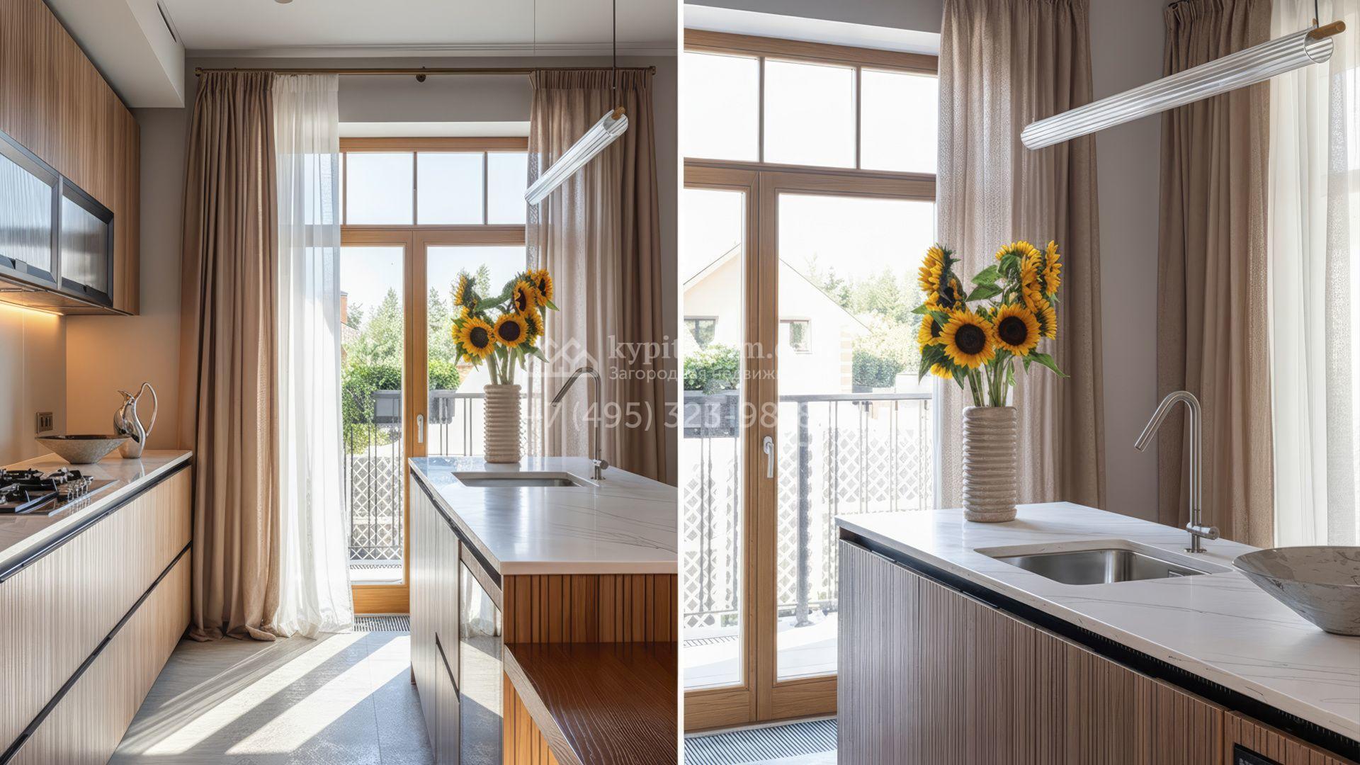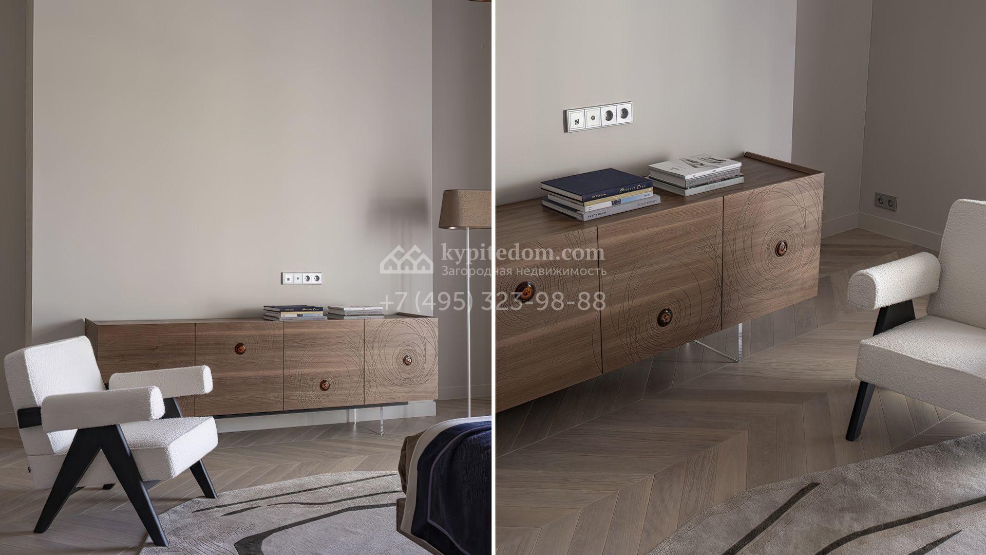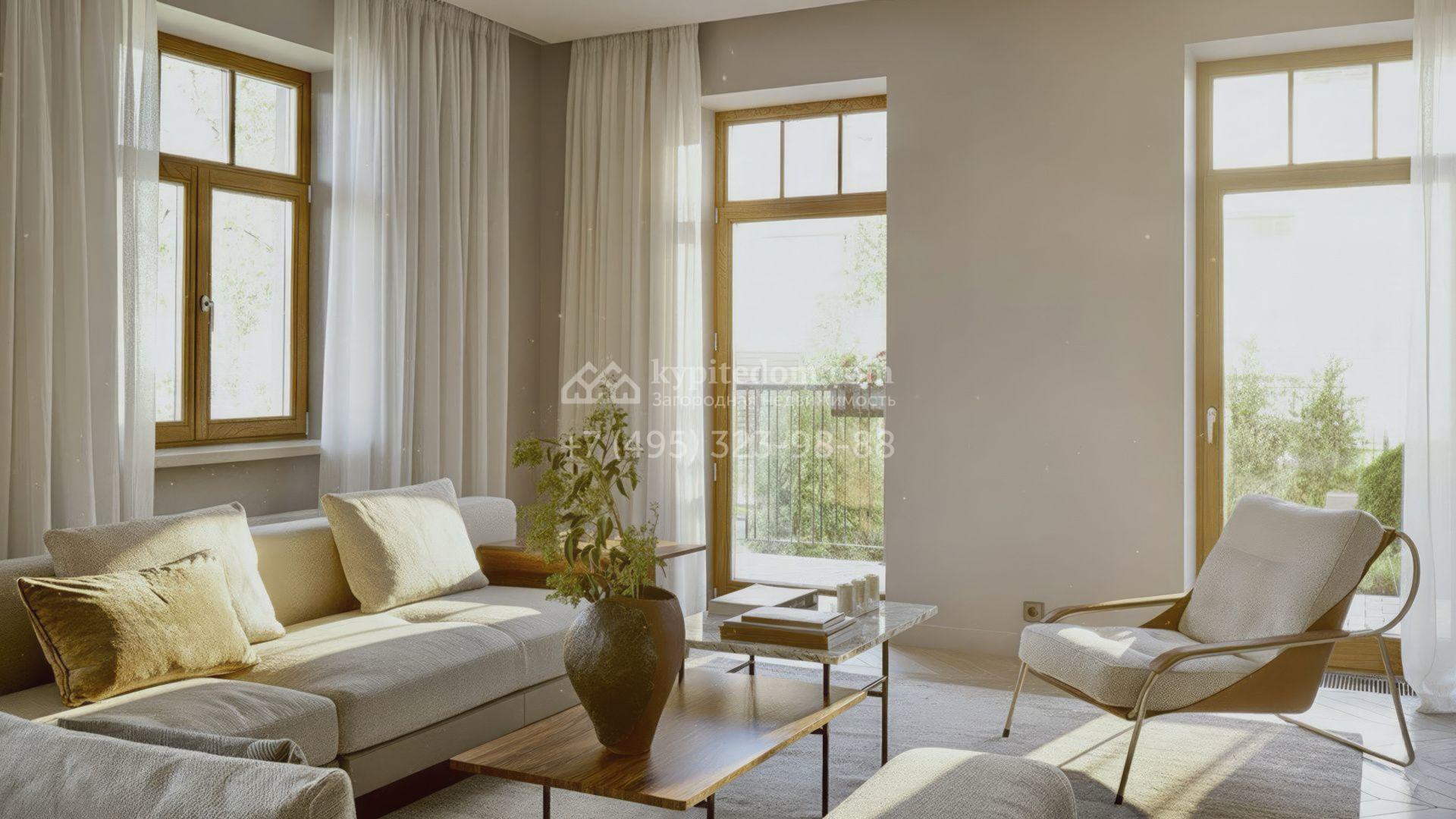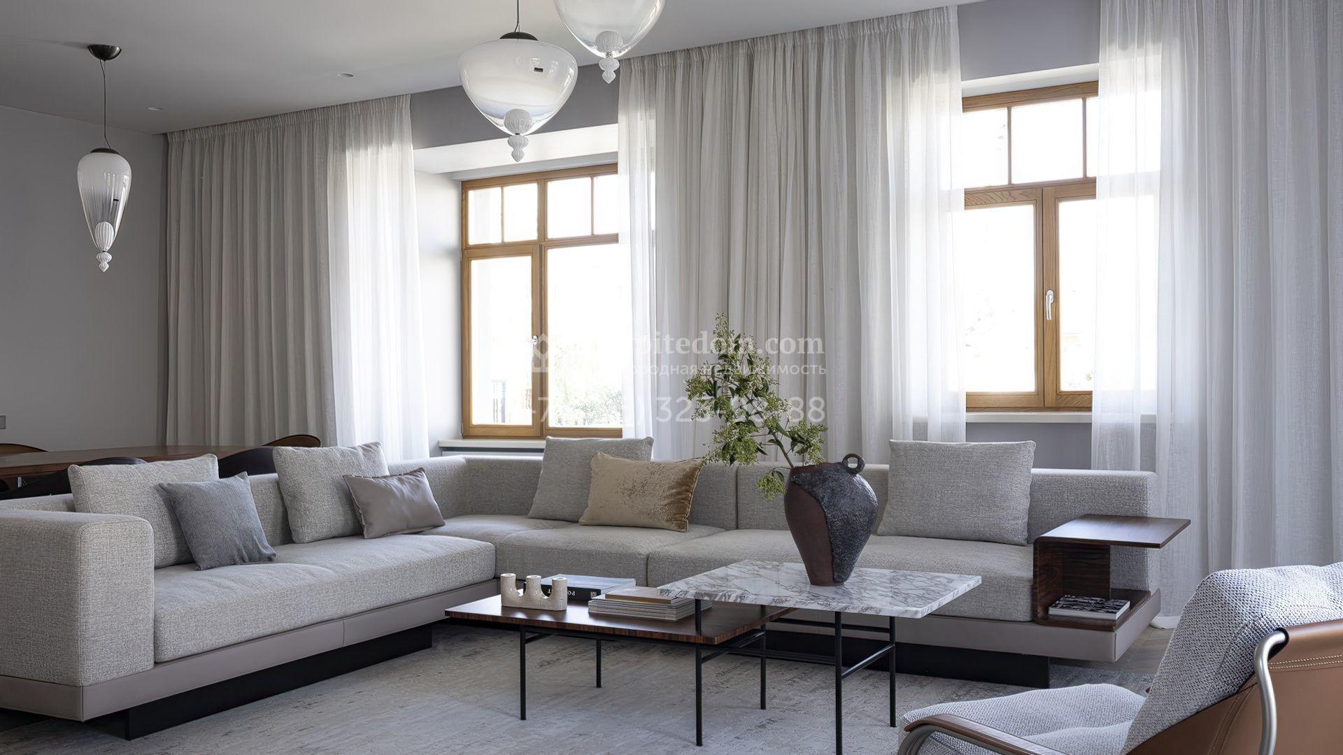 Новый загородный дом площадью 472 м² расположен на полевом участке 8 соток. Архитектура дома подчеркнута панорамным остеклением в пол, благодаря которому внутреннее пространство наполнено воздухом и солнечными лучами. Современные дизайнерские интерьеры оформлены в светлых нейтральных тонах и дополнены стильной мебелью, встроенной бытовой техникой и качественной сантехникой. Климатический комфорт обеспечивает система кондиционирования.