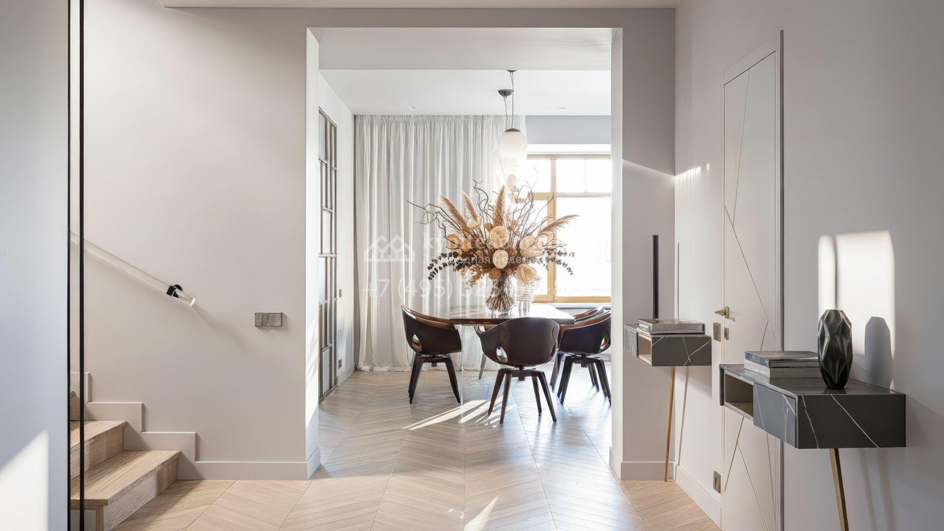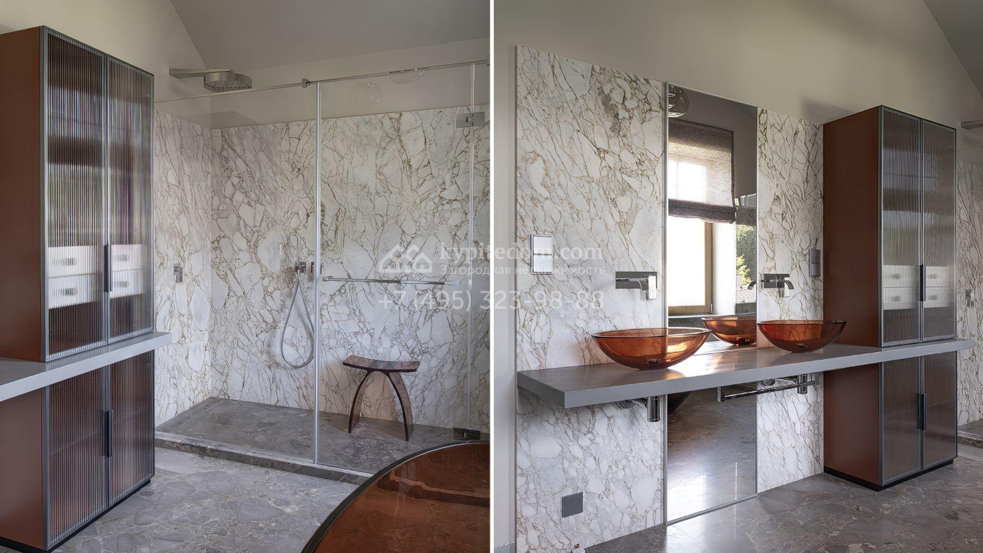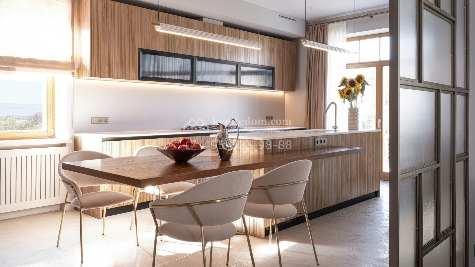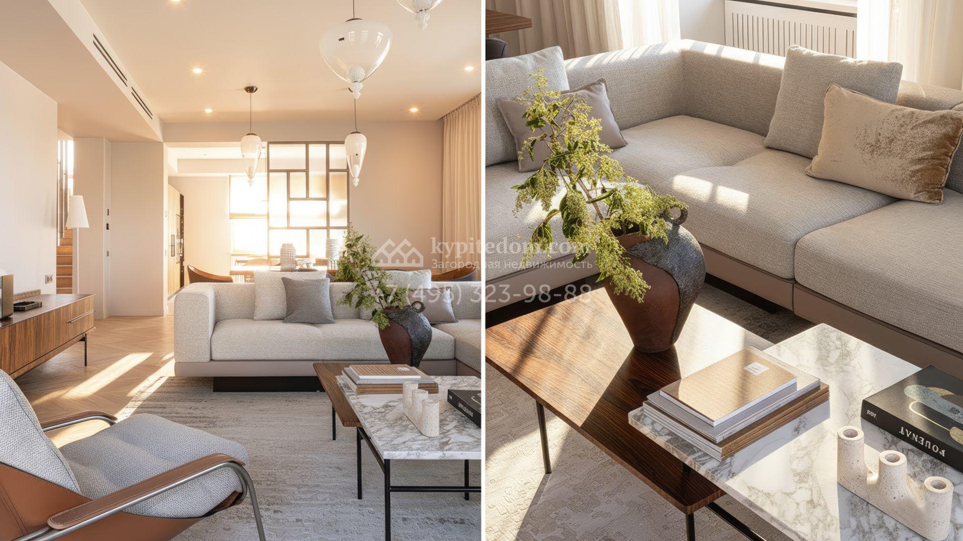 Новый загородный дом площадью 472 м² расположен на полевом участке 8 соток. Архитектура дома подчеркнута панорамным остеклением в пол, благодаря которому внутреннее пространство наполнено воздухом и солнечными лучами. Современные дизайнерские интерьеры оформлены в светлых нейтральных тонах и дополнены стильной мебелью, встроенной бытовой техникой и качественной сантехникой. Климатический комфорт обеспечивает система кондиционирования.