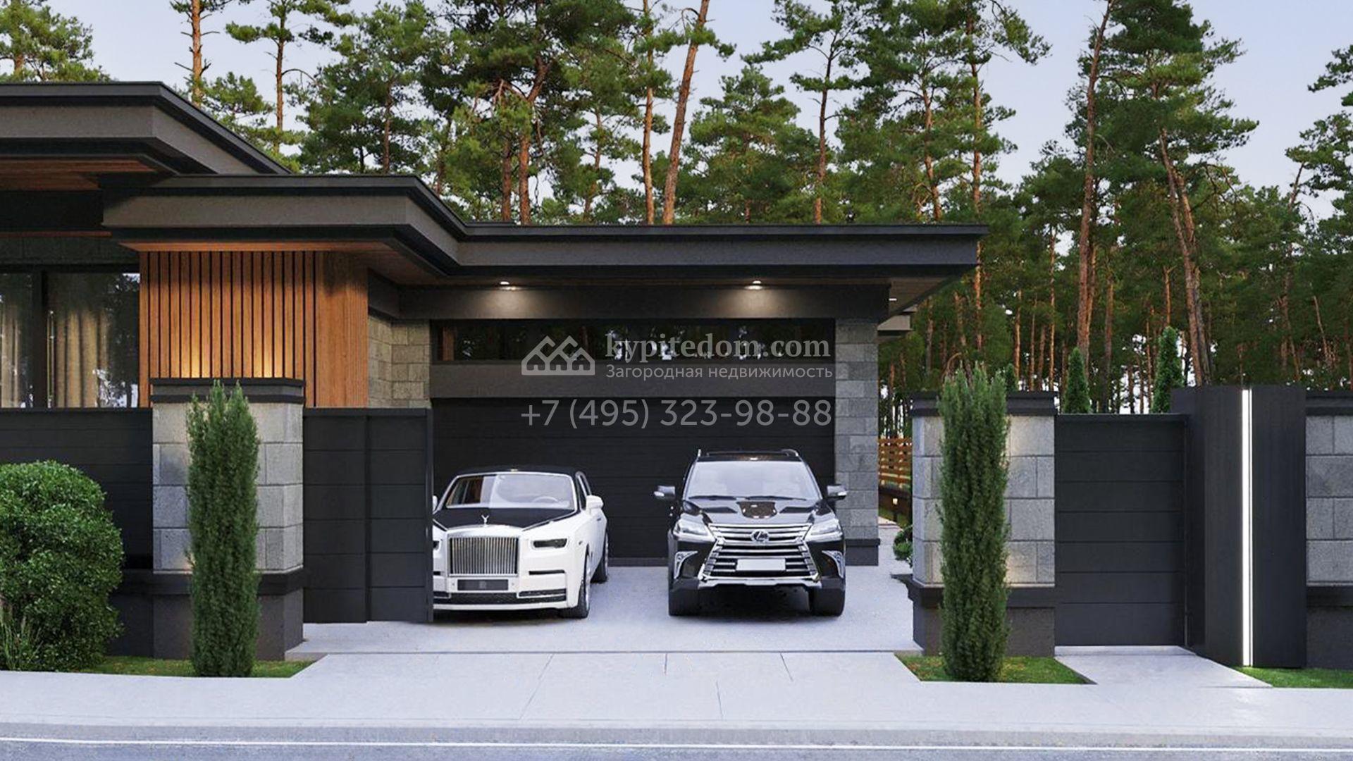 Загородный коттедж площадью 450 м² расположен на живописном лесном участке 12 соток. Современный фасад с разноуровневой плоской крышей облицован итальянским керамогранитом и панелями Millboard с благородной фактурой дерева. Стильная подсветка эффектно подчёркивает чёткие линии здания, а алюминиевые панорамные окна Reynaers наполняют интерьеры солнечным светом.