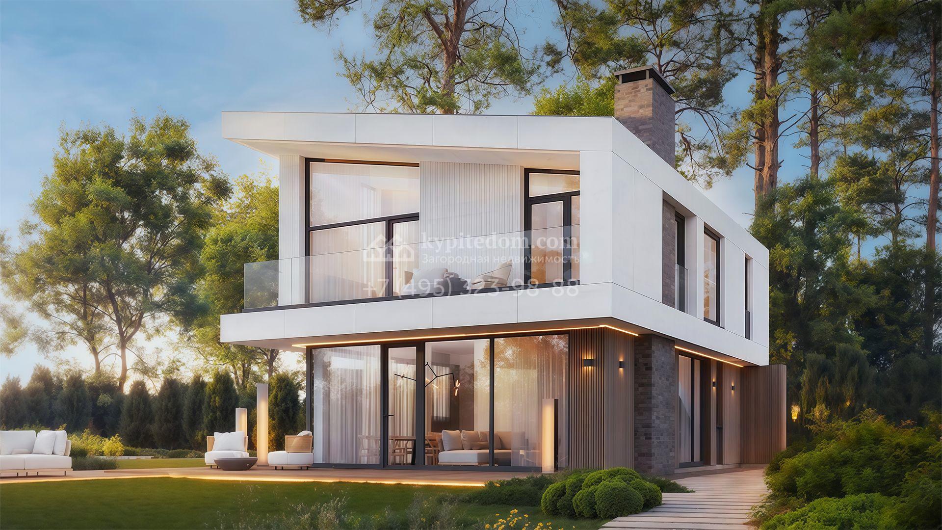 Загородный дом по проекту «Спейд» площадью 207 м² построен на участке 6,7 соток. Двухэтажный фасад здания с панорамными окнами облицован белоснежным камнем и дополнен панелями с фактурой дерева. Интерьер без отделки позволяет реализовать индивидуальный дизайн-проект. Планировка коттеджа включает 3 спальни, включая мастер-спальню с вместительной гардеробной, кухню-гостиную и уютную террасу. На участке выполнен ландшафтный дизайн, вымощены дорожки и засеян газон.