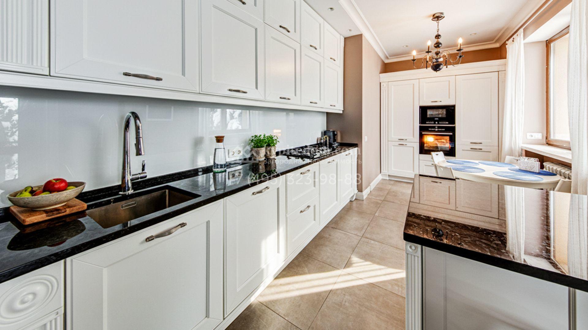 Загородный коттедж площадью 320 м² расположен на живописном участке 40 соток с собственным выходом в лес. Современный фасад необычной формы облицован штукатуркой и дополнен подсветкой. Светлые интерьеры выдержаны в спокойных тонах, а также укомплектованы итальянской мебелью и встроенной бытовой техникой.