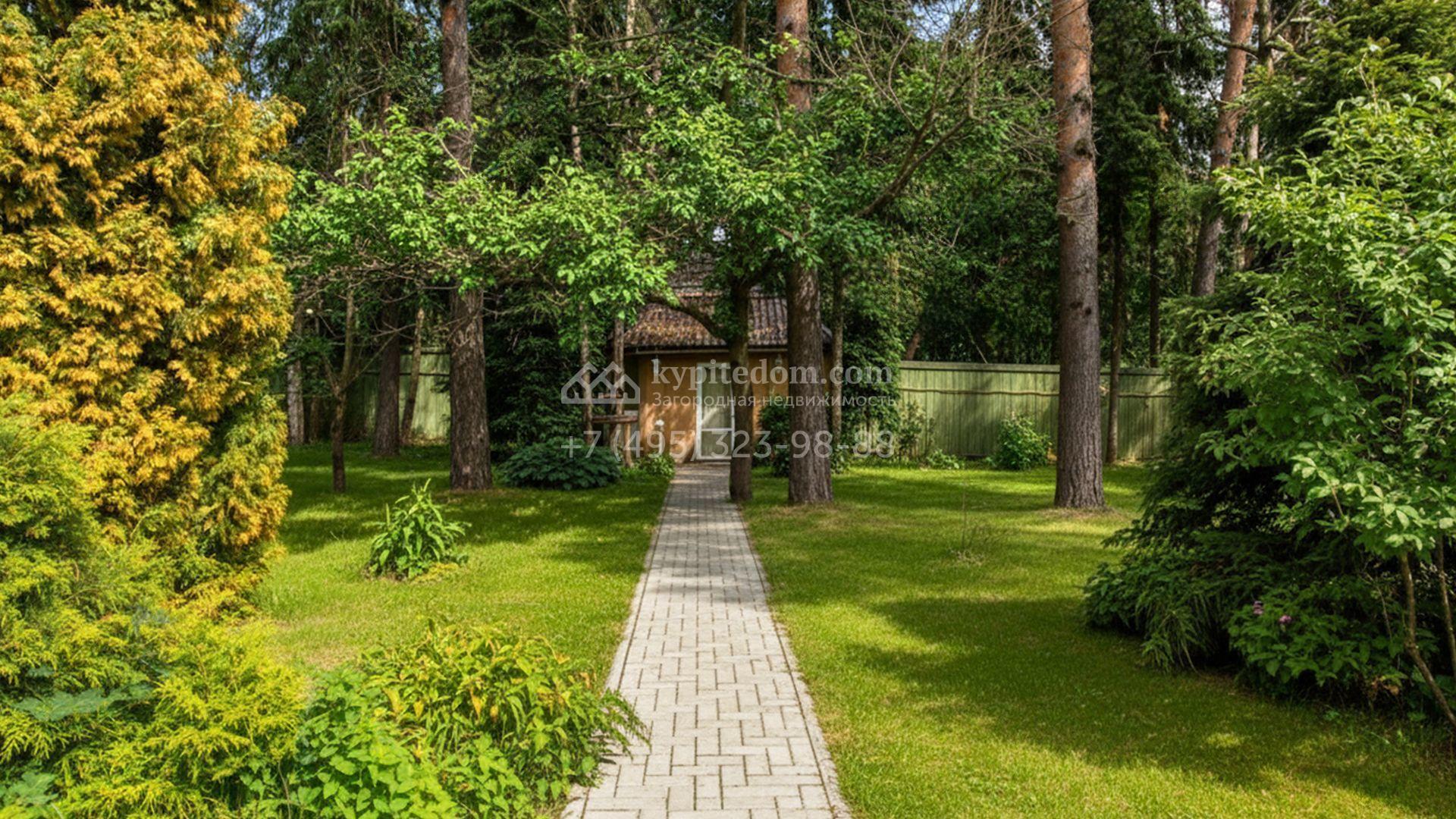 Планировка включает уютную гостиную с камином, кухню с выходом на просторную террасу, три спальни, приватный кабинет, сауну и комнату отдыха. Дополнительный комфорт обеспечивает отдельный гараж, рассчитанный на две машины. Кроме того, на территории построена беседка для барбекю, где будет приятно провести вечер с близкими. На участке вдохните запах свежескошенной травы, прогуливаясь по мощёным дорожкам в тени высоких хвойных деревьев, и любуйтесь декоративными кустарниками.