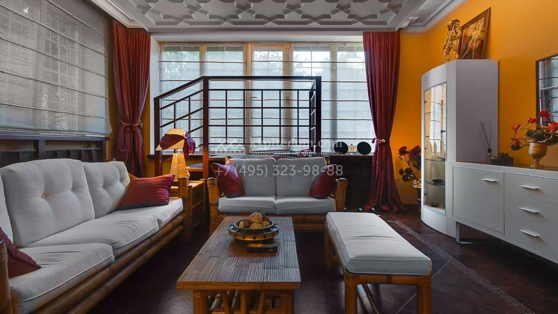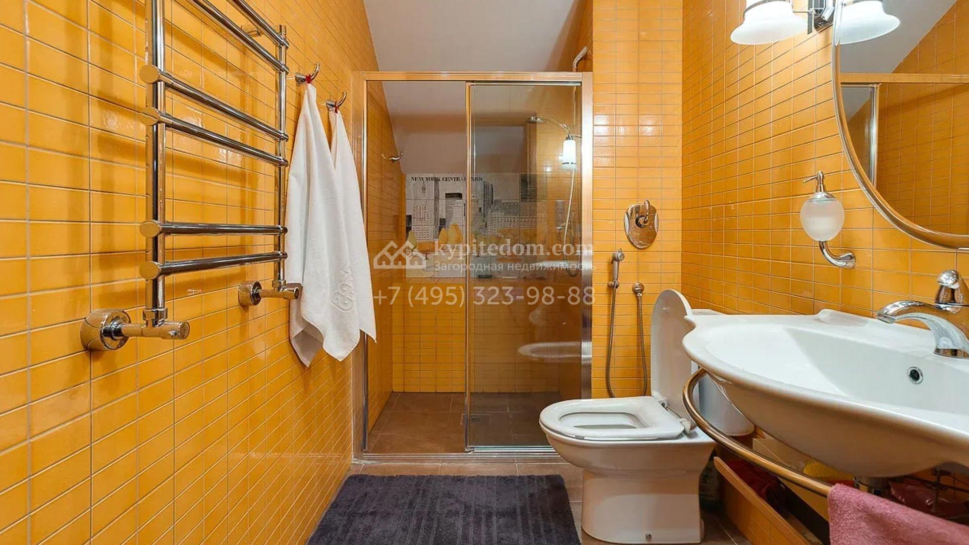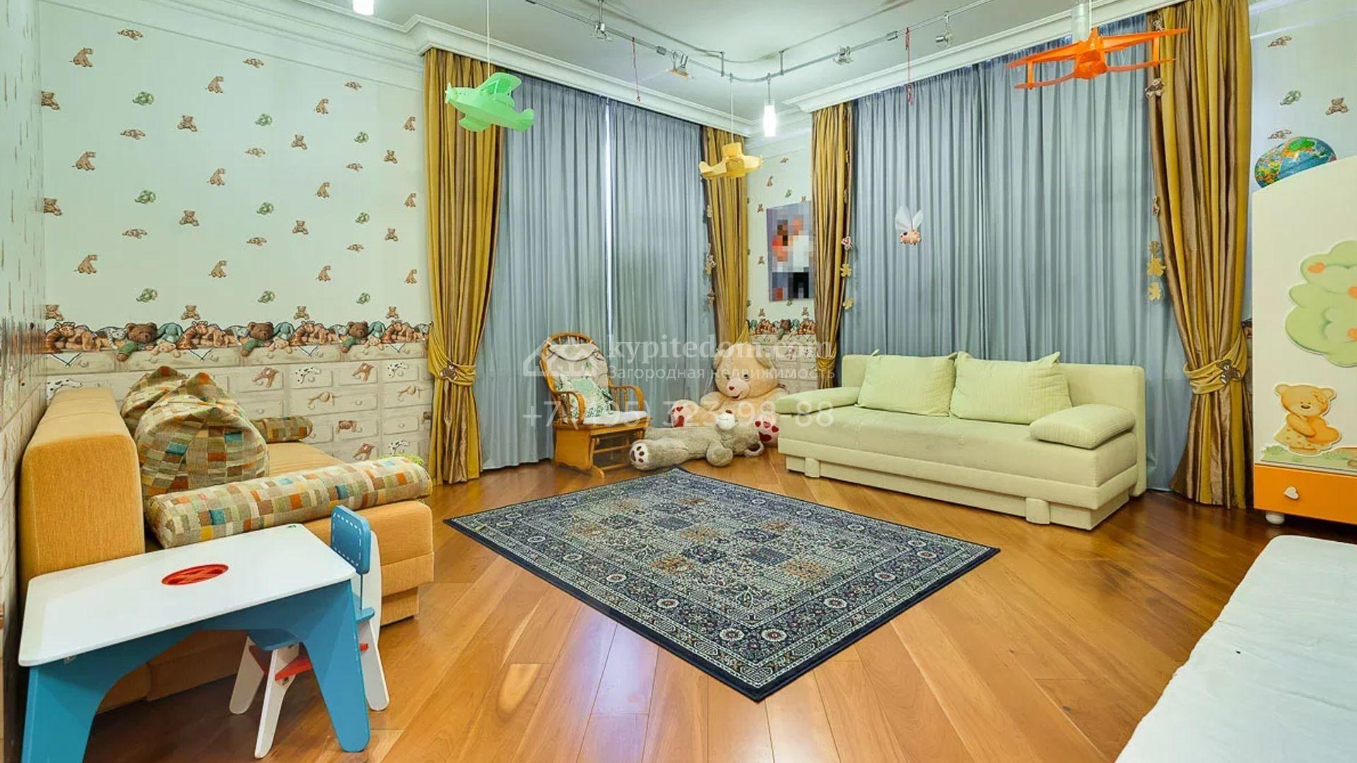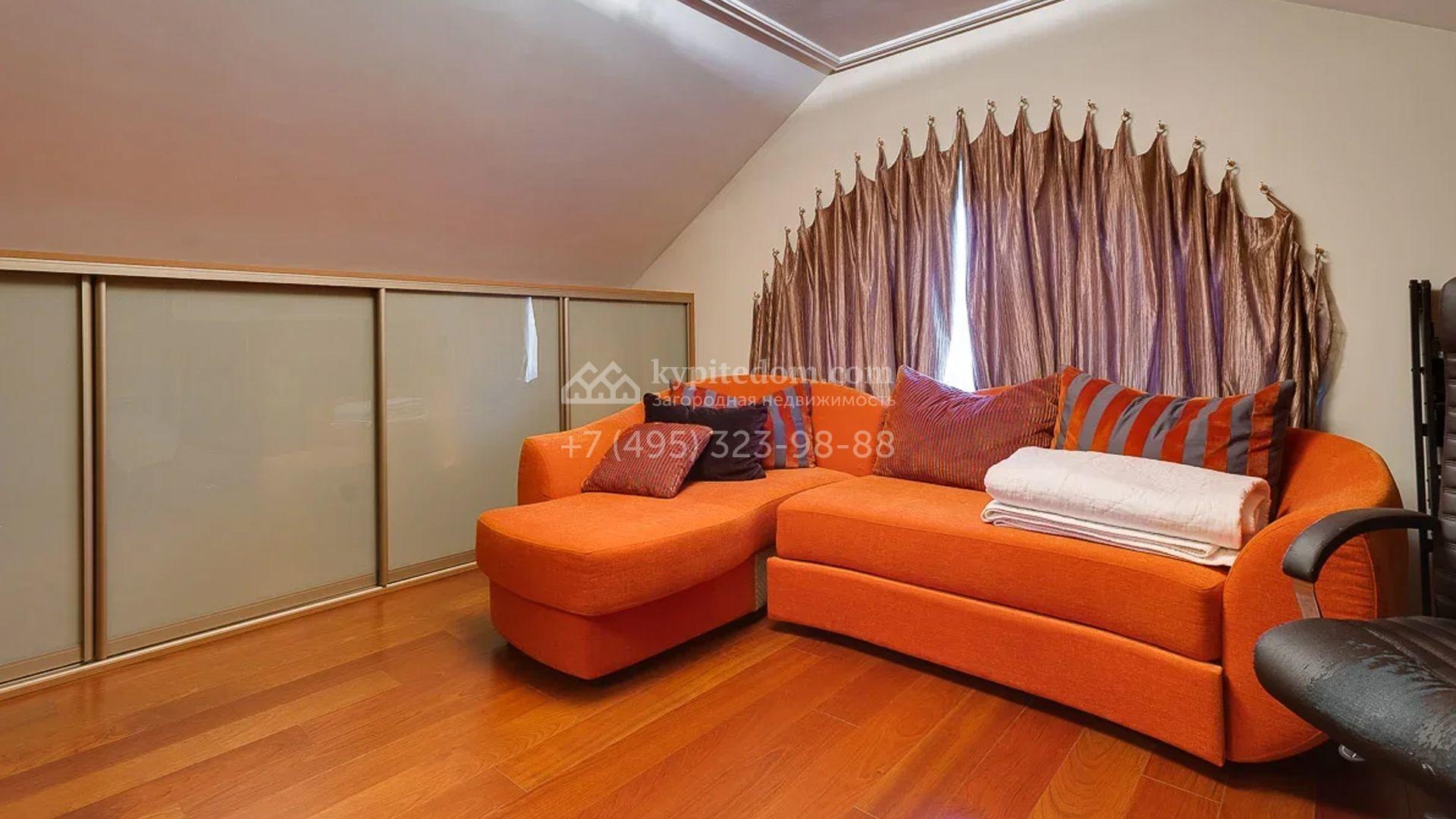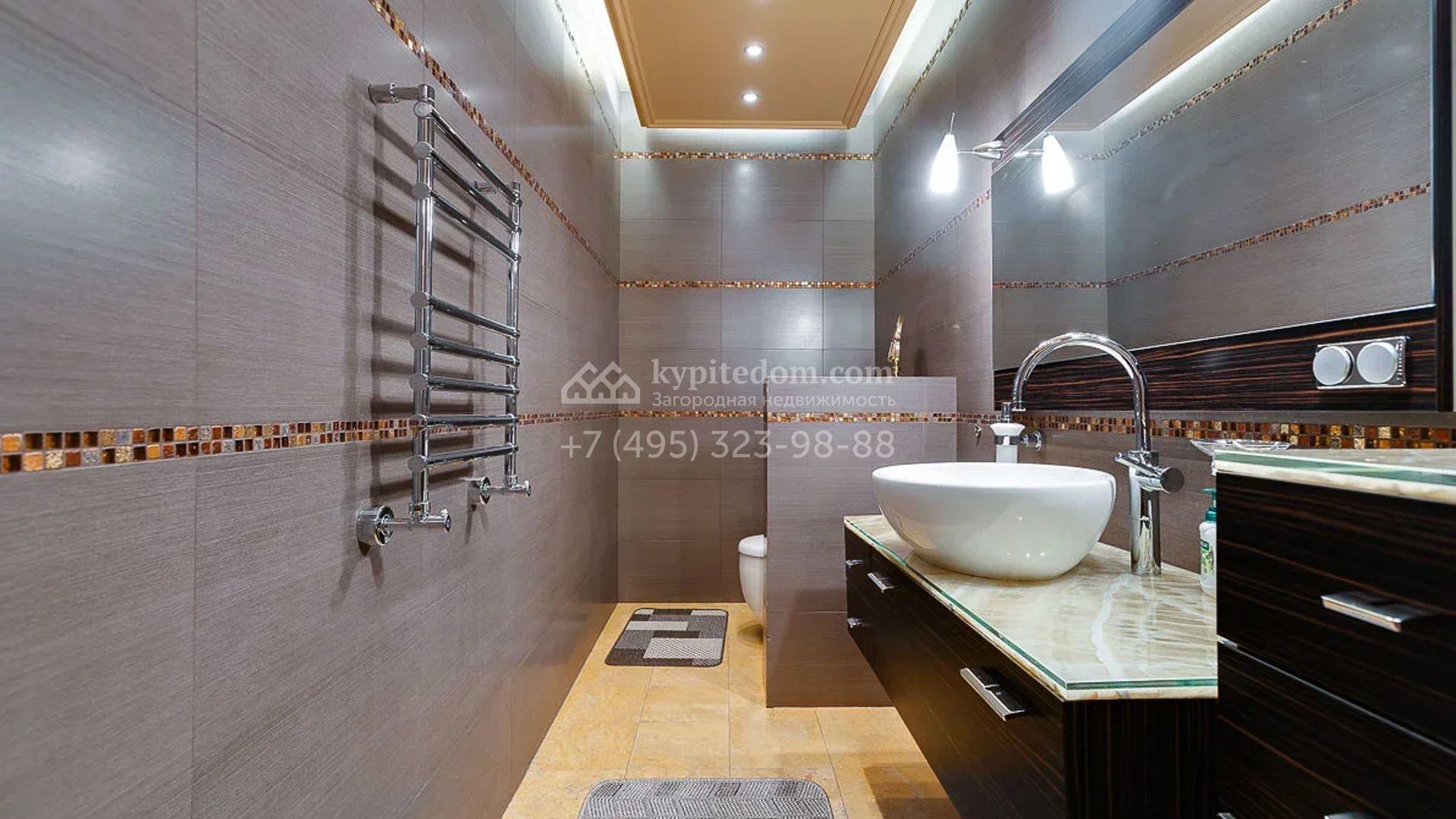 Внутренние пространства оформлены в спокойной палитре: в отделке использованы натуральный камень, ценные породы дерева, фактурные ткани и коллекционная мебель. В гостиной установлен камин из природного камня, создающий выразительный акцент в общем ансамбле. Планировка включает четыре спальни с собственными санузлами и гардеробными, кинозал и бассейн.