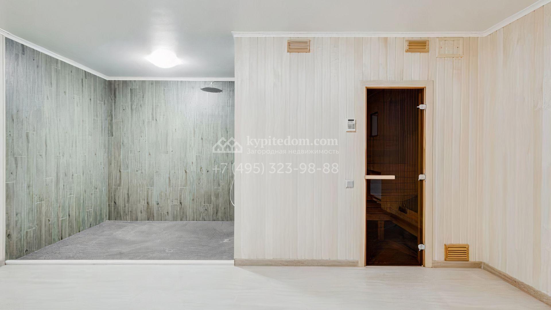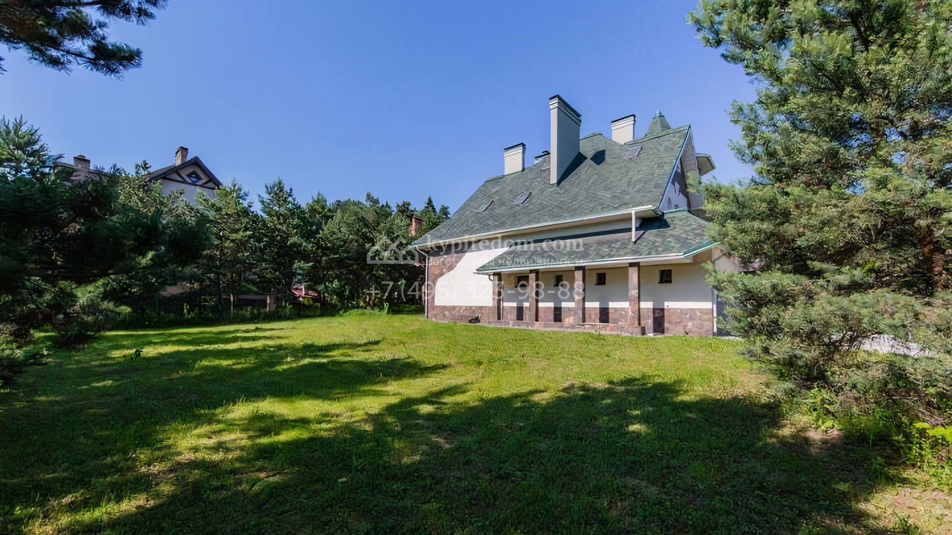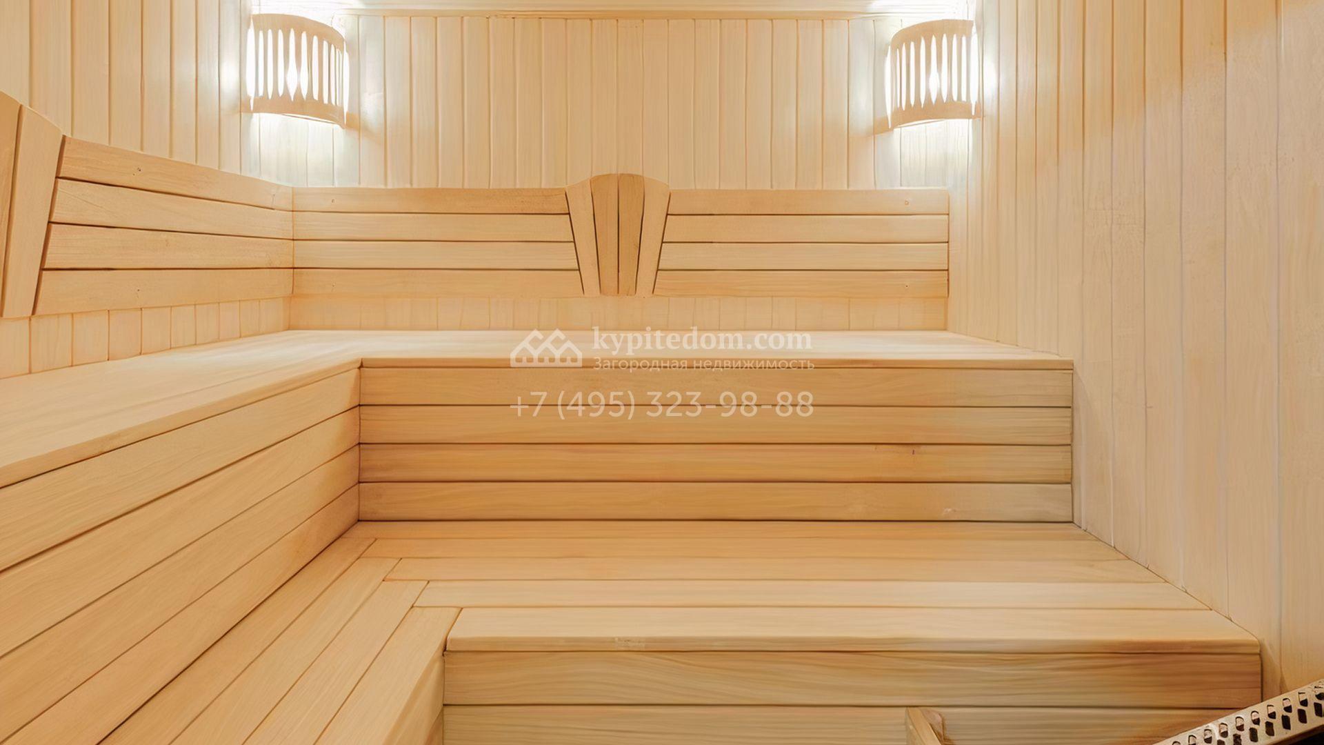 Загородный дом площадью 500 м² расположен на прилесном участке 15 соток. Фасад в европейском стиле облицован бежевой штукатуркой и коричневой плиткой. Лаконичный интерьер оформлен в молочных оттенках. В коттедже разместили 4 спальни, гостиную с камином, кухню-столовую, сауну с душевой и террасу. Предусмотрен встроенный гараж на 2 машины. На участке можно выполнить ландшафтный дизайн, обустроить беседку и зону барбекю.