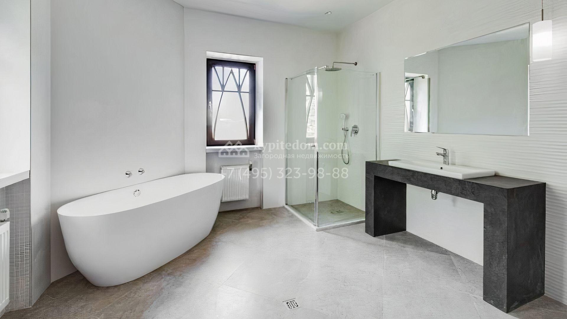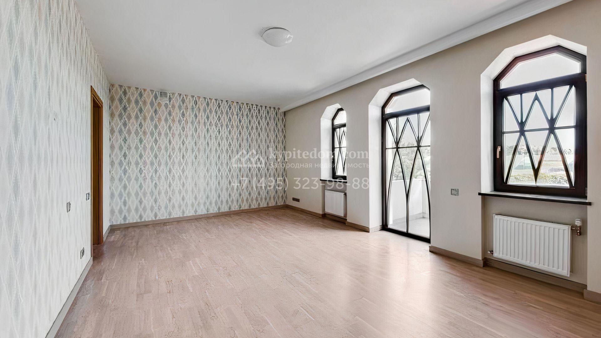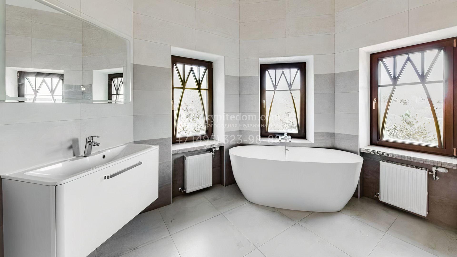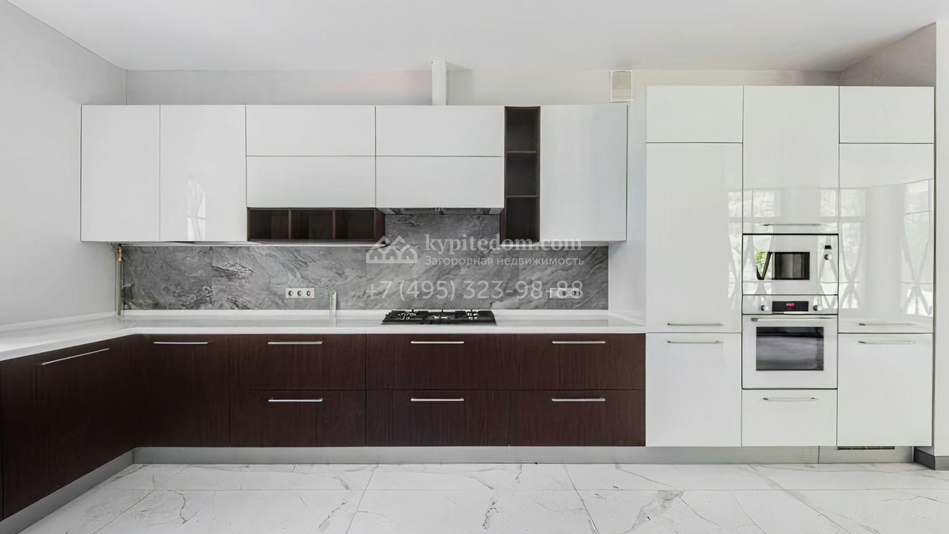 Загородный дом площадью 500 м² расположен на прилесном участке 15 соток. Фасад в европейском стиле облицован бежевой штукатуркой и коричневой плиткой. Лаконичный интерьер оформлен в молочных оттенках. В коттедже разместили 4 спальни, гостиную с камином, кухню-столовую, сауну с душевой и террасу. Предусмотрен встроенный гараж на 2 машины. На участке можно выполнить ландшафтный дизайн, обустроить беседку и зону барбекю.