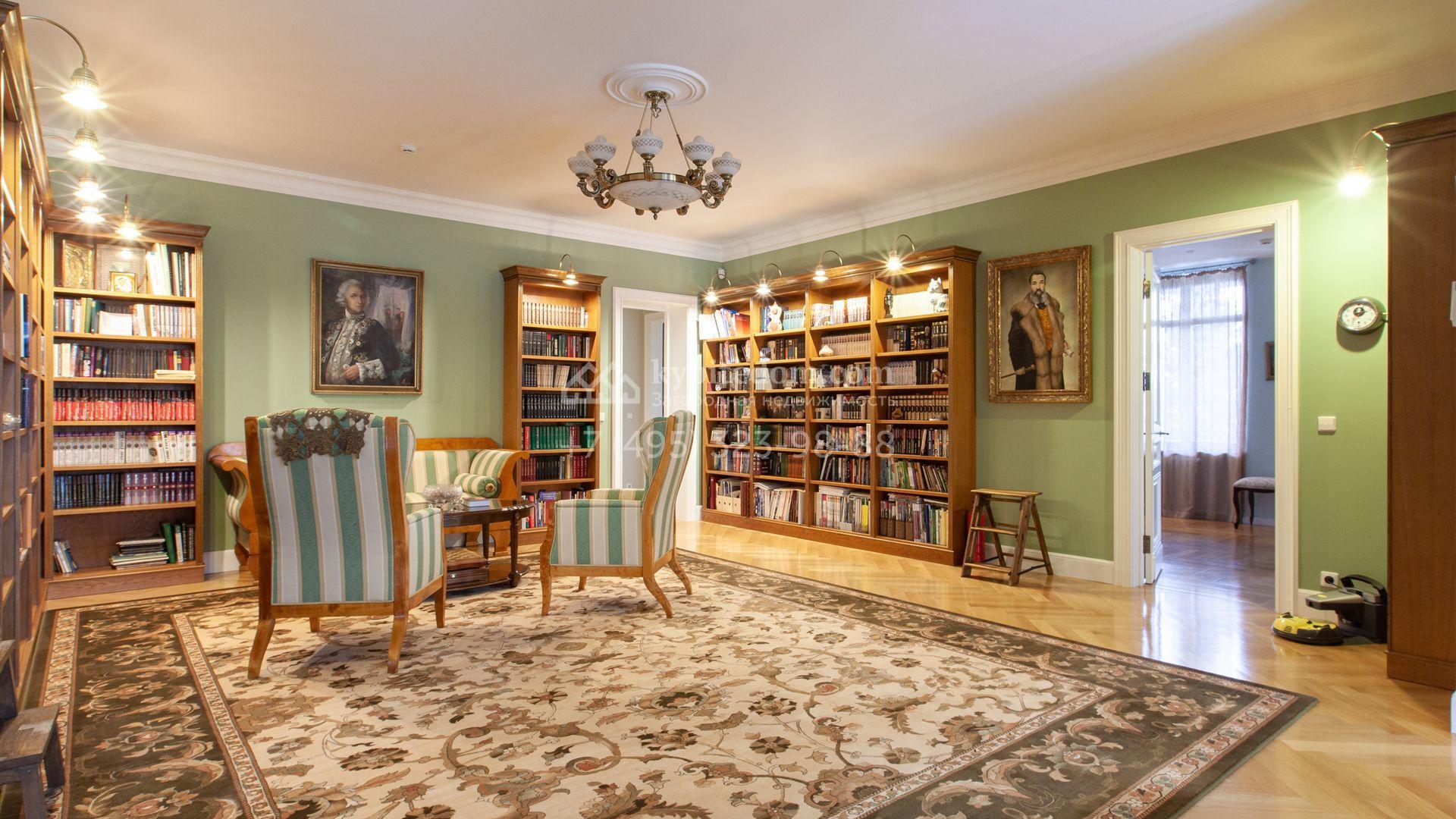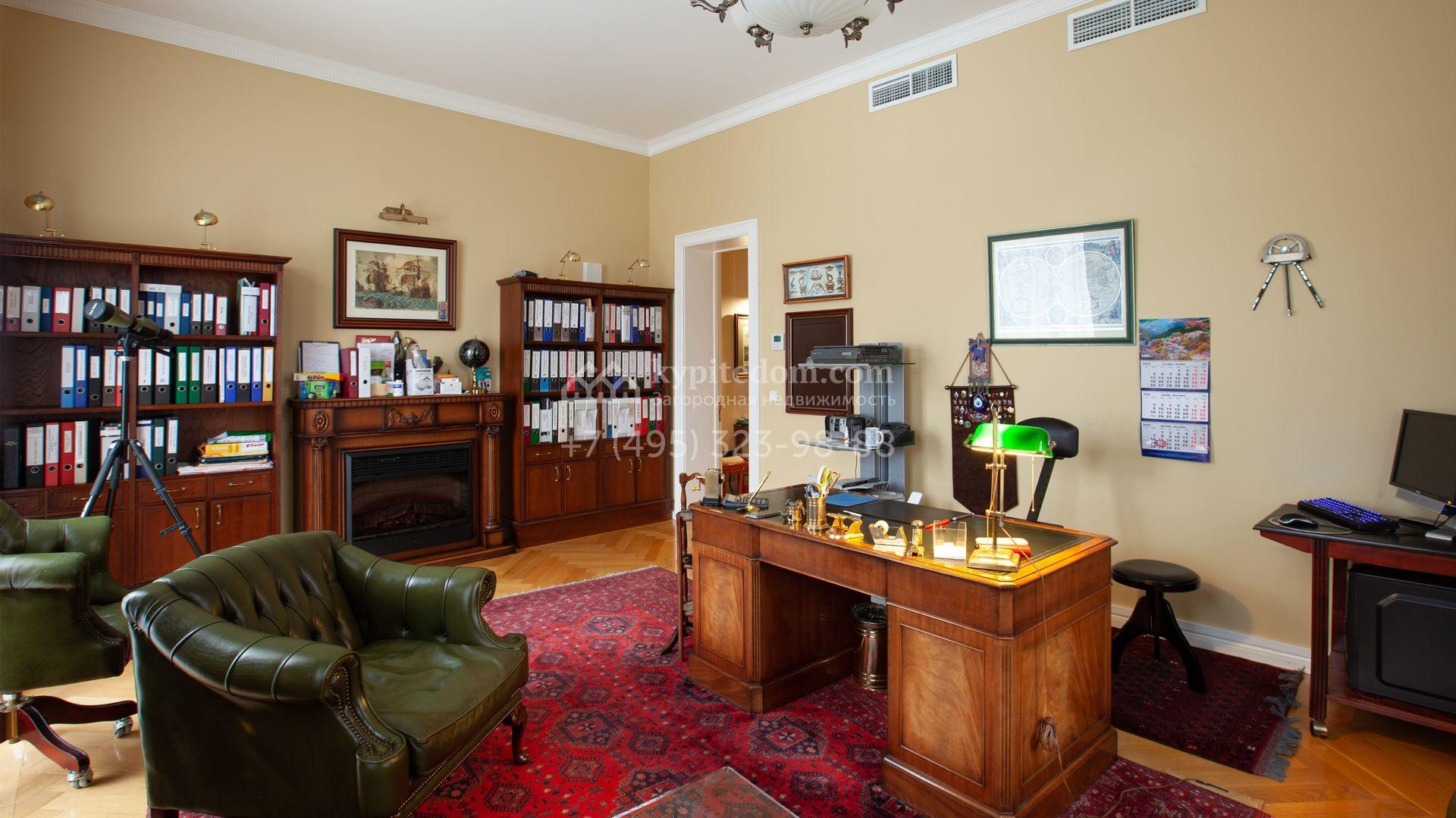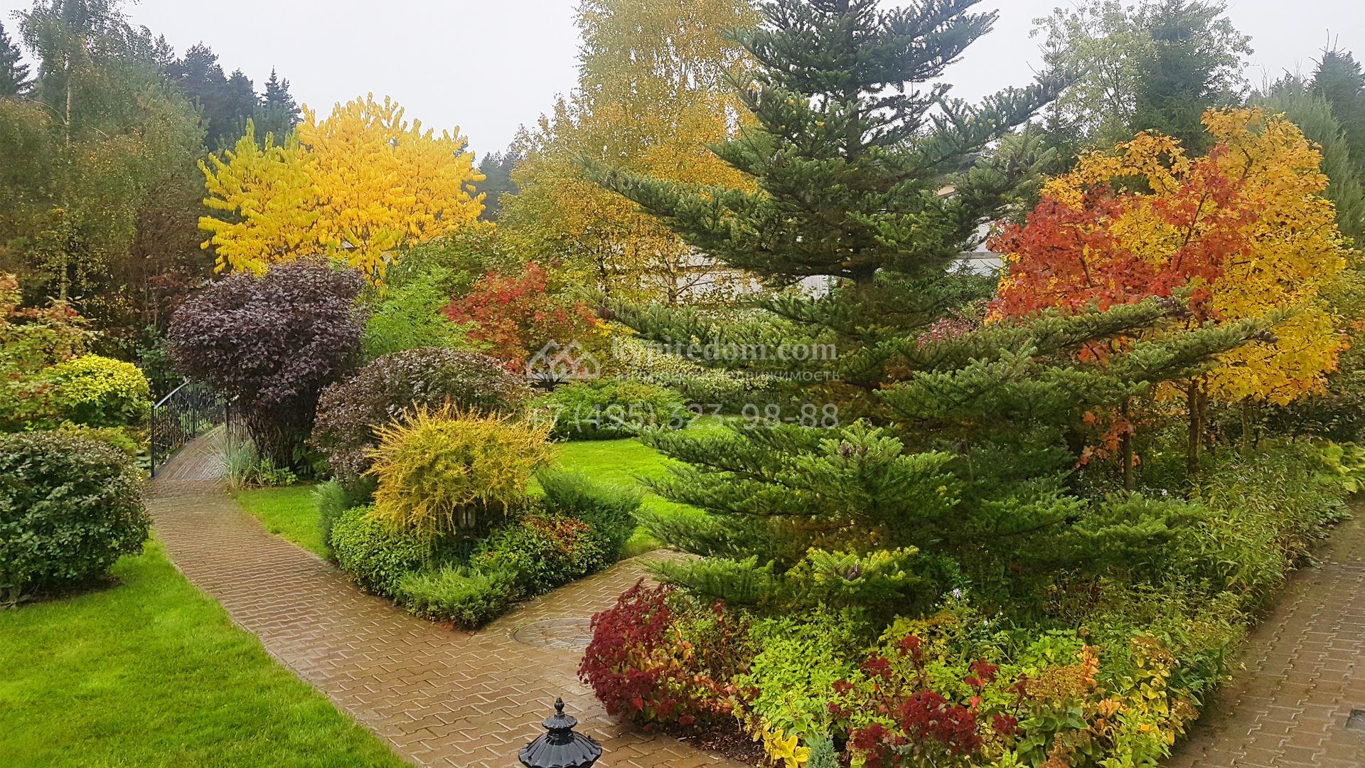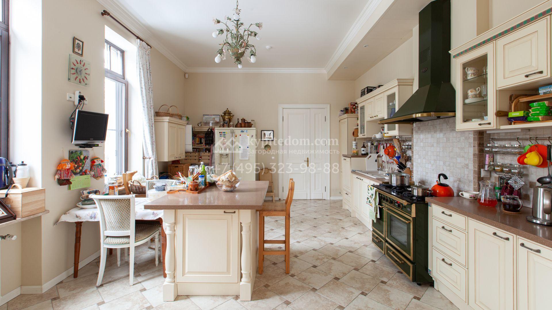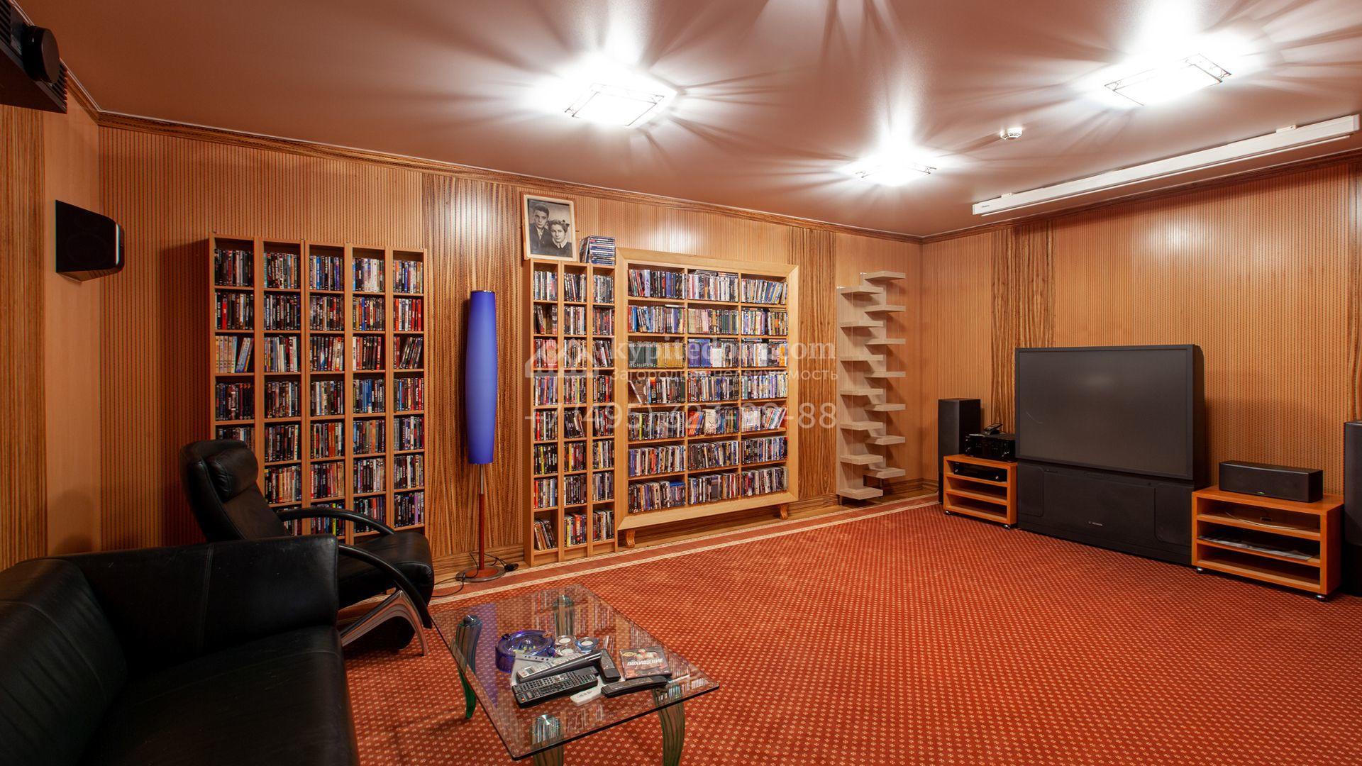 Загородный дом в неоклассическом стиле площадью 973 м² расположен на просторном участке с парковыми дорожками и гаражом. Фасад дома в приглушенных тонах отличается большими панорамными окнами и декоративными колоннами. Интерьер дома выполнен в стиле современной классики, все комнаты меблированы и наполнены техникой. На 4 уровнях спланировали 6 спален с гардеробными комнатами, финскую и турецкую бани, домашний кинотеатр, винный и продуктовый погреба, спортивный зал и оранжерею. В доме современная инженерная система, подключены функции «умный дом», лифт проходит через все этажи. На участке 25 соток выполнили ландшафтный дизайн — посадили ровный газон, декоративные кустарники и хвойные деревья, дорожки вымостили плиткой. Около главного дома разместили теплую беседку с каменной печью и встроенным мангалом, и дом для персонала 122 м² с гаражом для 2 машин.