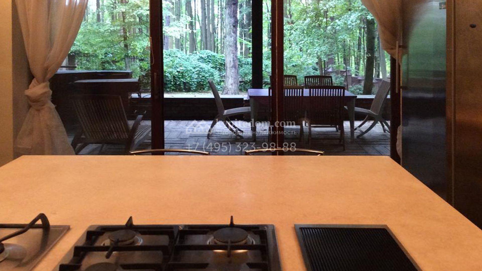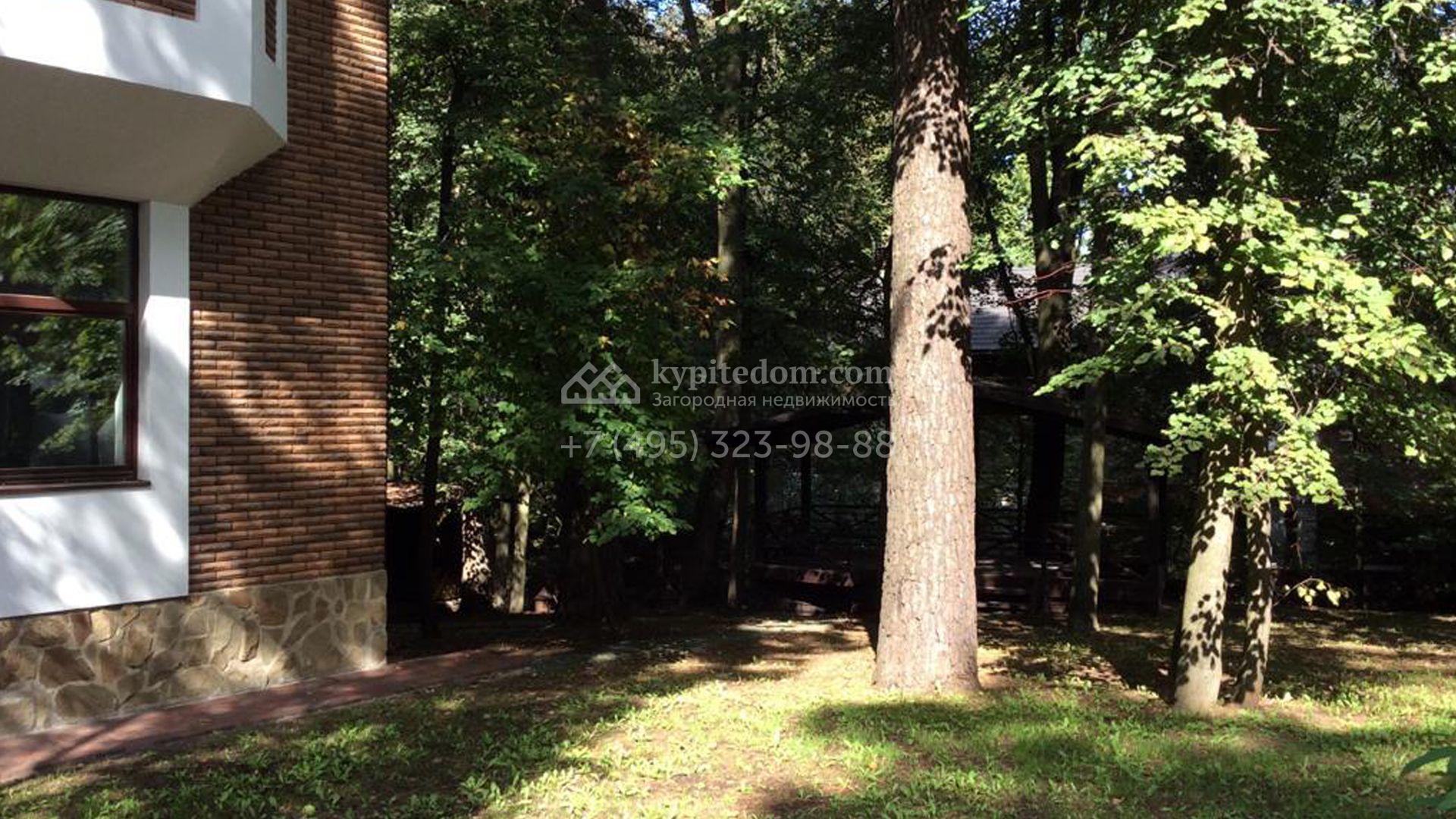 Загородная резиденция площадью 300 м² построена на просторном участке 25 соток с лесными деревьями. Фасад дома выполнен в европейском стиле и облицован коричневым клинкером и молочной штукатуркой. В отделке современного интерьера преобладают светлые теплые оттенки. Планировкой коттеджа предусмотрены 2 спальни, уютная гостиная с камином и кухня-столовая с выходом на террасу. Рядом расположен гараж на 1 машину с домиком для охраны. На участке выполнен ландшафтный дизайн, вымощены дорожки и засеян газон.