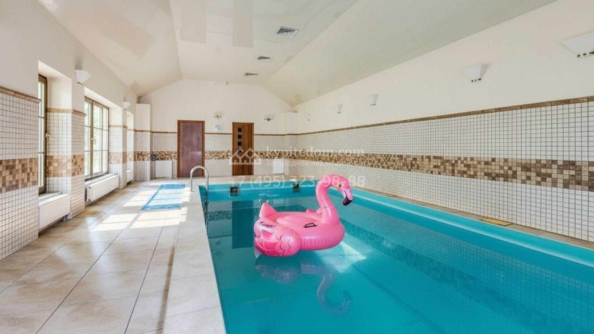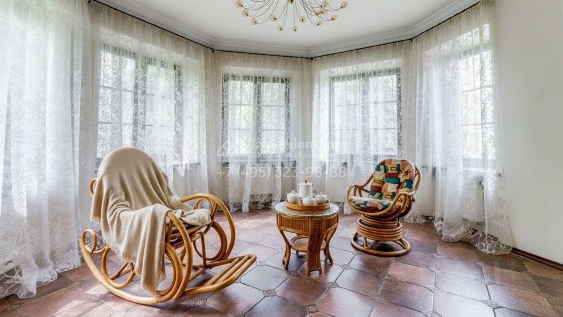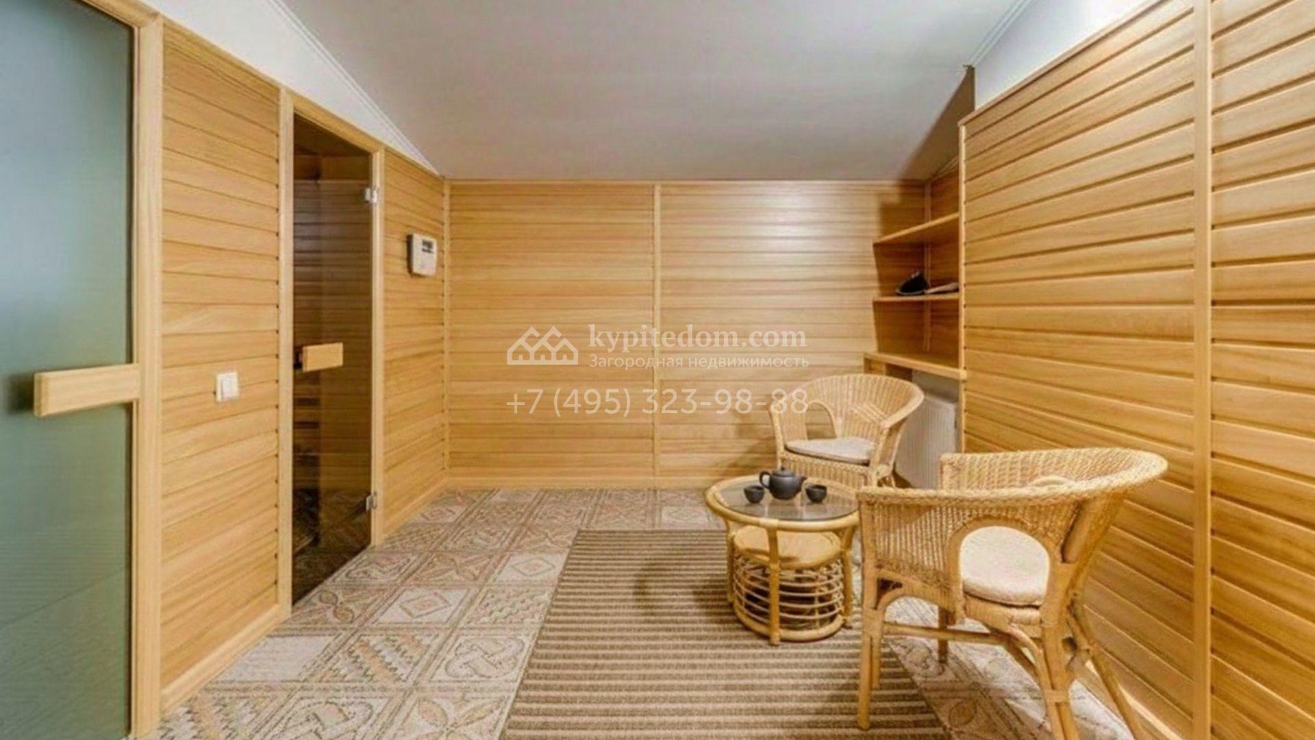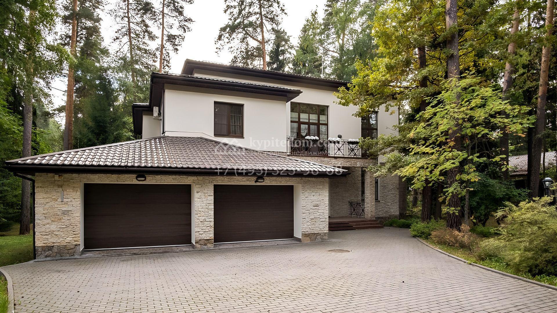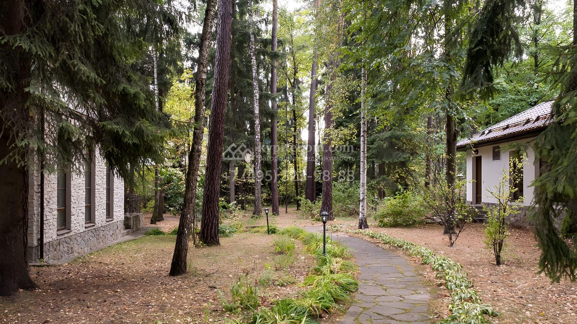 Планировочная концепция включает гостиную, каминный зал, 4 спальни, тренажёрный зал, бильярдную и отдельный блок для персонала. На территории разместились спа-комплекс с бассейном, беседка и дом охраны. Ландшафтное оформление с соснами дополнено прогулочными дорожками и подсветкой, благодаря чему пространство остаётся живописным и функциональным в любое время суток.