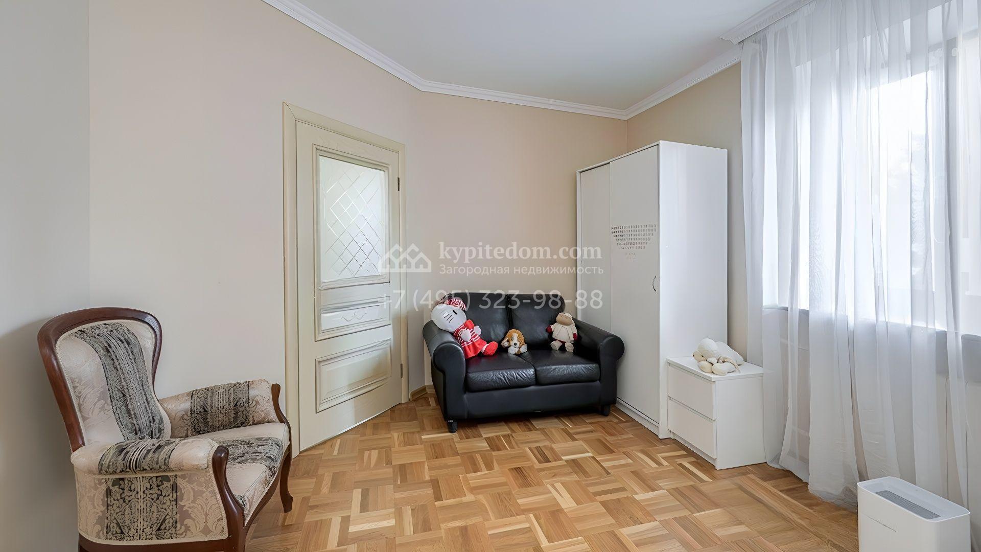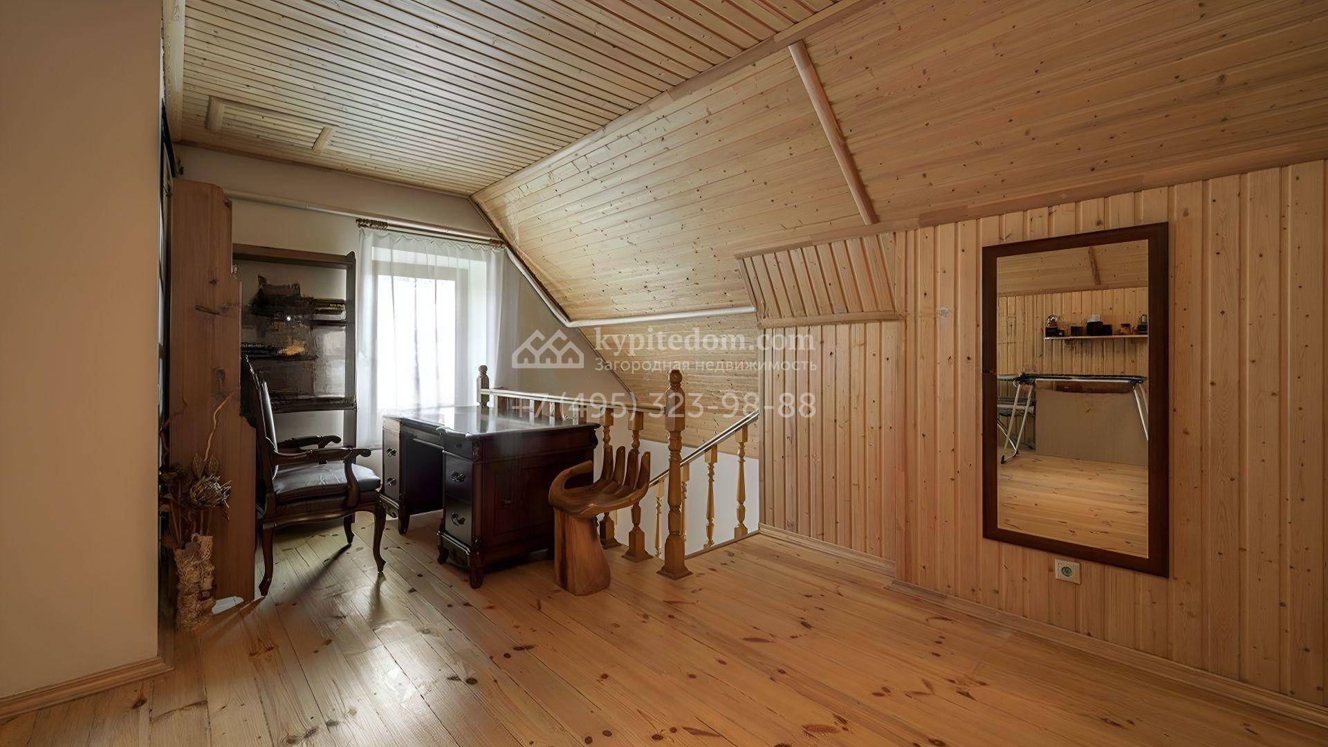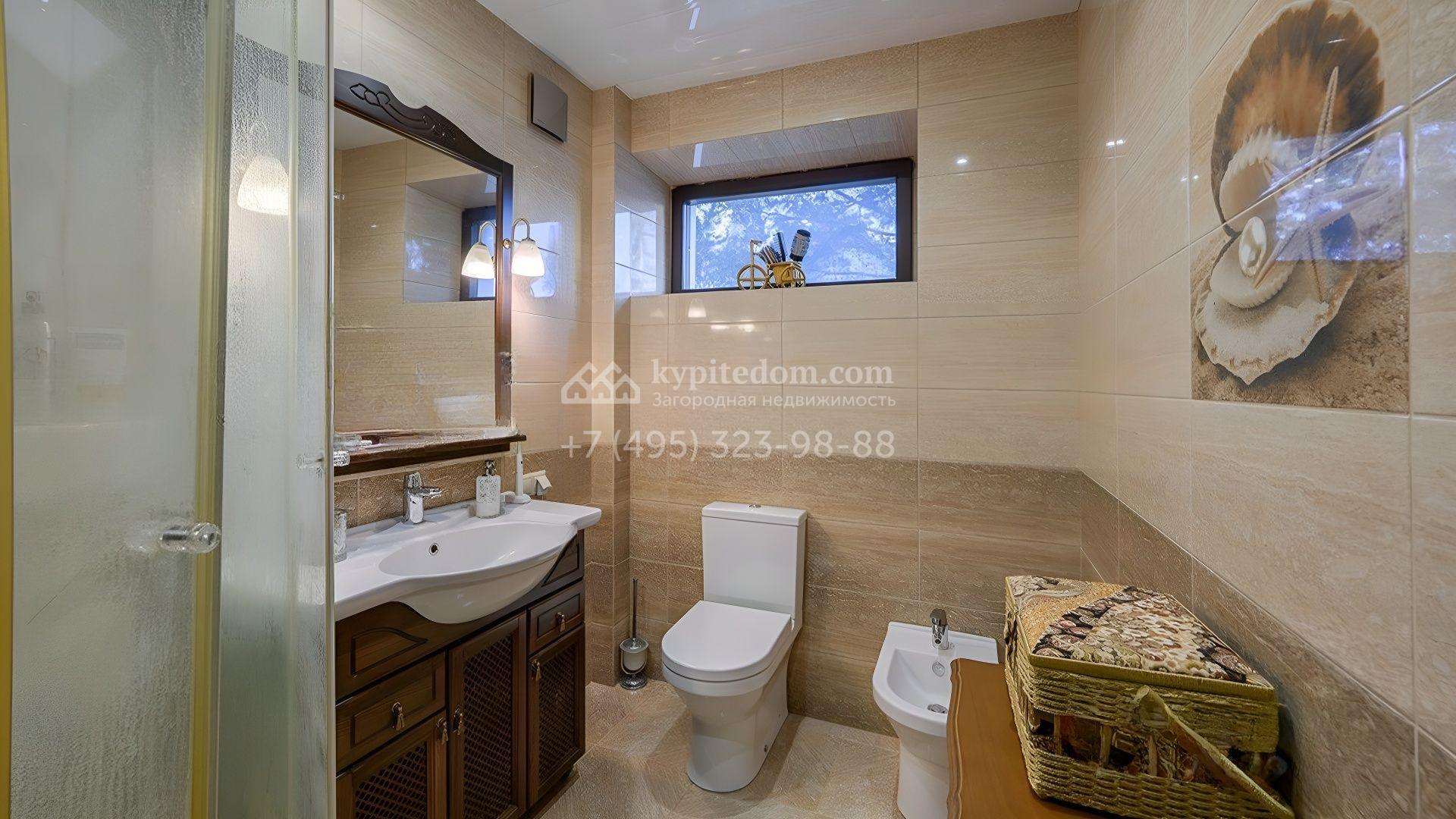 Внутреннее оформление представлено в классическом стиле с акцентом на естественные оттенки и материалы. Интерьеры полностью укомплектованы мебелью и техникой. Планировкой предусмотрены гостиная, кухня и 3 спальни. На участке, где растут хвойные деревья, проведены работы по ландшафтному дизайну — засеяли газон, проложили дорожки и организовали уличное освещение. Для семейного отдыха на свежем воздухе предусмотрена крытая беседка.