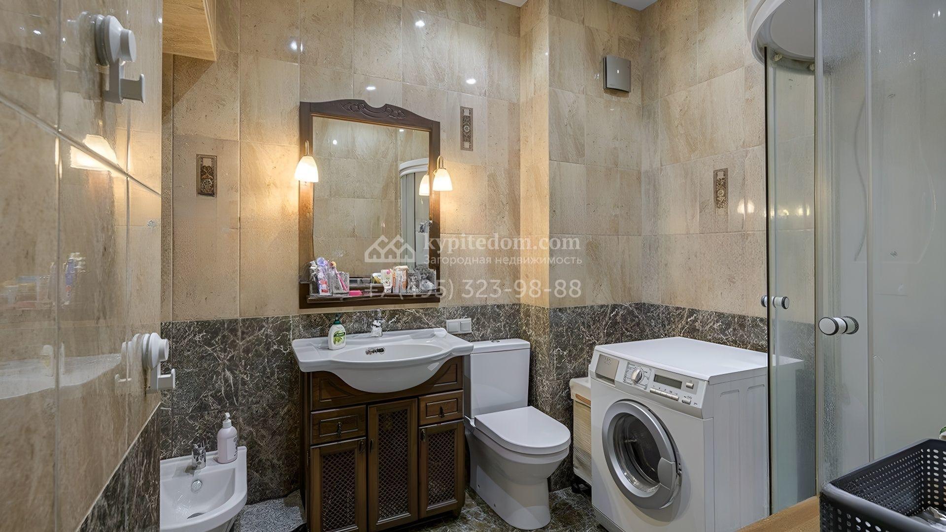 Уютный дом площадью 220 м² расположен на прилесном участке 10 соток. Лаконичный фасад здания облицован штукатуркой светло-бежевого оттека, а крыша, покрытая темно-коричневой черепицей, привносит контраст и завершенность образу. Минималистичный декор и аккуратные формы создают впечатление уюта и спокойствия. В окружении зелени и естественного ландшафта здание выглядит естественным и завершённым.