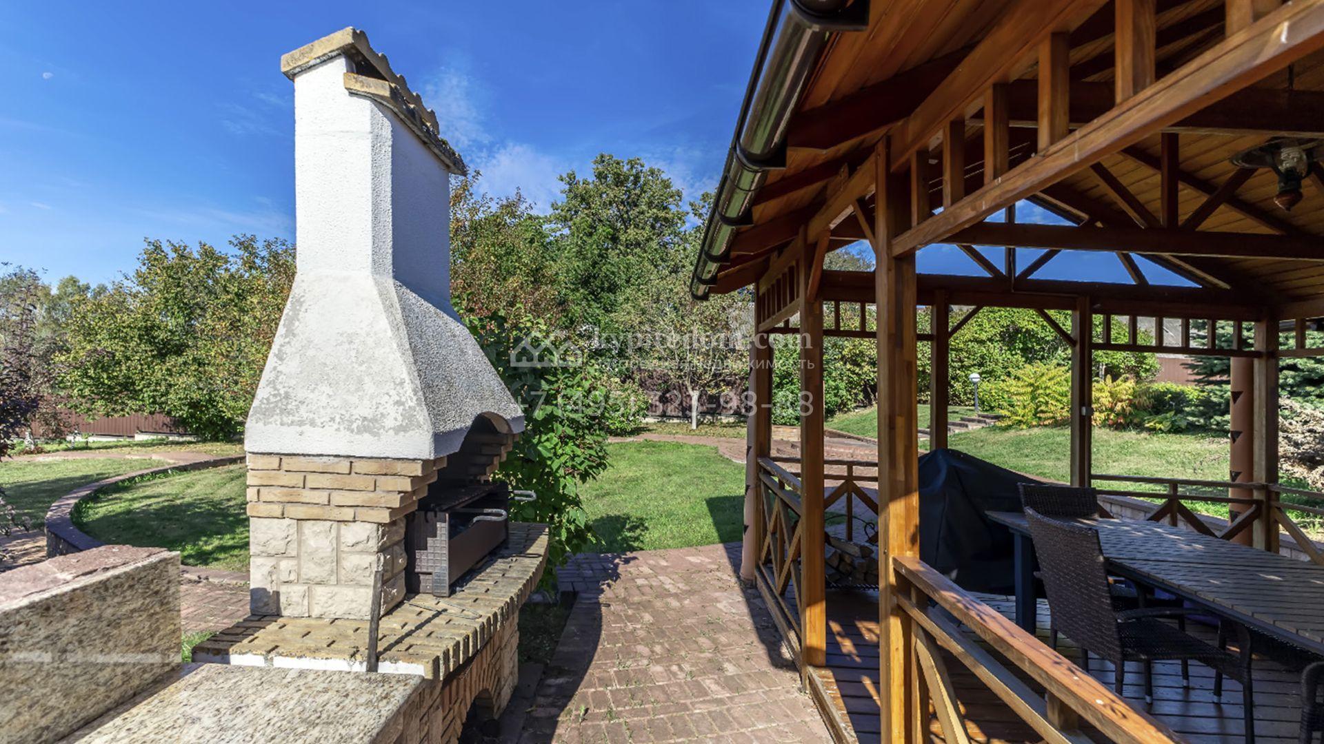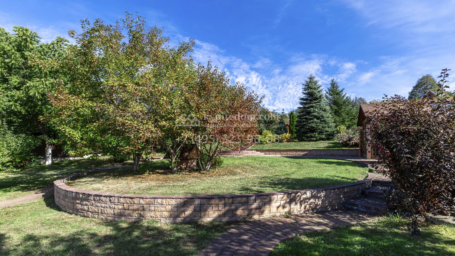 Рядом с основным зданием построили гостевой дом и беседку для барбекю, где можно комфортно проводить вечера с семьей или друзьями. Также для удобства владельцев на территории оборудован навес для машин. На просторном огороженном участке выполнен ландшафтный дизайн, вымощены дорожки, засеян газон, высажено множество деревьев и кустарников, оборудованы уличное освещение и зоны отдыха.