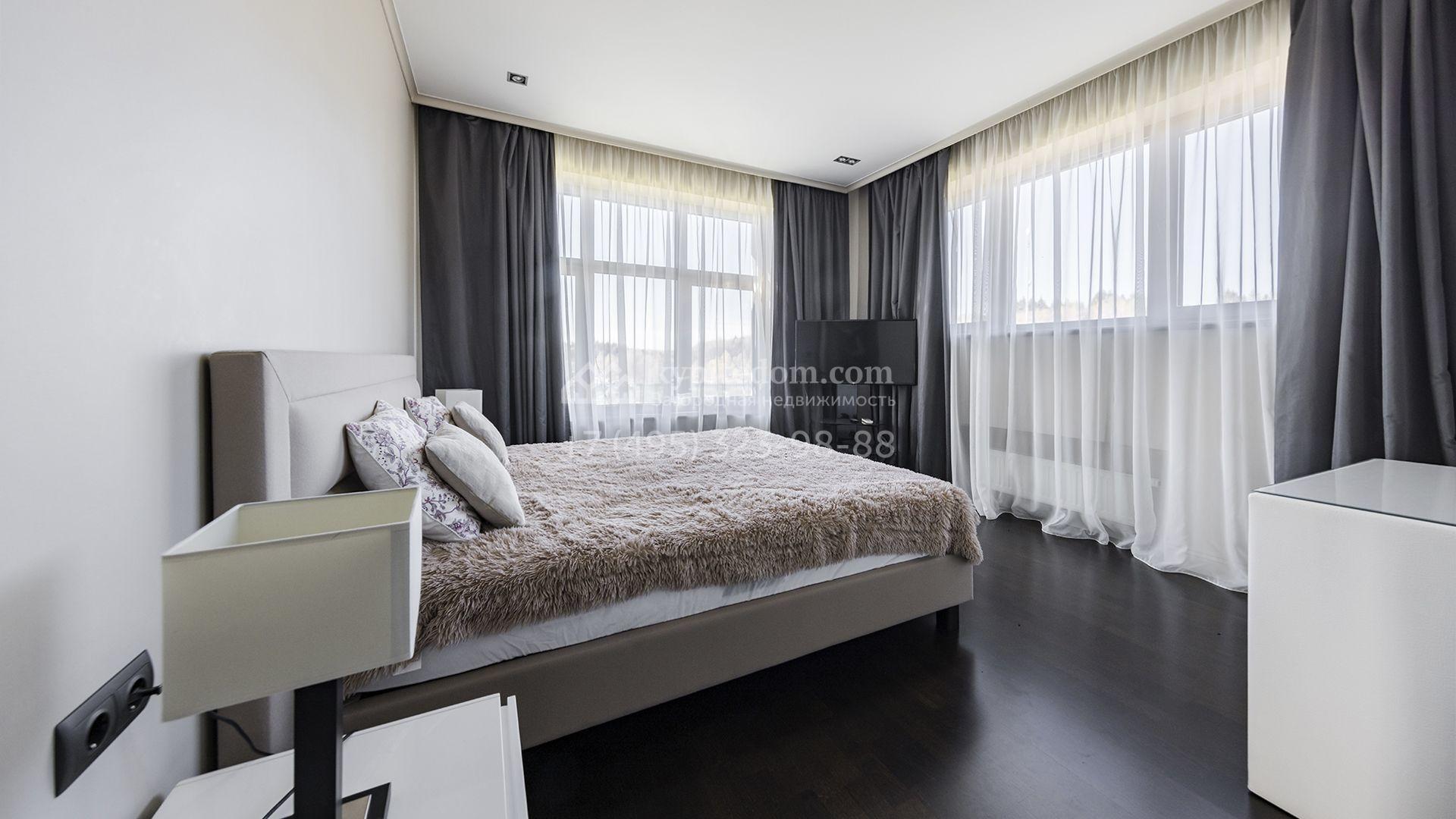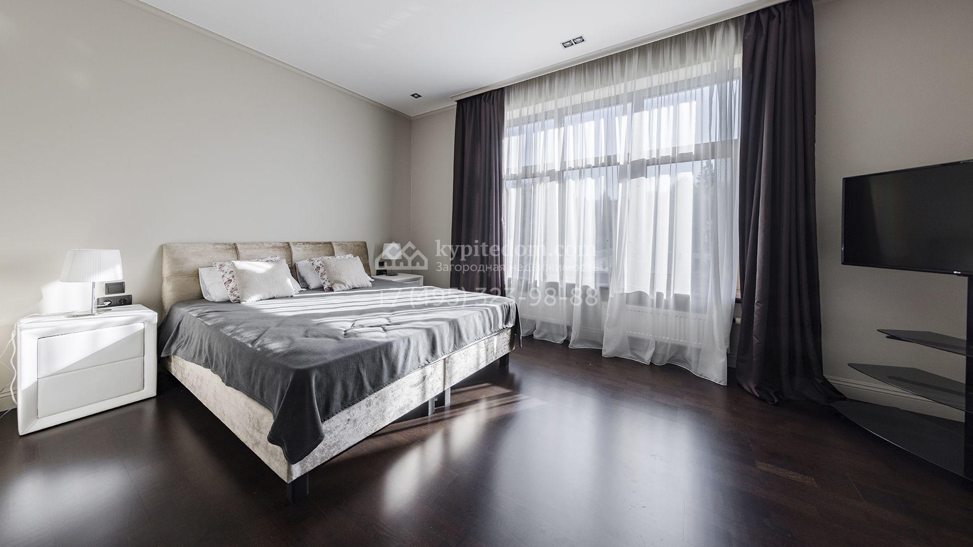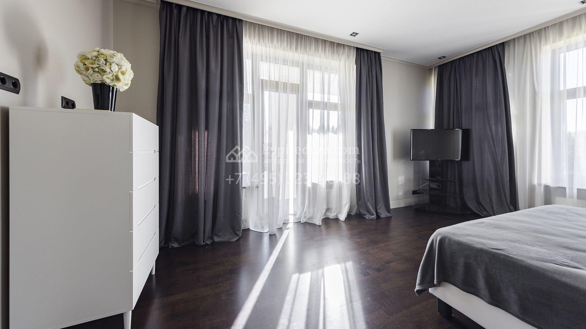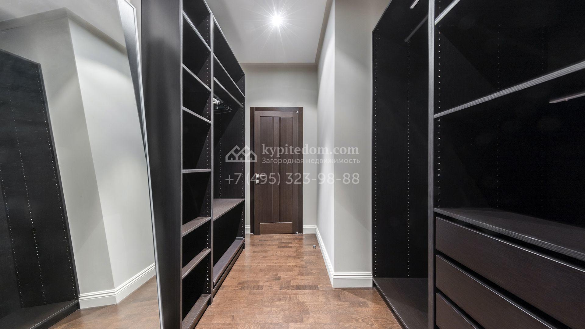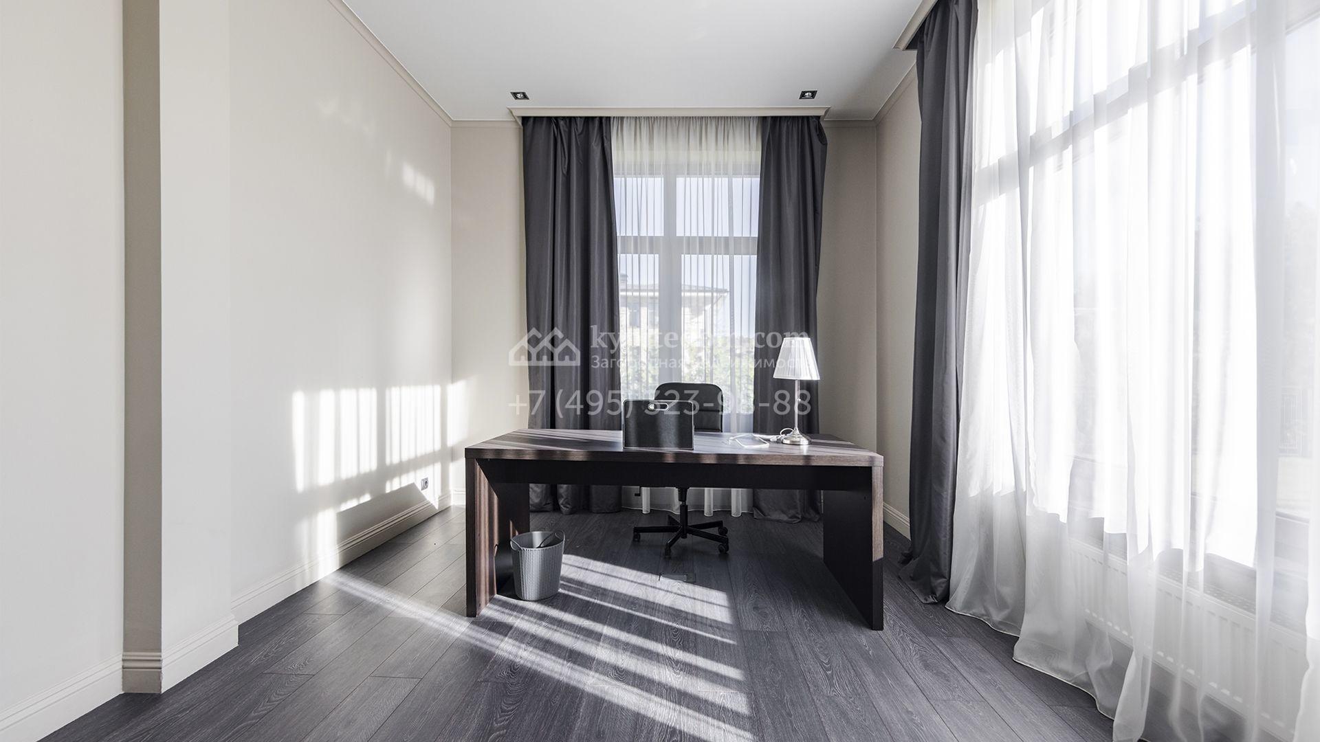 В коттедже спланировали уютную гостиную-кухню-столовую с камином и TV-зоной с выходом на террасу, 3 спальни, кабинет и 2 гардеробные. Рядом с основным зданием возведены навес на 3 машины и обустроенная беседка для барбекю. В рамках ландшафтного дизайна на участке засеян газон, высажены хвойные деревья, дорожки вымощены брусчаткой и оборудовано уличное освещение.
