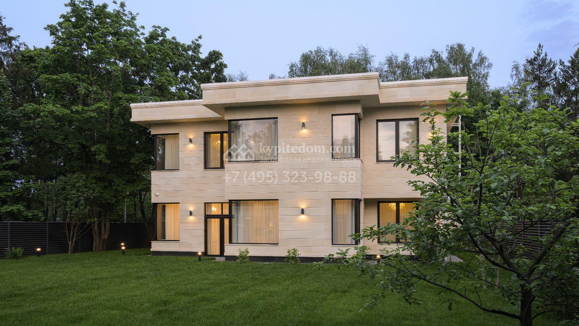 Новый современный коттедж площадью 250 м² возведен на участке 10 соток. Архитектура дома основана на строгих пропорциях и лаконичных объемах, фасад облицован натуральным камнем и гранитом. Четкие линии дополнены панорамным остеклением, которое визуально облегчает конструкцию и наполняет интерьеры светом. Внутреннее оформление выдержано в пастельных тонах с акцентом на высококачественные материалы.