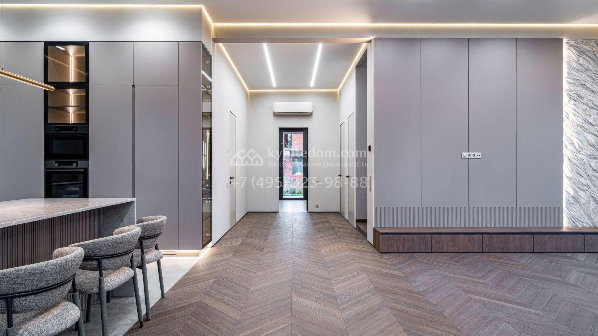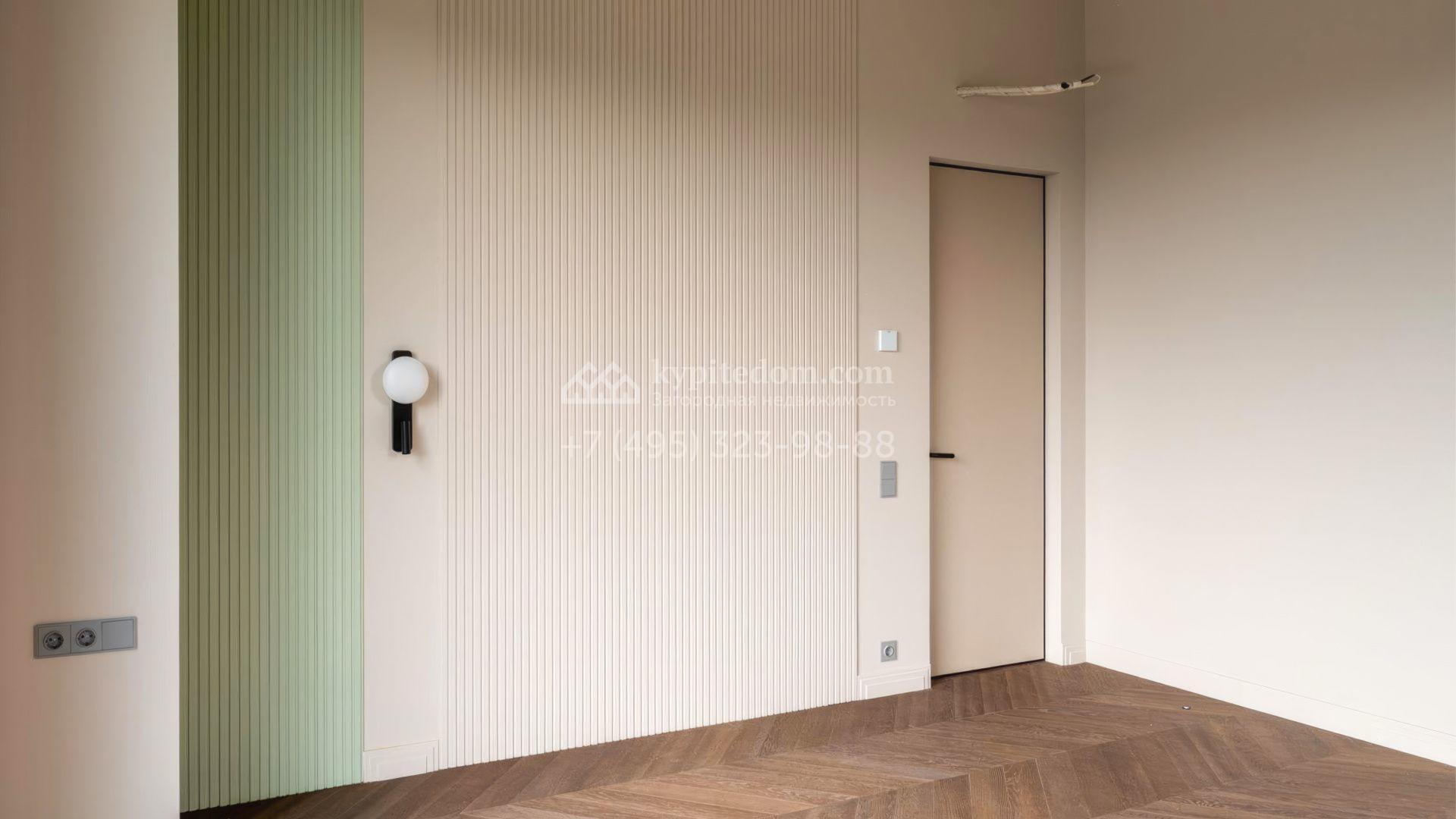 Интерьеры выдержаны в светлых тонах, отделаны с использованием инженерной доски Vecchio, выложенной французской ёлочкой, итальянского и испанского керамогранита, а также укомплектованы встроенной авторской мебелью Rockwood, бытовой техникой Asko и сантехникой от европейских производителей. Для идеального микроклимата установлены мульти сплит-система Hisense и приточная вентиляция.