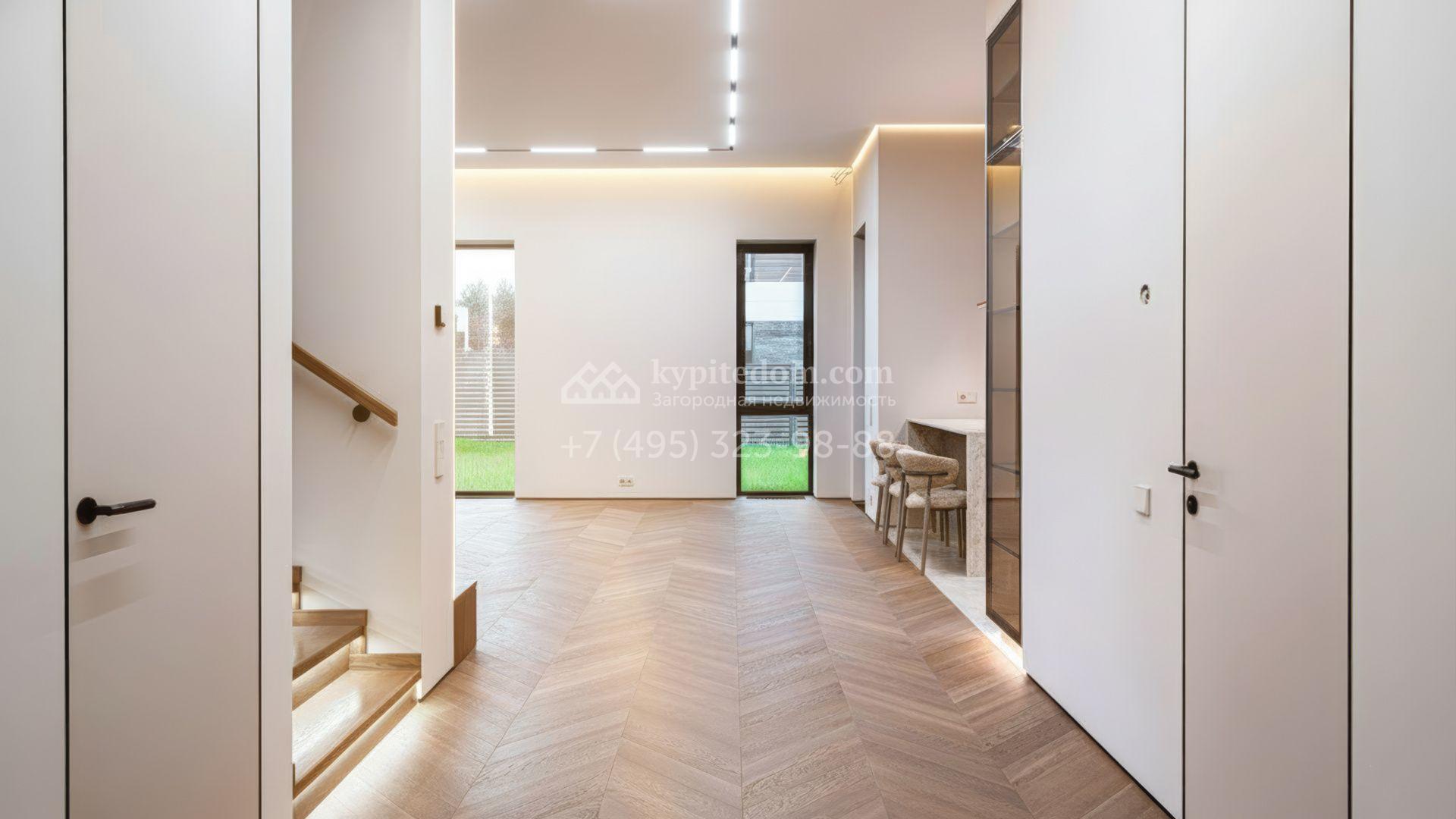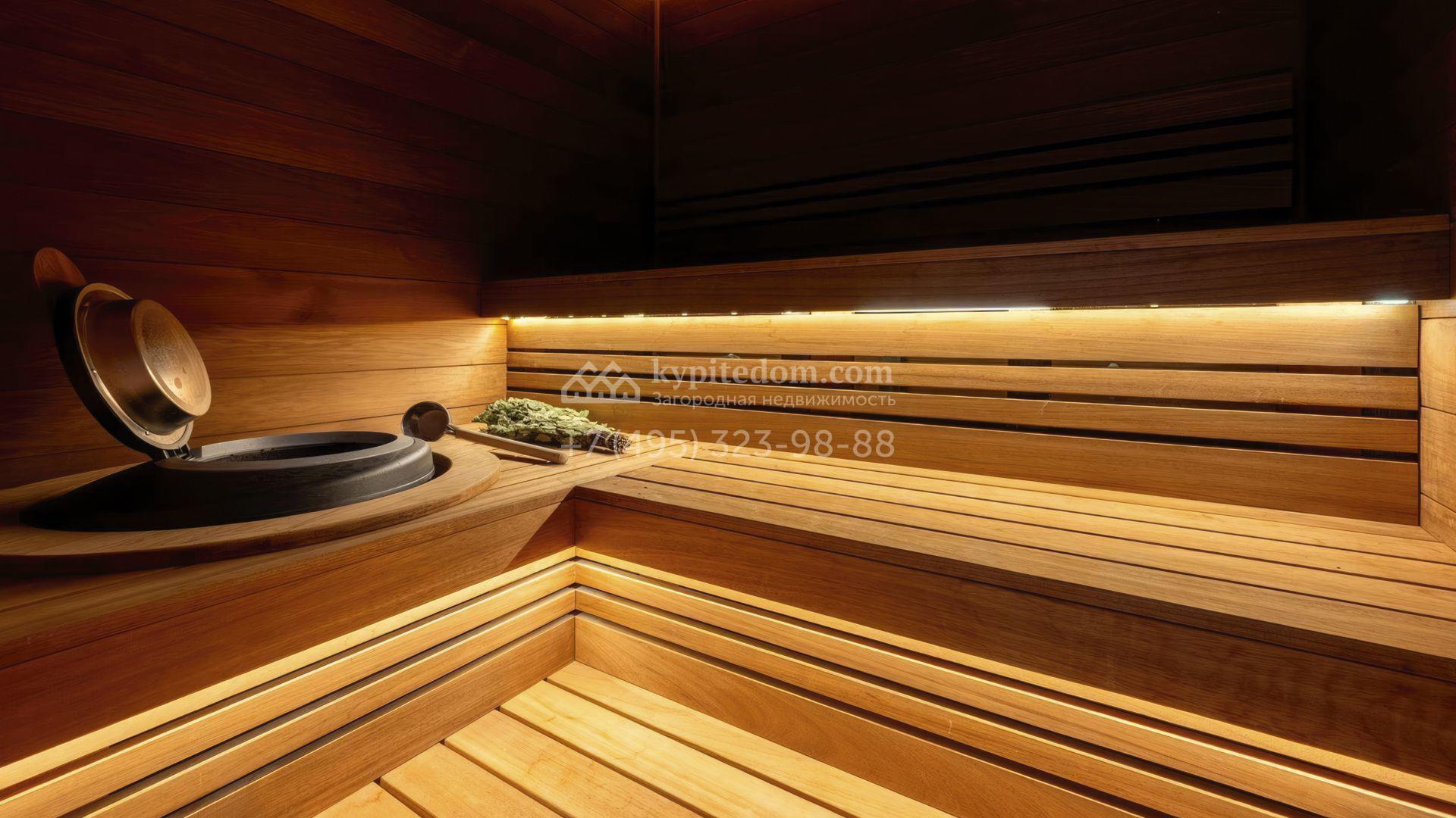 Планировка включает просторную гостиную, объединённую с кухней-столовой с удобным островом, сауну из африканского дуба и термоосины с финской печью Helo Rondo 960, 4 уютные спальни, кабинет и вместительные гардеробные. Террасы общей площадью 97 м² станут излюбленными местами для отдыха на свежем воздухе. Оставить машины можно во встроенном двухместном гараже. Территория полностью огорожена и ухожена — здесь вас будет радовать аккуратный газон, обеспечивающий приятный вид из окна и гармонию с природой.