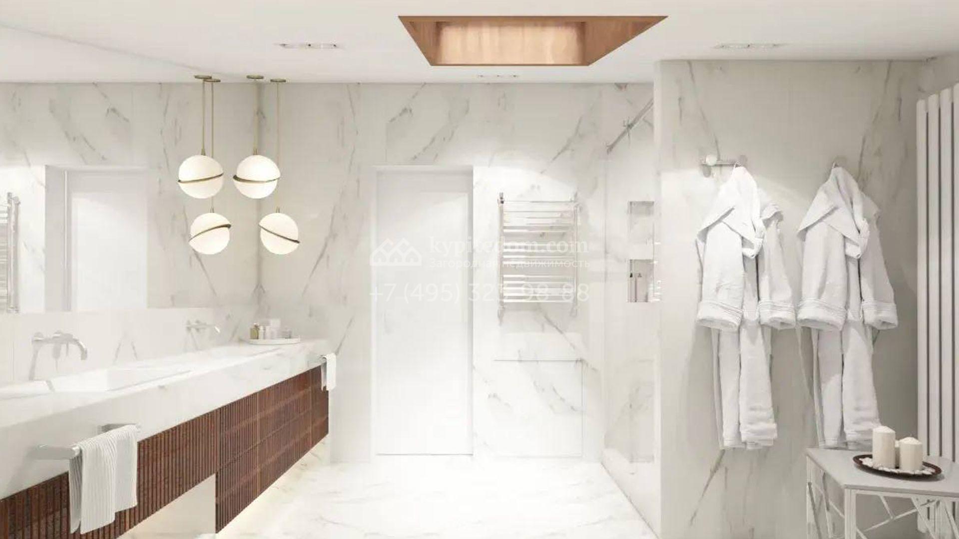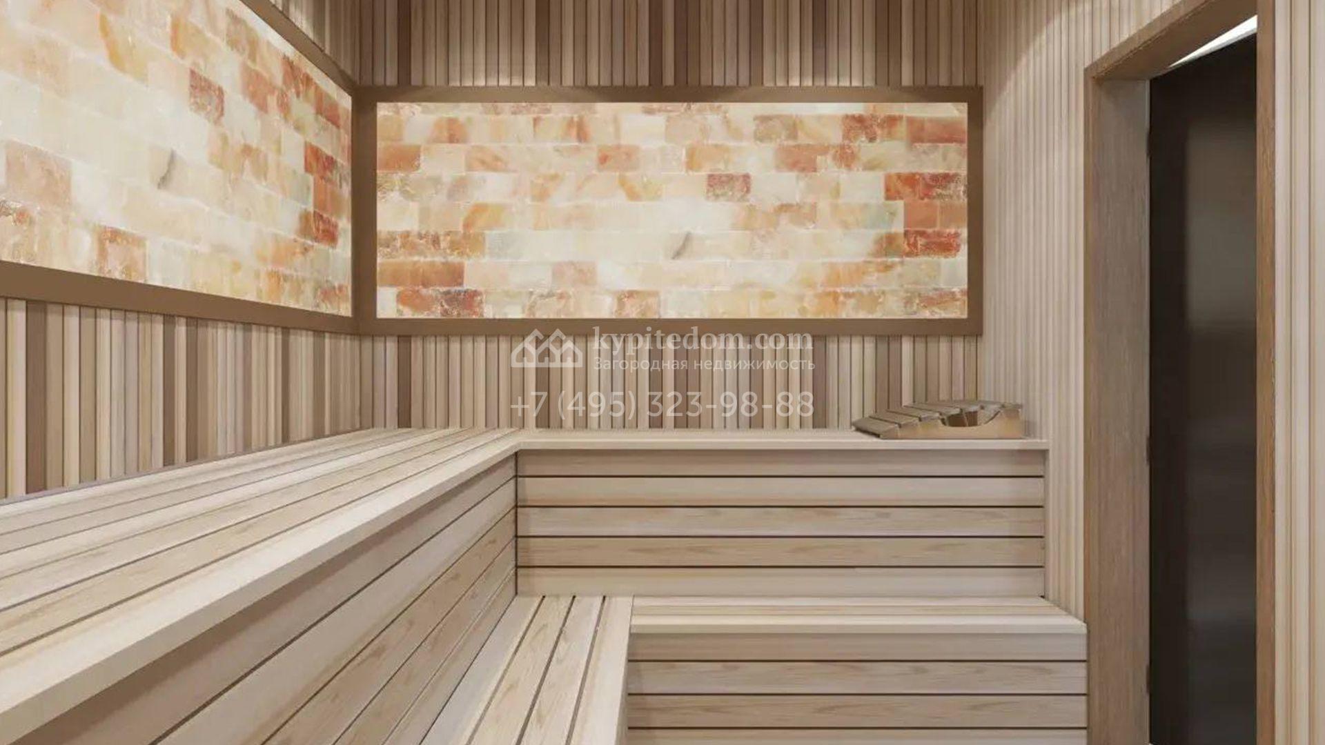 Планировкой предусмотрены 3 спальни, гостиная, кухня-столовая, 2 комнаты свободного назначения и СПА-зона с баней. На территории можно засеять газон, проложить дорожки, оформить собственный уютный сад и установить беседку с зоной для барбекю.