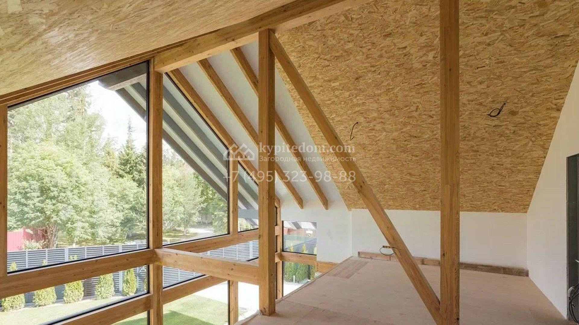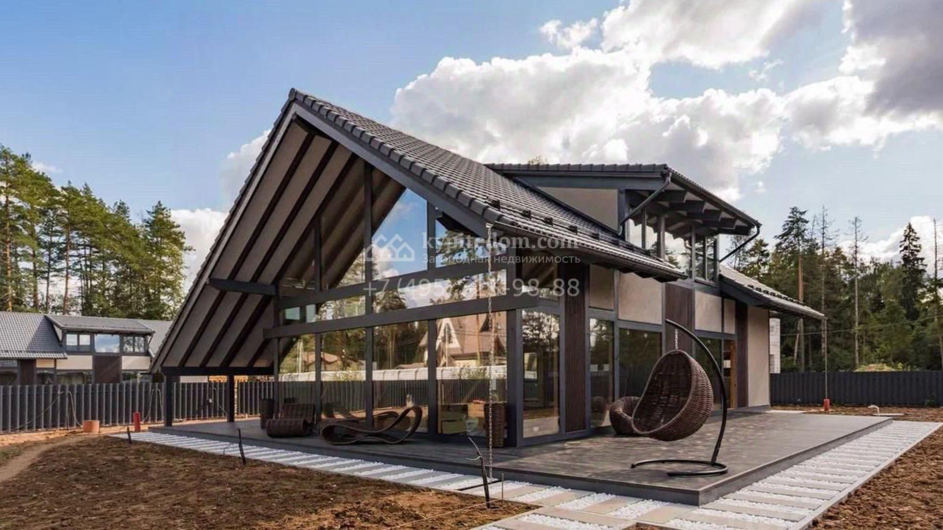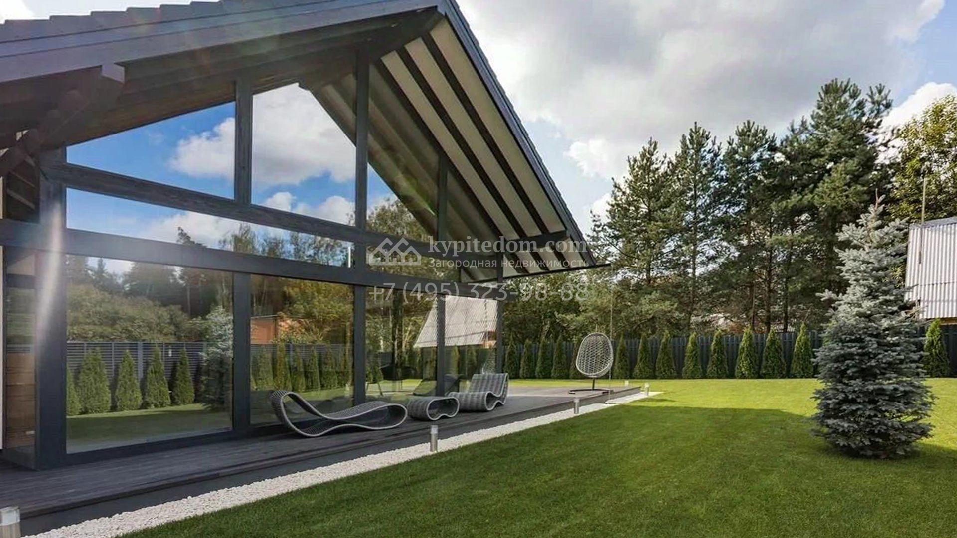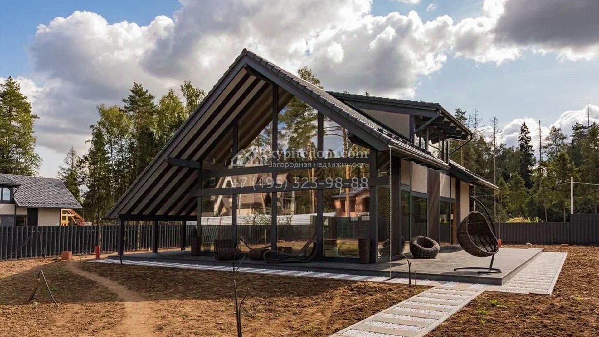 Загородный дом площадью 309 м² построен на уютном полевом участке 11 соток. Фасад здания с большой площадью остекления выполнен в стиле «фахверк». Коттедж без отделки позволяет реализовать индивидуальный дизайн-проект. В резиденции можно обустроить несколько спален, гостиную и кухню-столовую. На участке выполнен ландшафтный дизайн с системой автоматического полива Hunter, сделана мраморная отмостка и засеян газон.