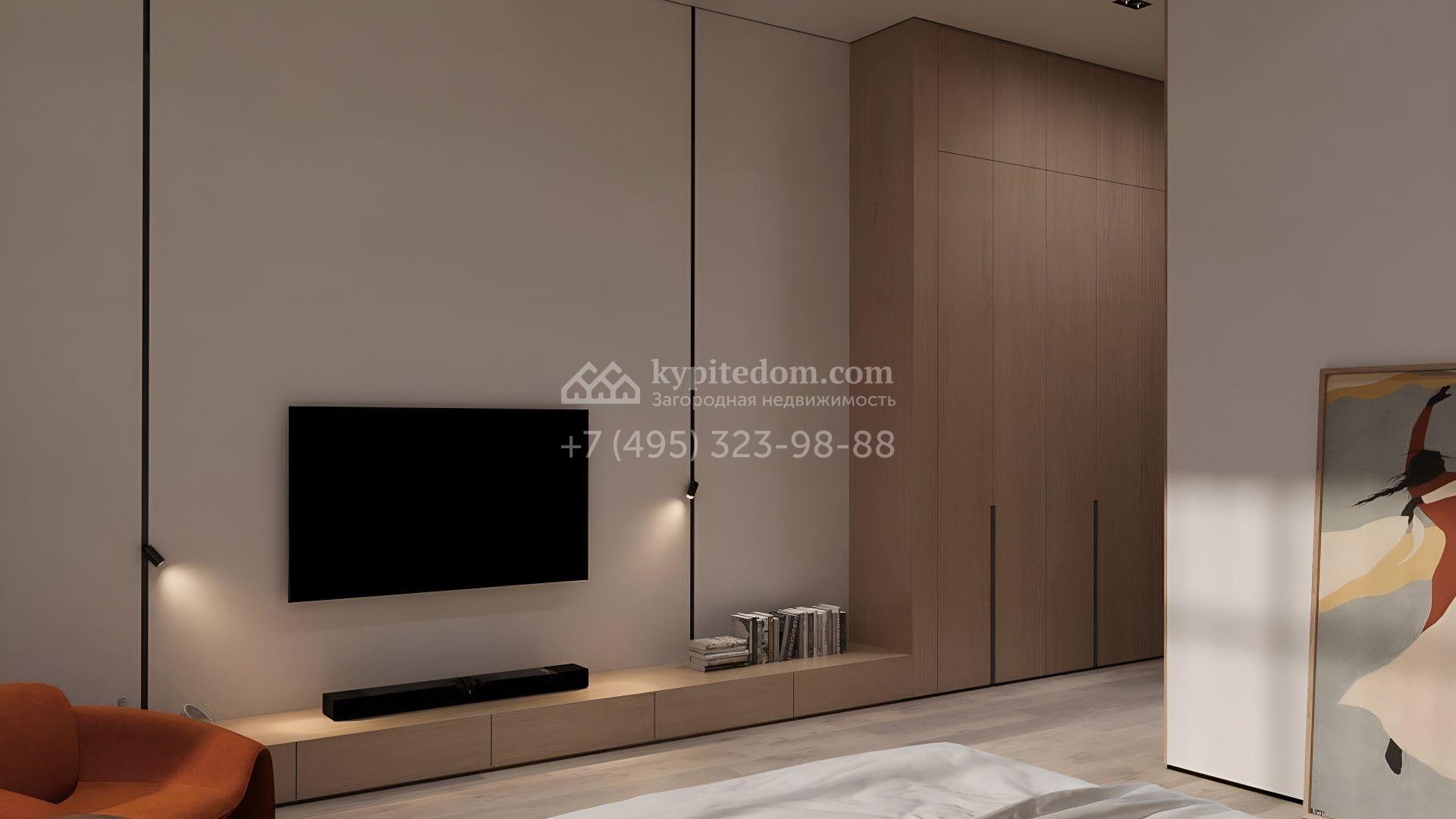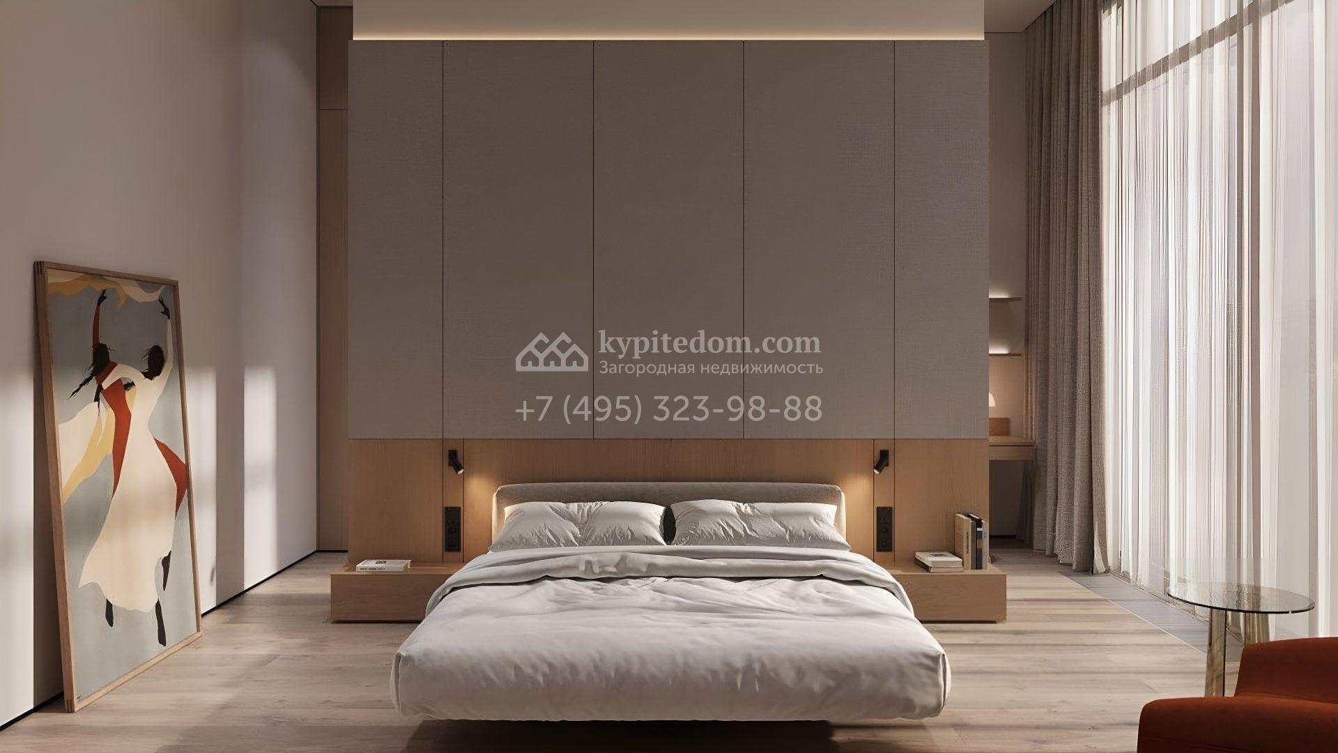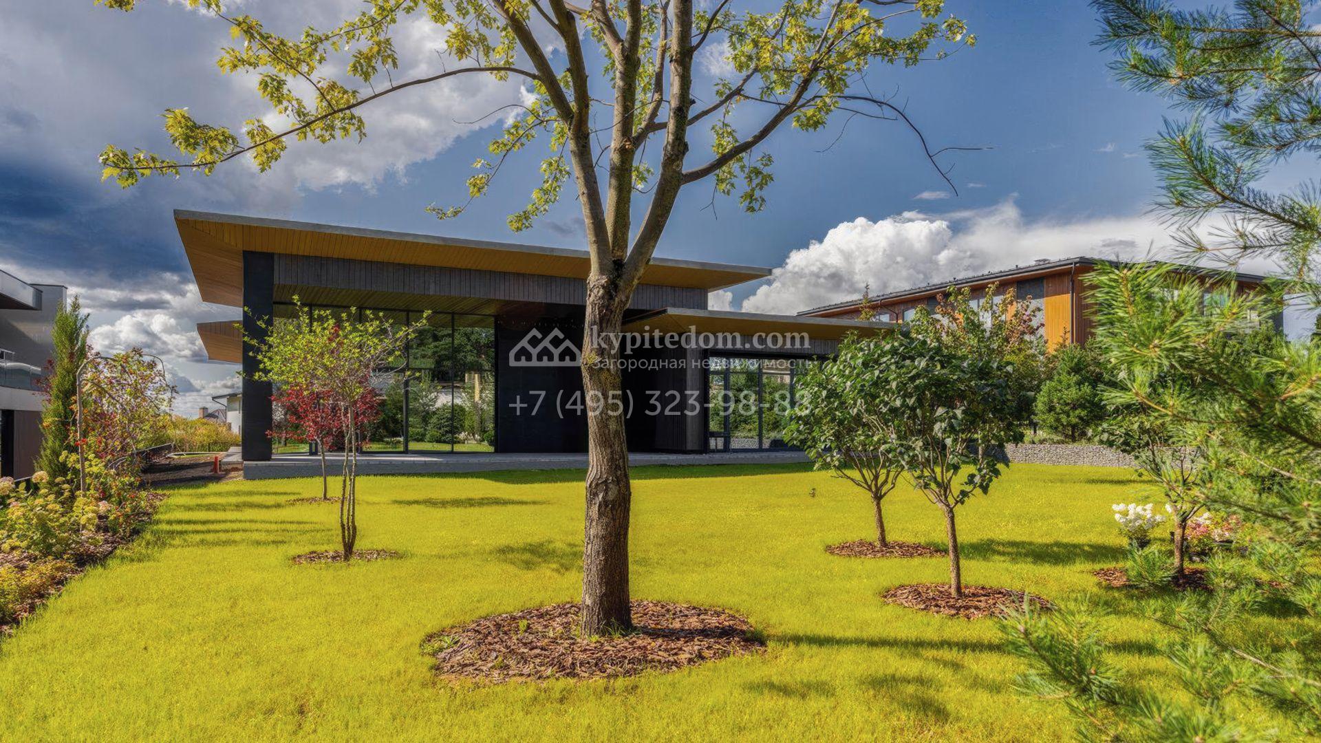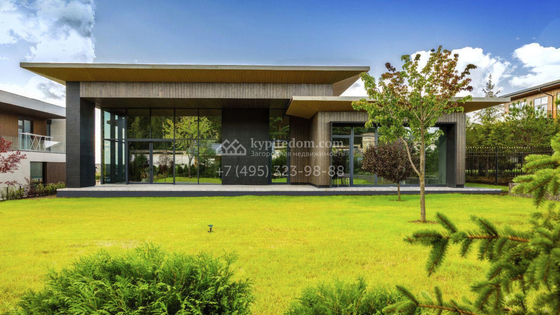 Современный загородный коттедж площадью 489 м² расположен на полевом участке 22 сотки. Фасад, выполненный в стиле минимализм, облицован панелями с фактурой дерева и гармонично вписан в ландшафт. Панорамные окна стирают грань между природным окружением и интерьерами, наполненными солнечным теплом. Внутреннее пространство выдержано в светлых тонах, дополнено ярко-красными акцентами, а также элегантными люстрами и картинами. Дом полностью укомплектован комфортной мебелью, встроенной бытовой техникой и сантехникой.