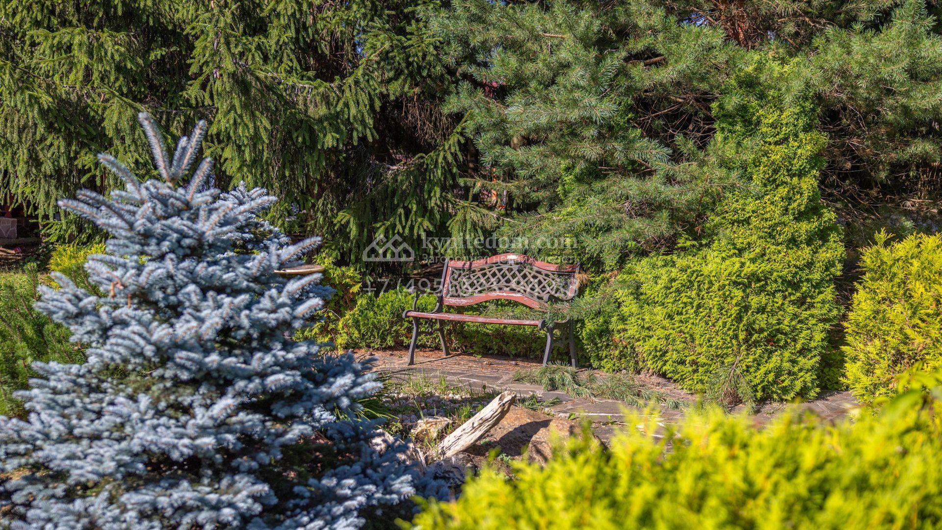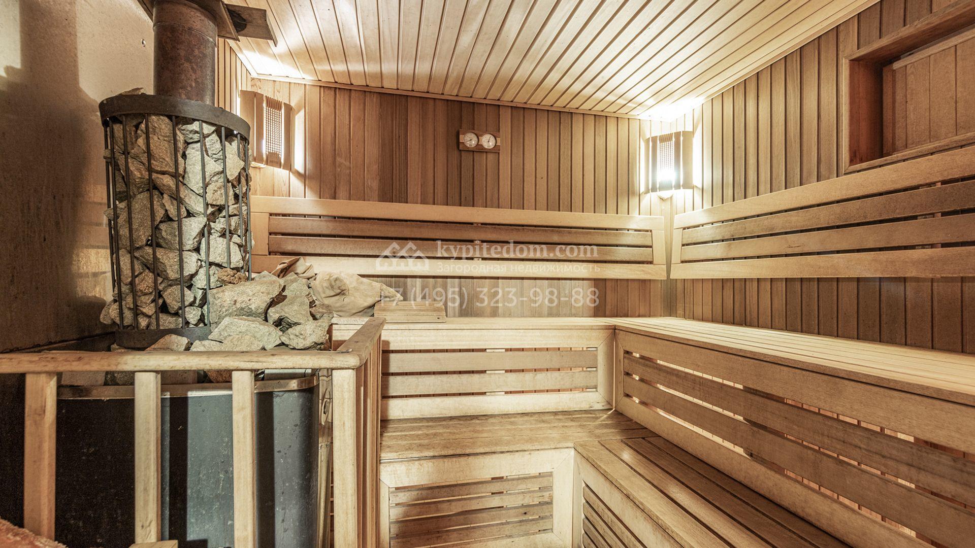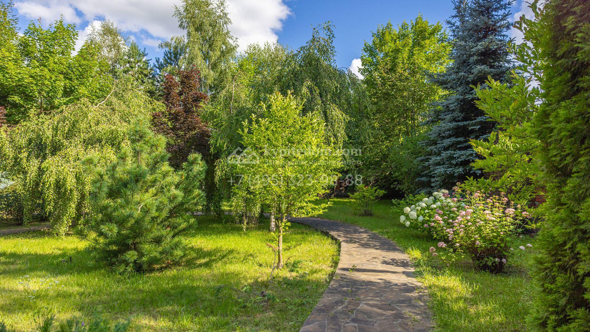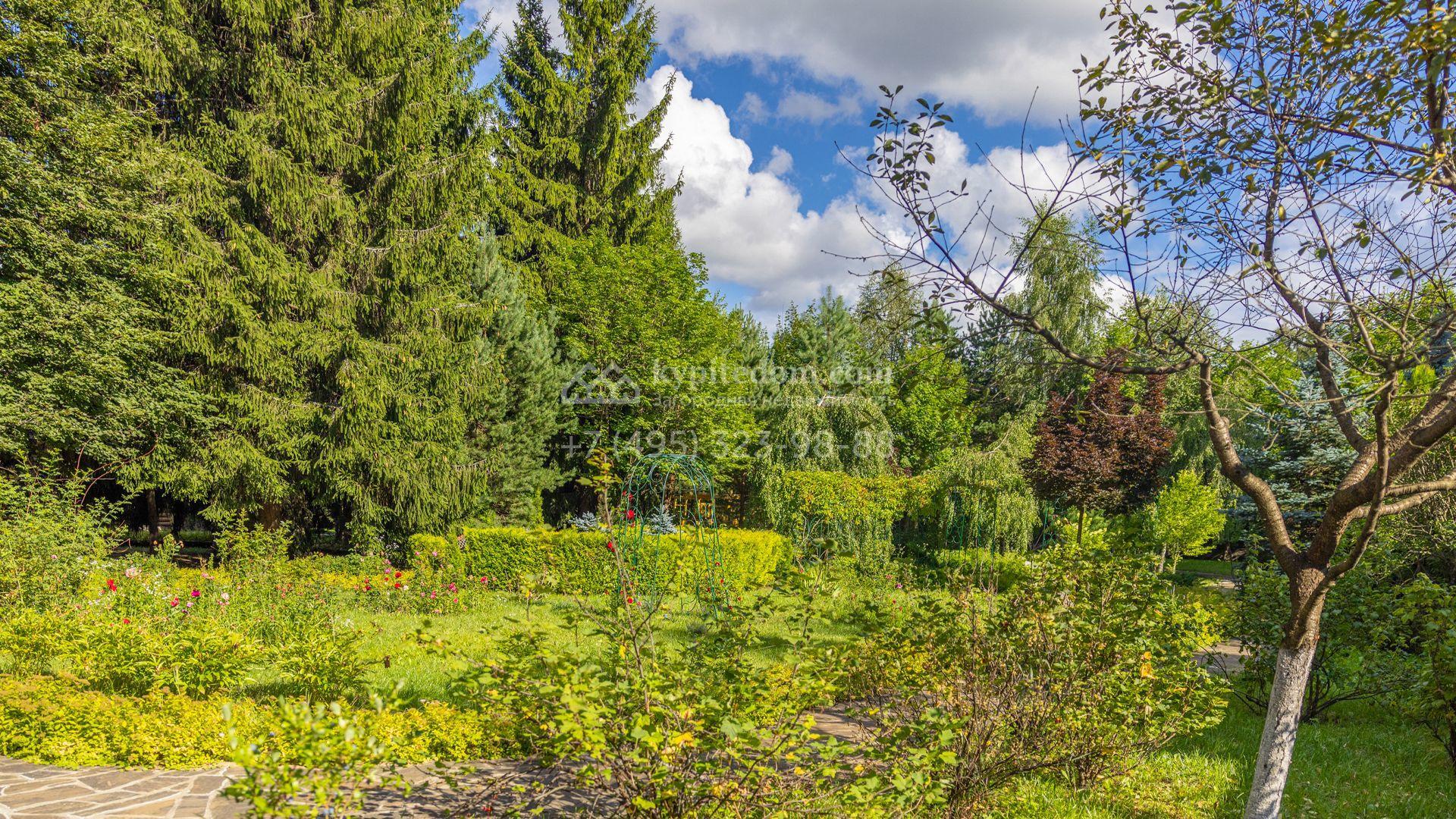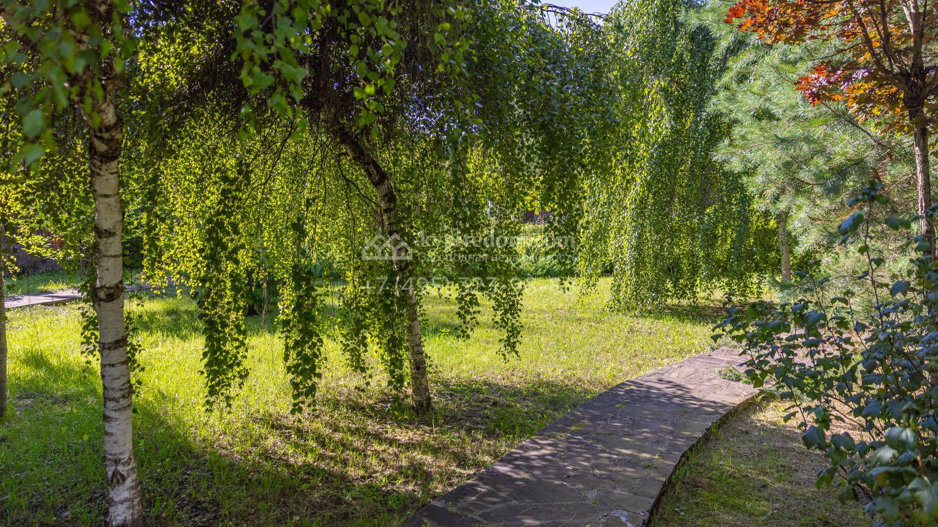 Загородный дом площадью 352 м² построен на просторном полевом участке 40 соток. Фасад здания выполнен из бревна в стиле «шале». В отделке интерьера сохранена фактура дерева, создающая атмосферу тепла и уюта. В резиденции разместили 9 спален, гостиную, кухню-столовую и бильярдную. Рядом расположены баня с комнатой отдыха и санузлом, гараж на 3 машины с квартирой для персонала и котельной, а также закрытая беседка с мангальной зоной. На участке выполнен ландшафтный дизайн, вымощены дорожки, высажены кустарники и цветы.