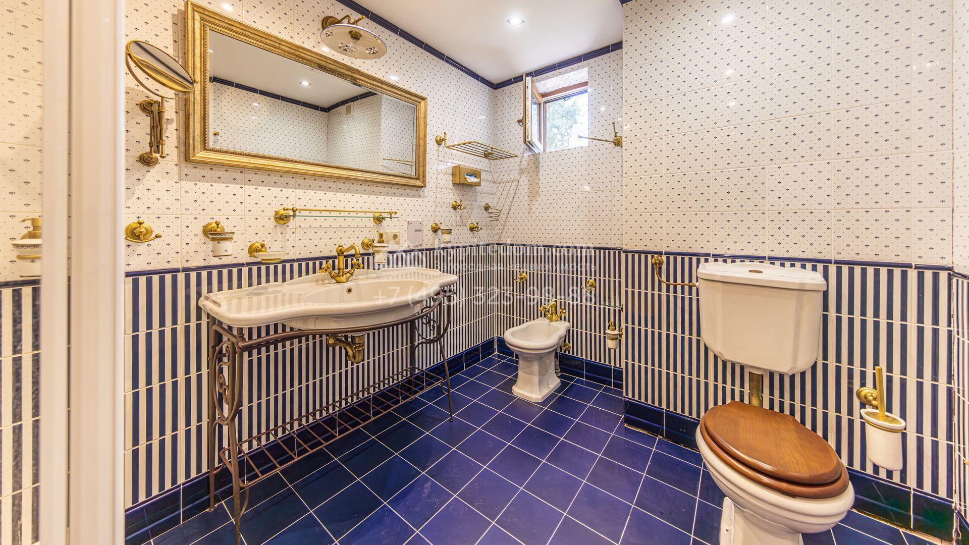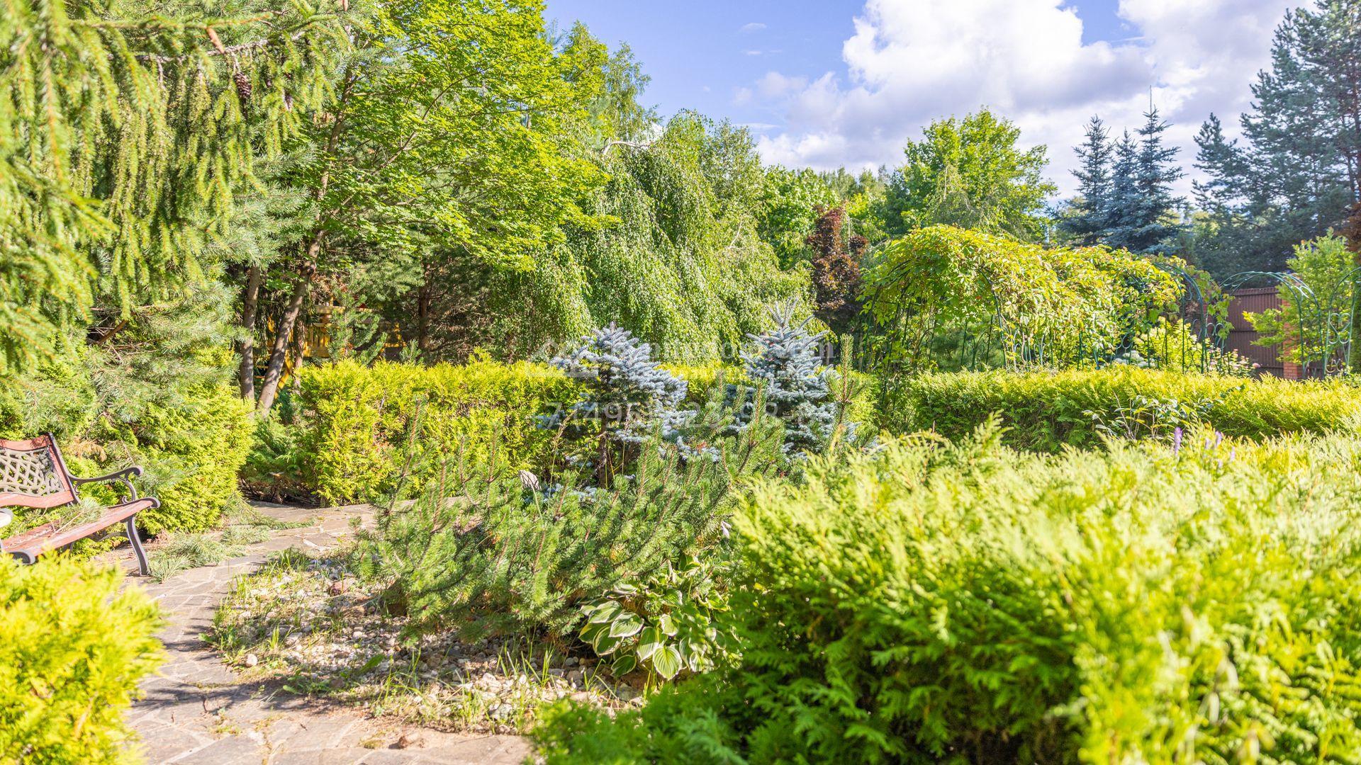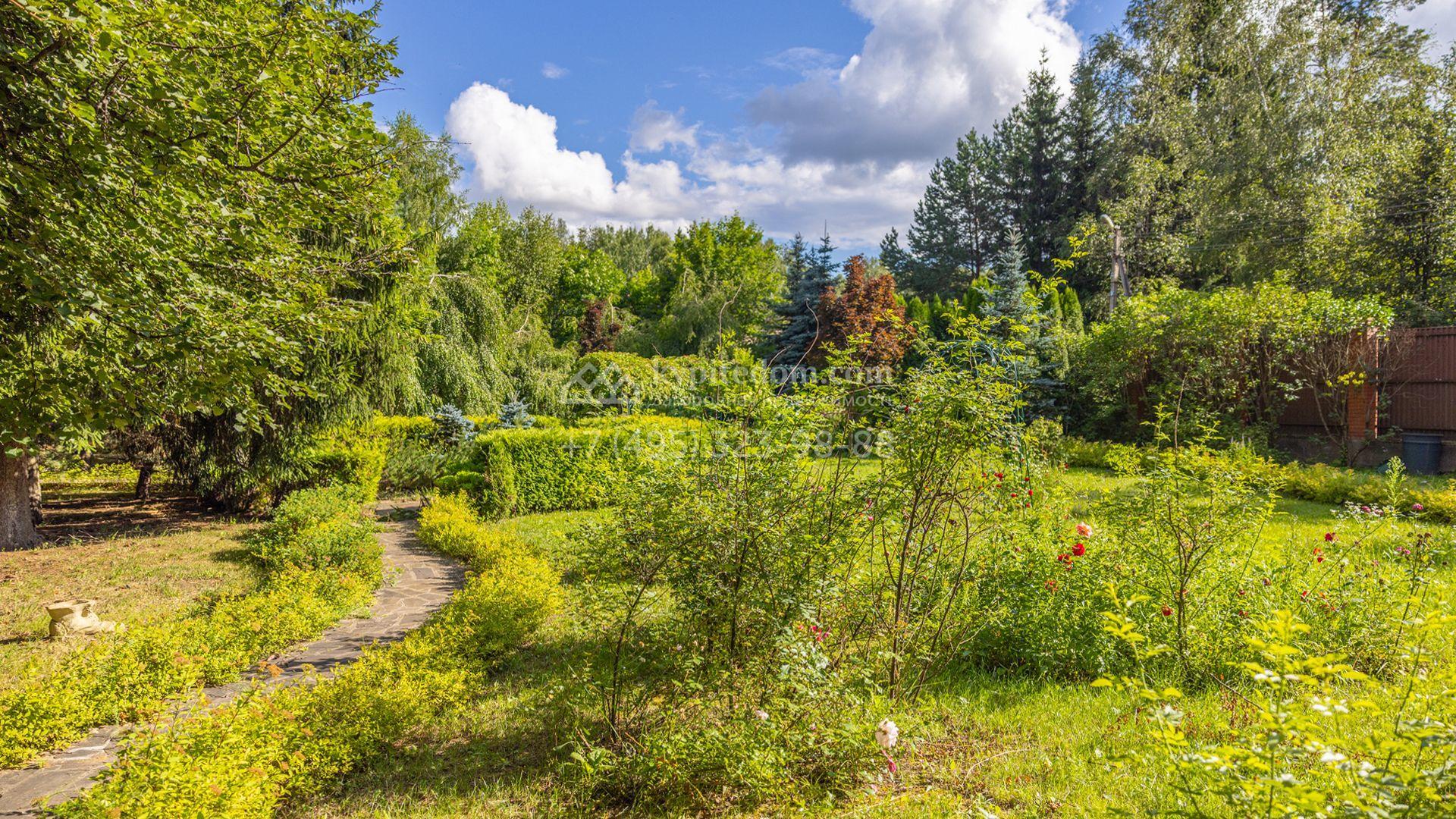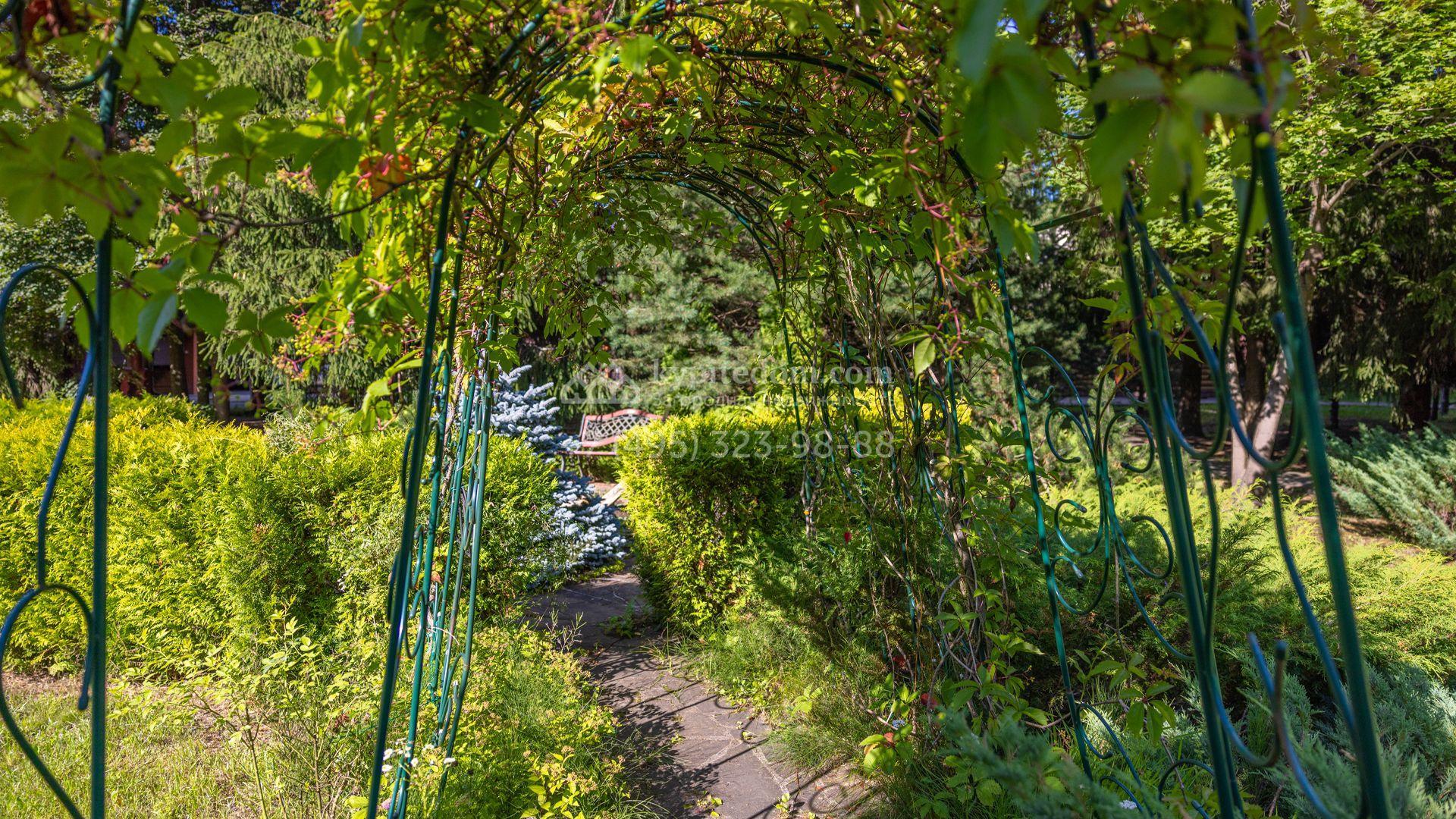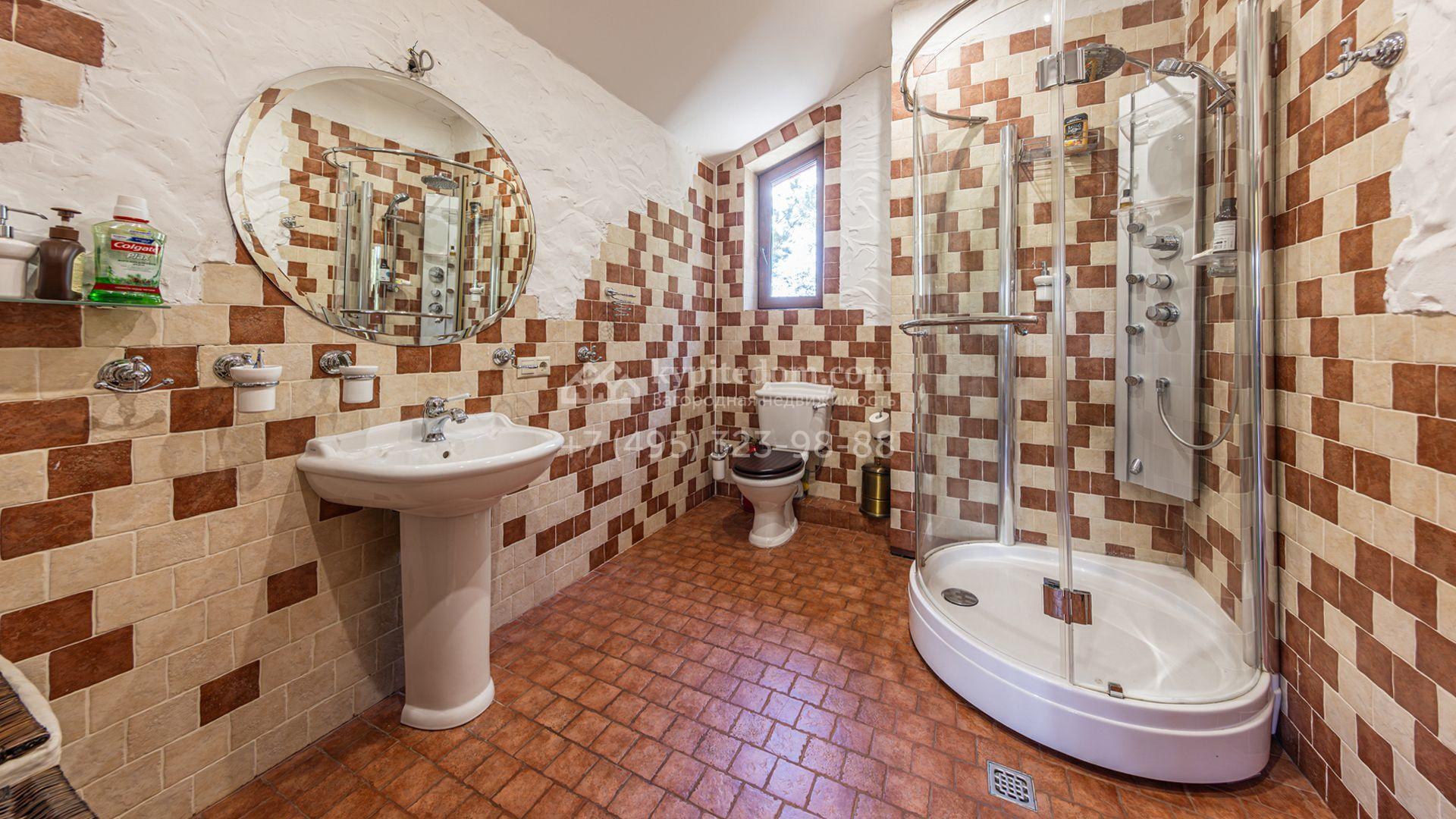 Загородный дом площадью 352 м² построен на просторном полевом участке 40 соток. Фасад здания выполнен из бревна в стиле «шале». В отделке интерьера сохранена фактура дерева, создающая атмосферу тепла и уюта. В резиденции разместили 9 спален, гостиную, кухню-столовую и бильярдную. Рядом расположены баня с комнатой отдыха и санузлом, гараж на 3 машины с квартирой для персонала и котельной, а также закрытая беседка с мангальной зоной. На участке выполнен ландшафтный дизайн, вымощены дорожки, высажены кустарники и цветы.