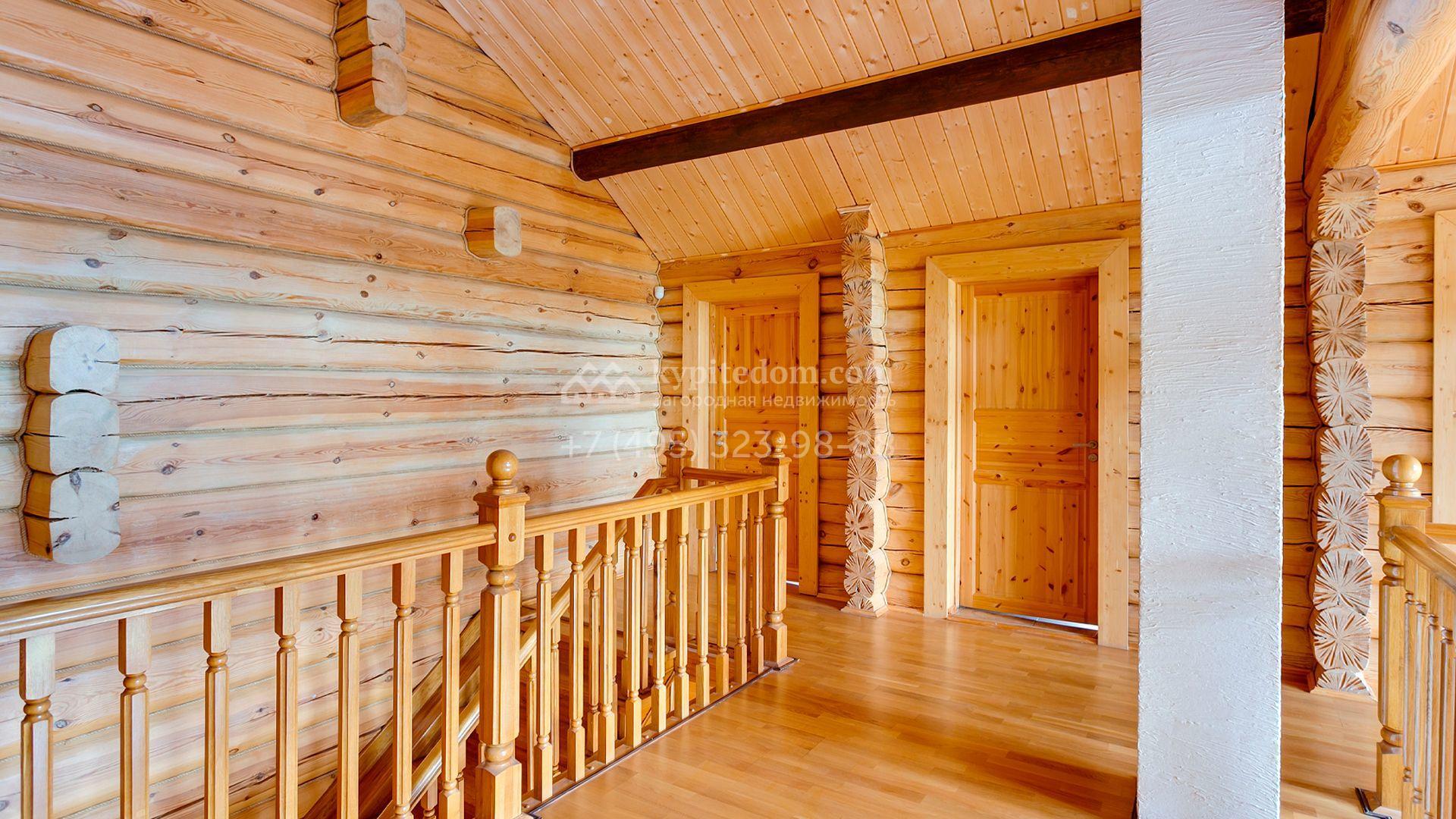 Деревянный дом с отделкой «под ключ» и 3-мя спальнями расположен на уютном участке 20 соток с молодыми березами. Центр притяжения дома — двухуровневая кухня-гостиная с камином и выходом на террасу. На мансардном этаже можно устроить дополнительную спальню или игровую комнату. В интерьере использовано много дерева и мебель в стиле «прованс». На территории построили отдельный гараж для 2 машин с помещением для персонала, баню, которую можно использовать как гостевой дом, и разместили гостевой паркинг. На участке выполнили ландшафтный дизайн и обустроили декоративный пруд.