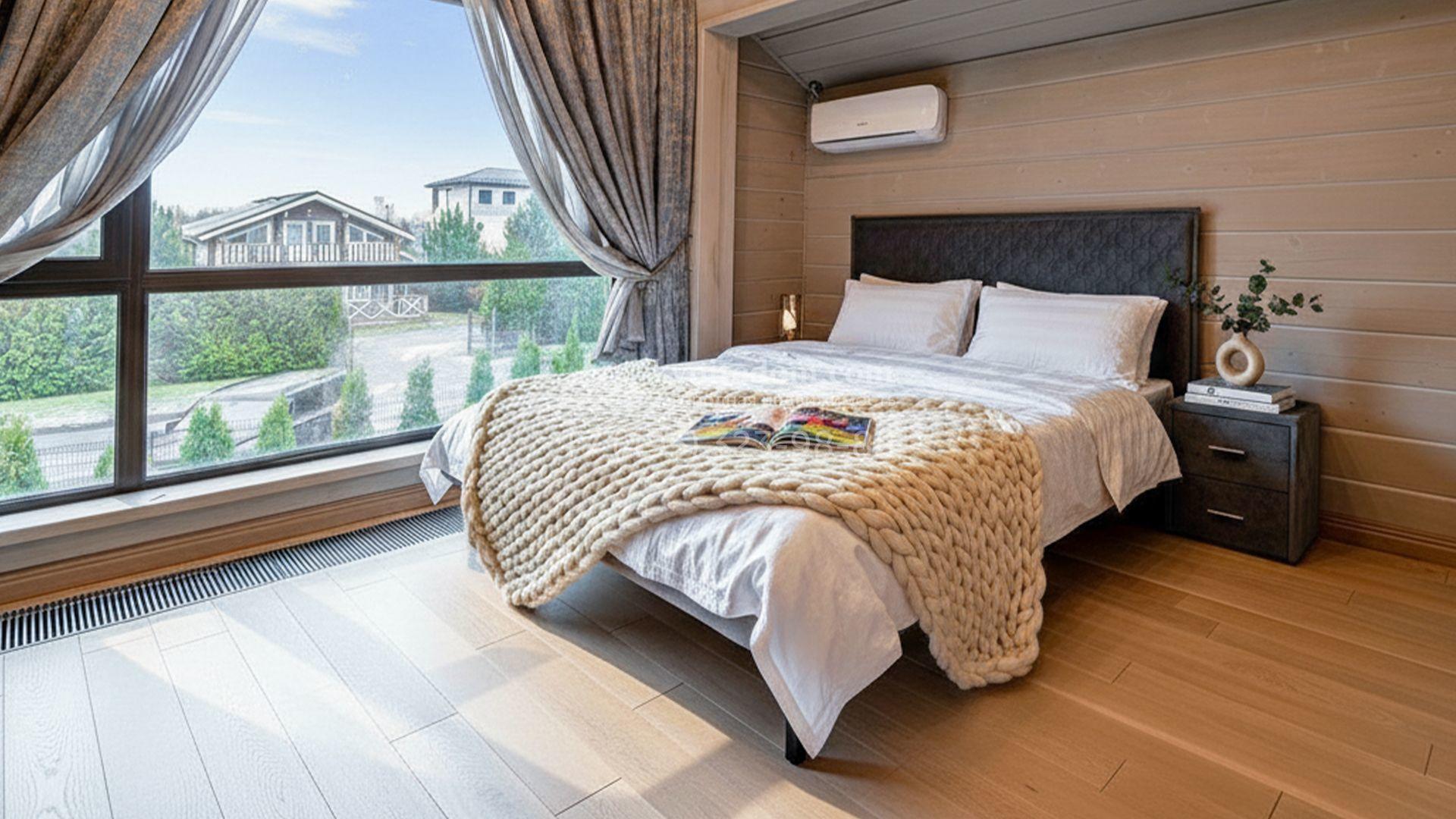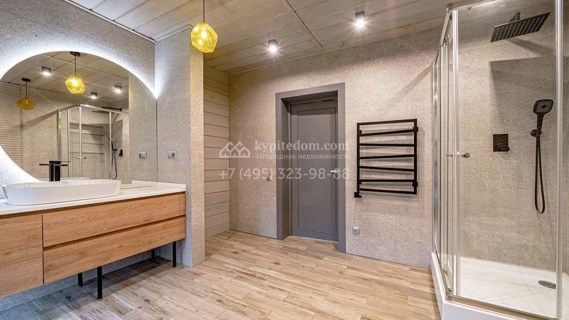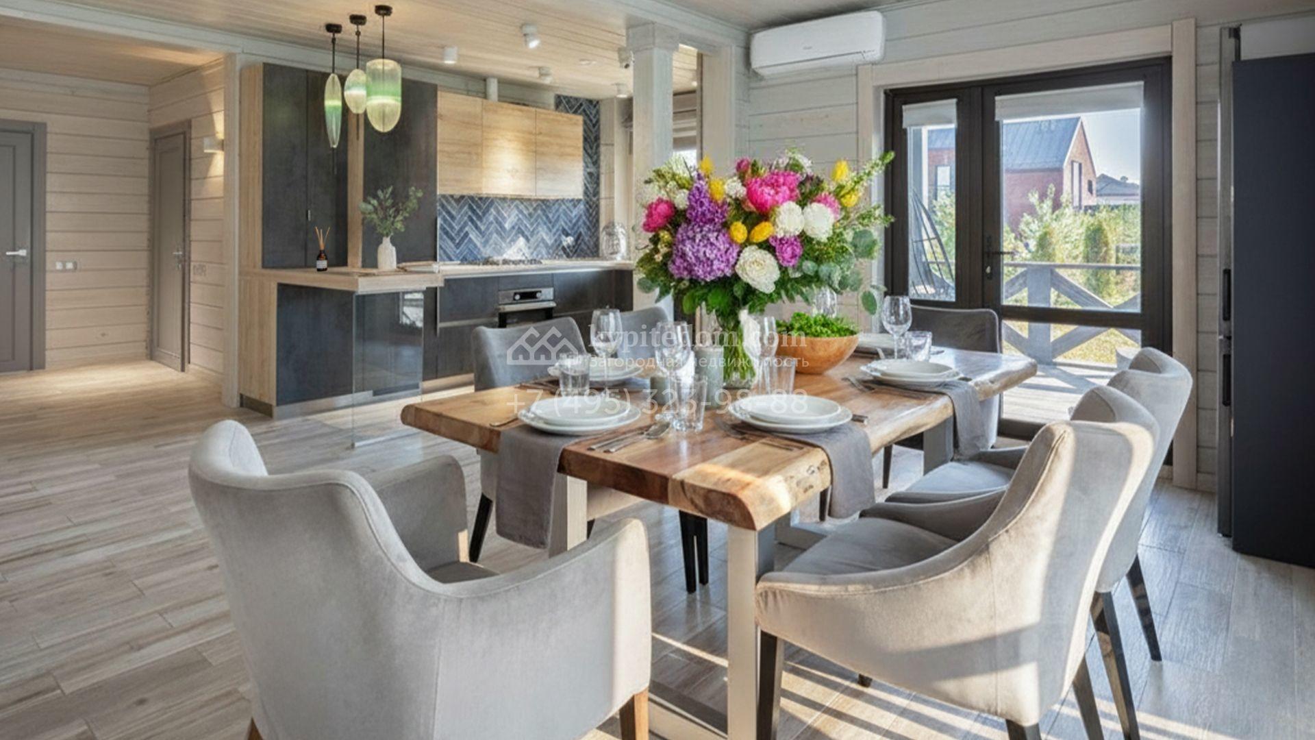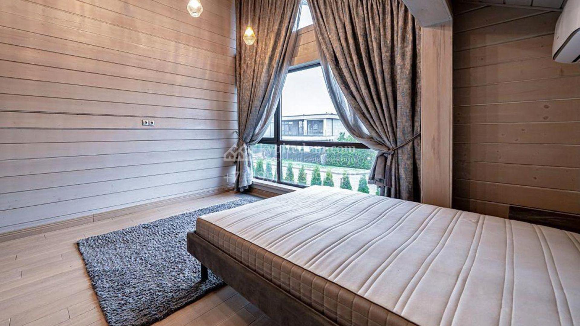 Интерьеры выдержаны в спокойных светлых тонах с натуральными древесными фактурами. Дом полностью готов к жизни — он укомплектован комфортной мебелью, изящными светильниками, встроенной бытовой техникой и современной сантехникой. Благодаря системе кондиционирования здесь всегда царит приятный микроклимат. Планировка включает просторную кухню-гостиную с акцентной плиткой на фартуке, четыре уютные спальни и вместительные гардеробные.