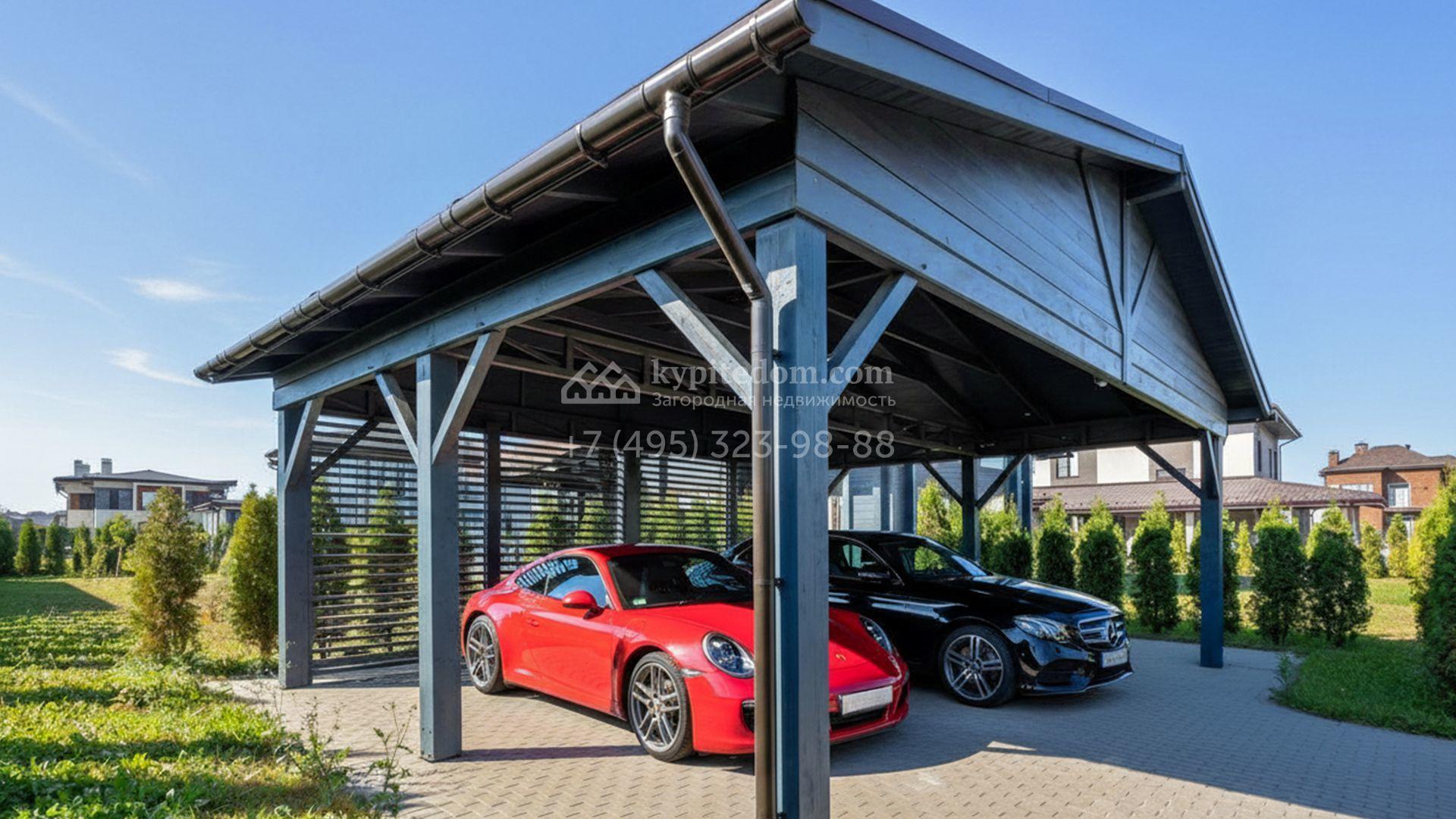 Кроме того, рядом с основным зданием в едином архитектурном стиле построен гостевой дом площадью 114 м². В нём разместили кухню-гостиную, две спальни и баню с печью Harvia. Оставить машины можно под удобным двухместным навесом. Также на участке организована зона барбекю для отдыха на свежем воздухе.