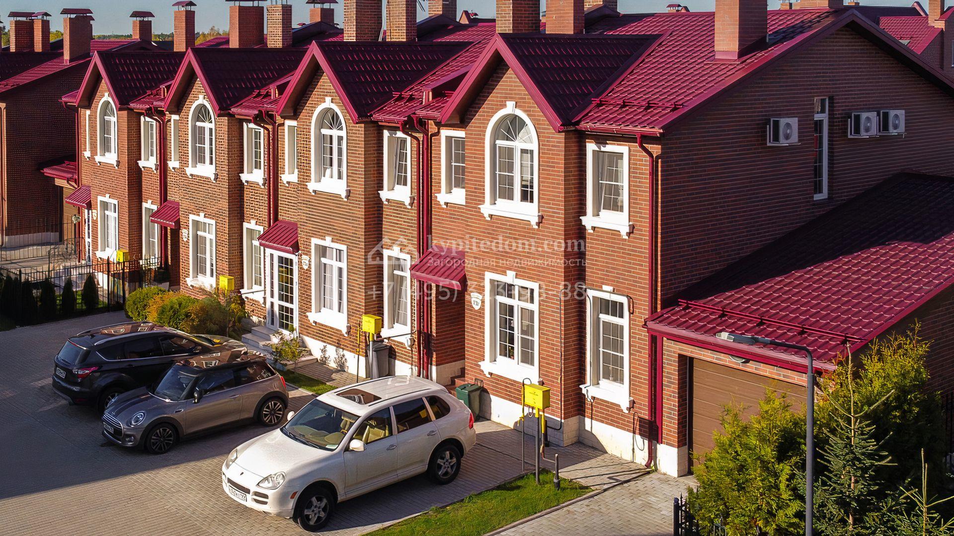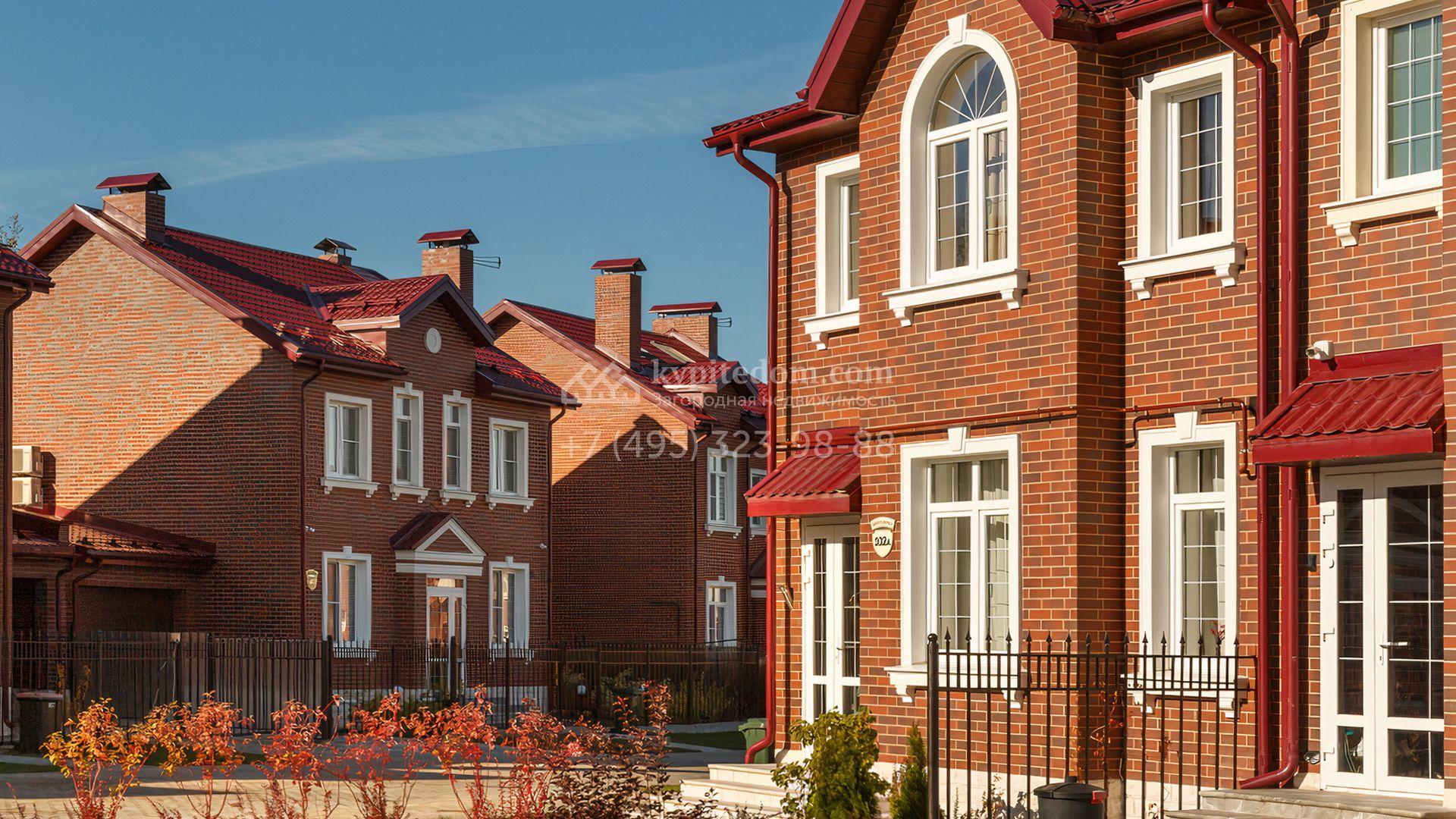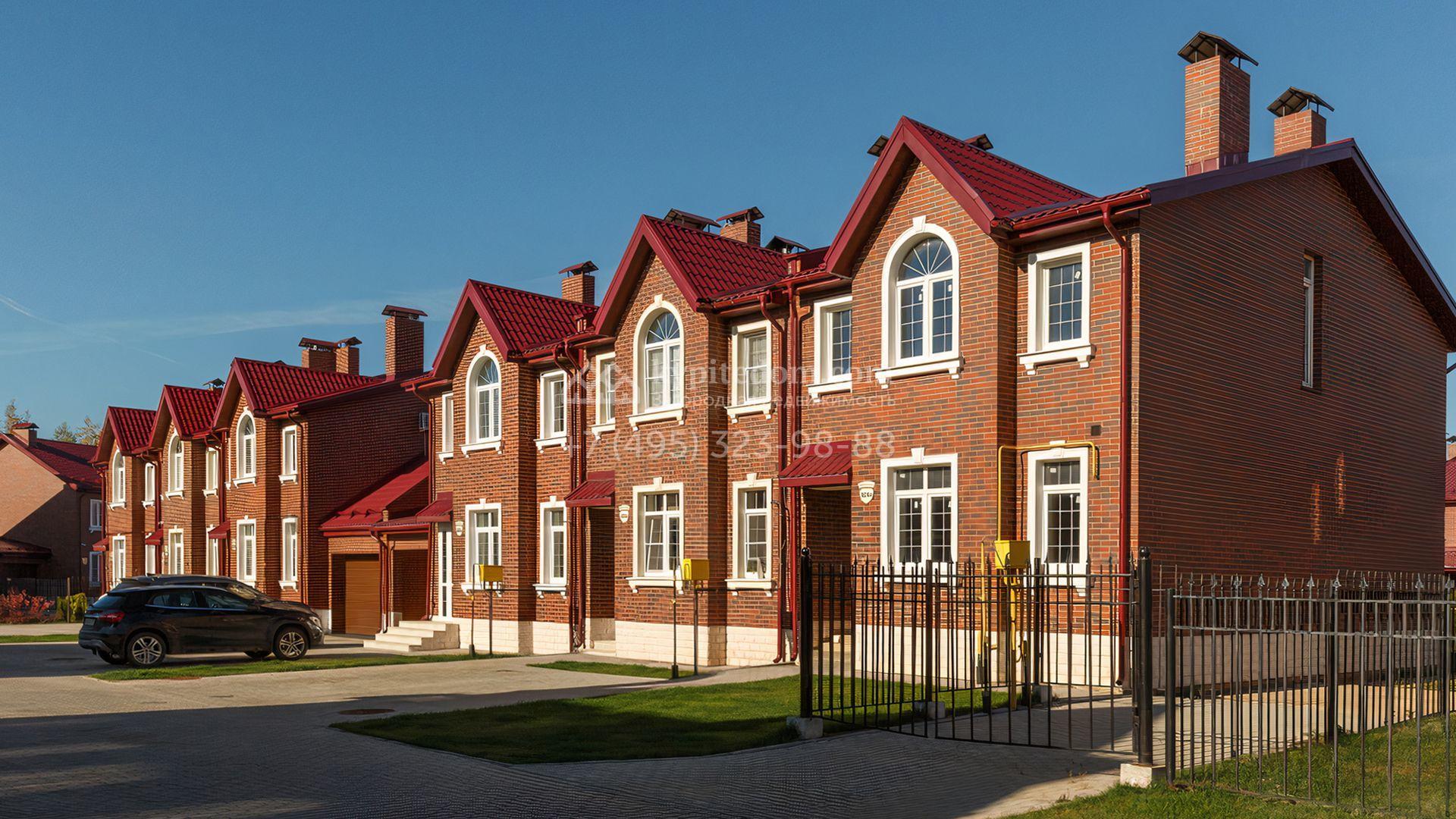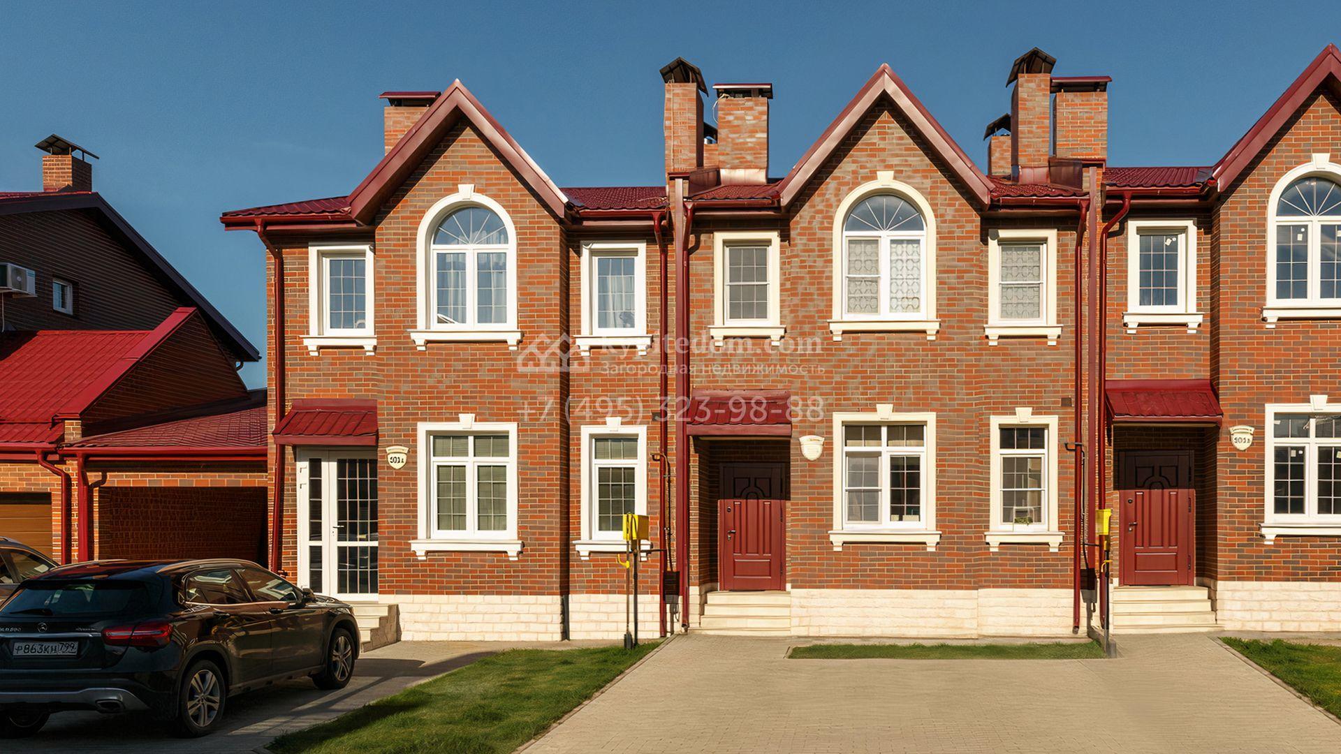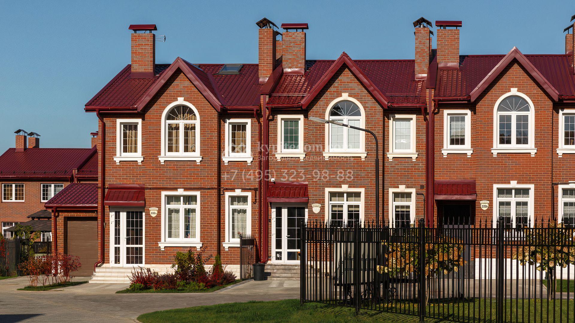 Уютный таунхаус по проекту «Виктория» площадью 115 м² расположен на участке 3,7 соток с видом на лес. Фасад в английком стиле облицован красным клинкерным кирпичом, дополнен окнами с белыми наличниками и декоративными лепными элементами. Коттедж без отделки позволяет реализовать индивидуальный дизайн-проект. Планировка резиденции включает 3 спальни, гостиную с камином и кухню. На участке можно выполнить ландшафтный дизайн и обустроить зону барбекю.