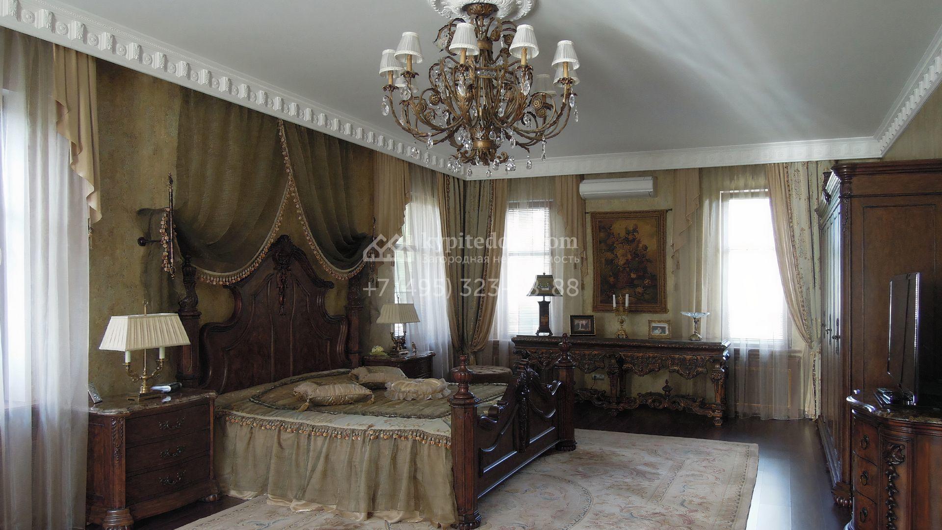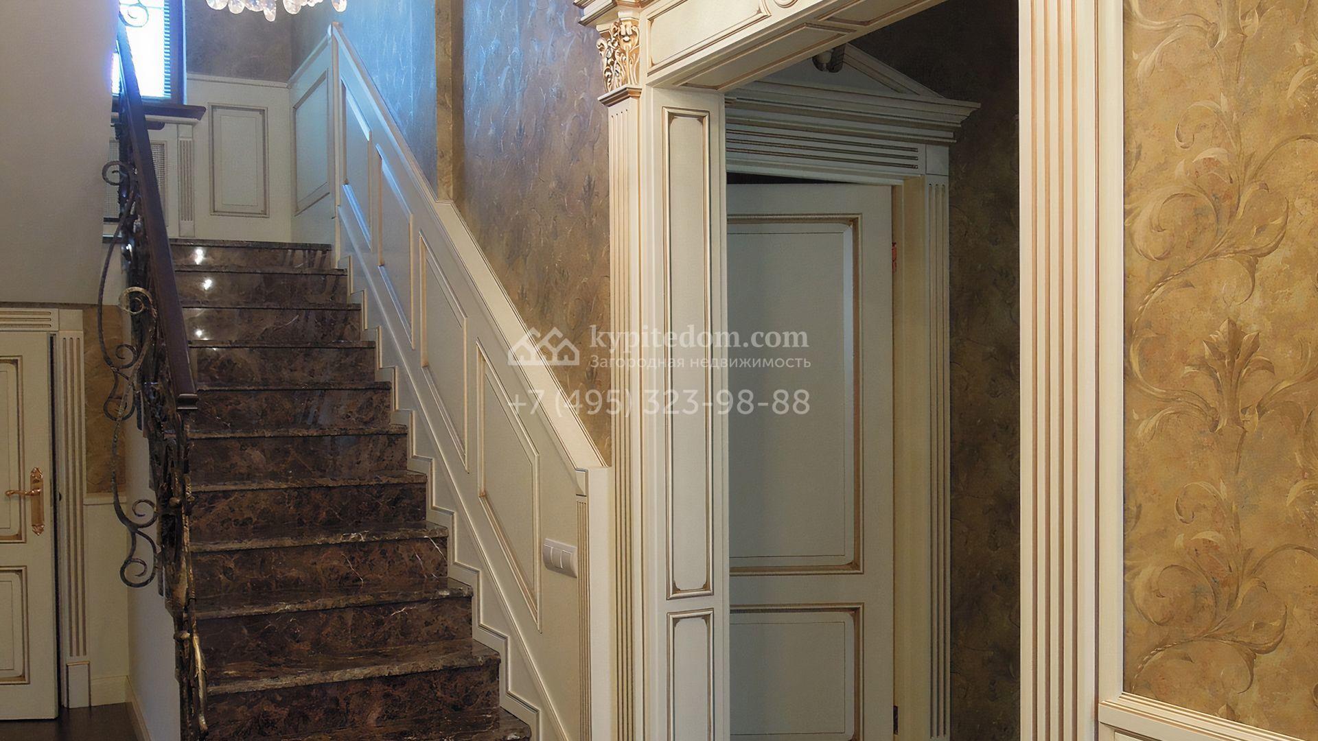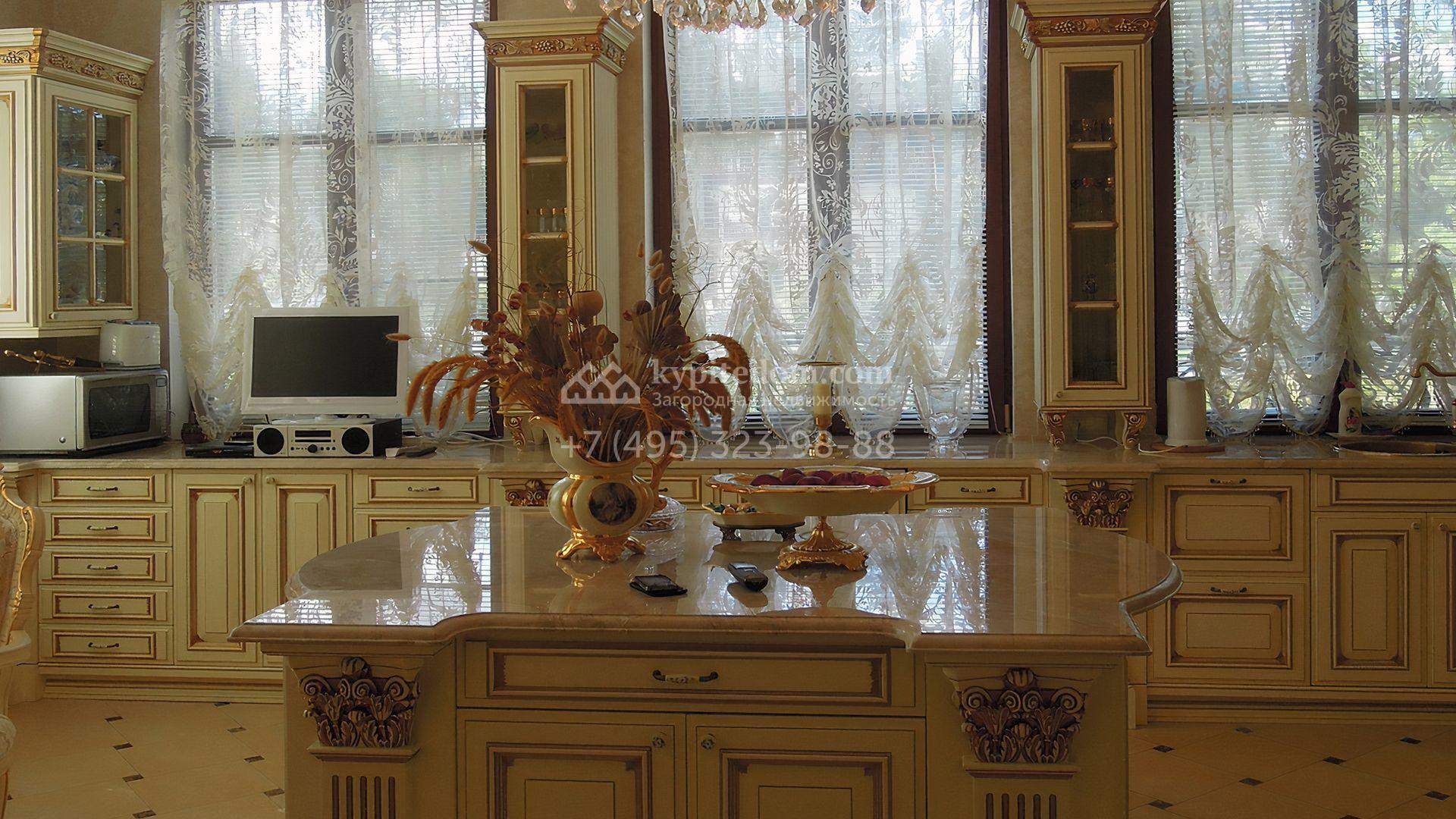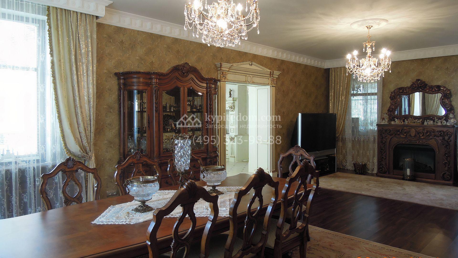 Загородная резиденция во фламандском стиле на высоком цоколе расположен на лесном участке 20 соток. Фасад резиденции 377 м² облицован штукатуркой и камнем, украшен цветными деревянными балками, резьбой, наличниками. Интерьер дома выдержали в классическом стиле в светлых тонах. Мебель выполнена из массива, установлена кухня и сантехника. В доме разместили 3 спальни, гостиную с камином, бильярдную и спортивный зал. На участке выполнили ландшафтный дизайн, в тени сосен посадили газон и кустарники, построили гараж для 2 машин с квартирой для персонала и беседку-барбекю.