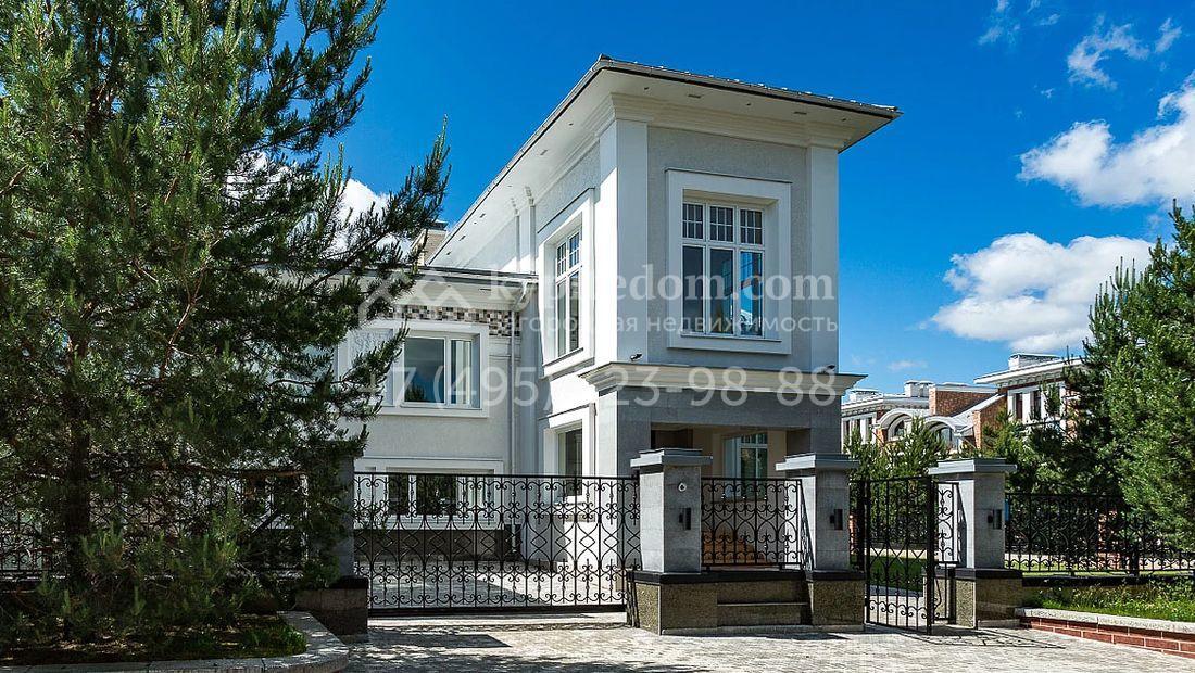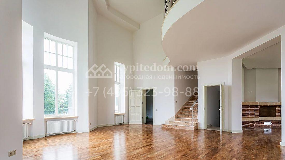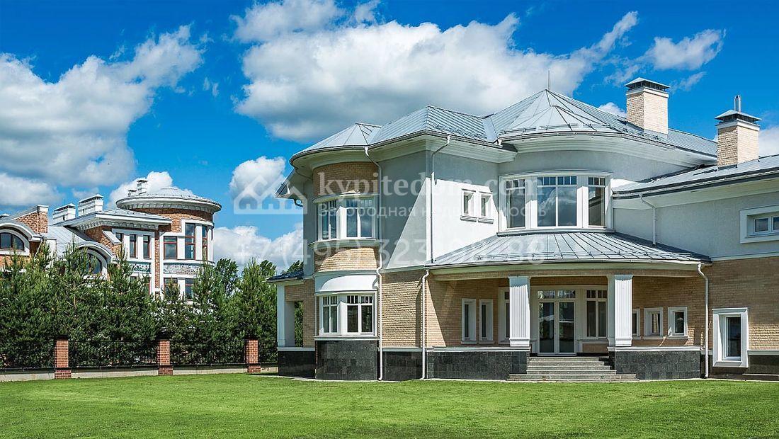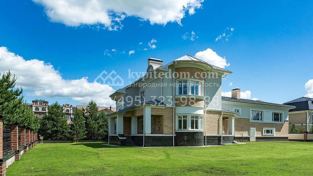 Большая загородная резиденция в неоклассическом стиле площадью 1008 м² с готовой отделкой. На первом этаже спланирован двухсветная гостиная с камином и отдельный блок для персонала. На втором этаже 5 спален с гардеробными и ванными комнатами. Мансарду можно оборудовать по своему вкусу. Участок 35 соток озеленен, постелен газон и проложены дорожки.